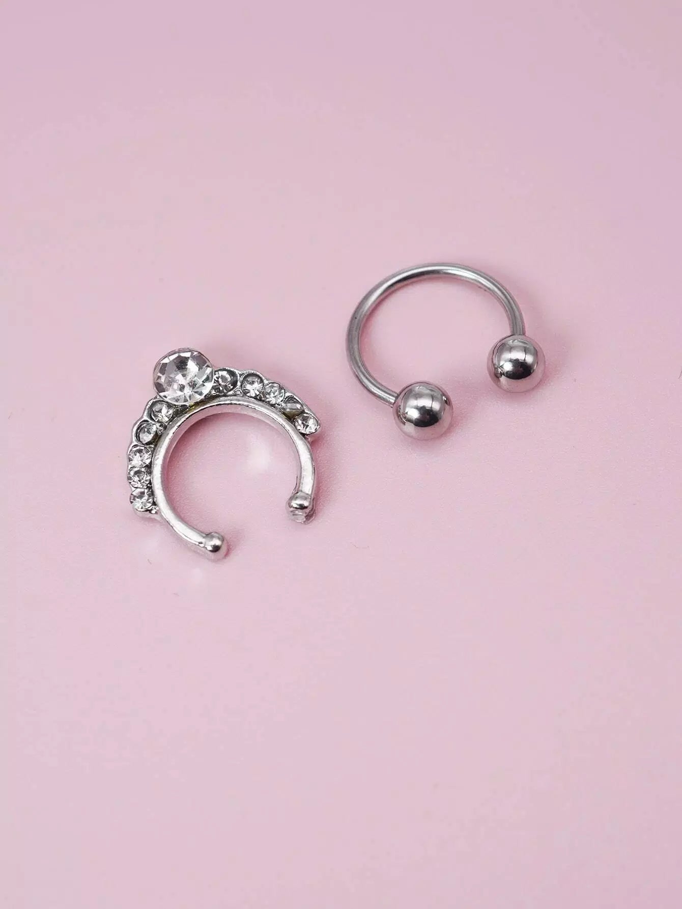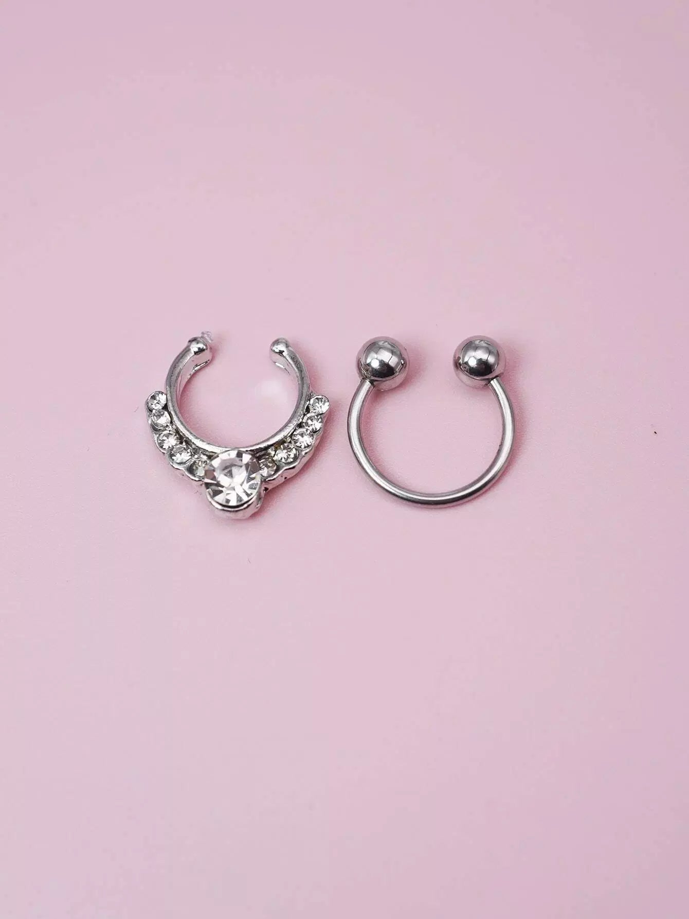 2 قطعة خاتم أنف مزين بحجر الراين 2 قطعة