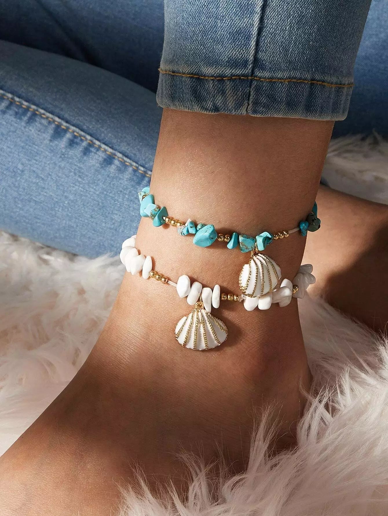 خلخال من الخرز على شكل صدفة مكون من قطعتين