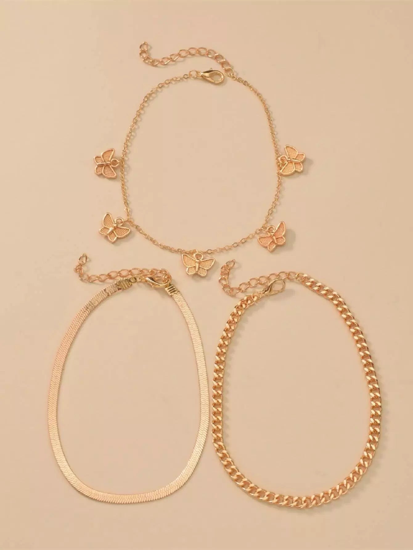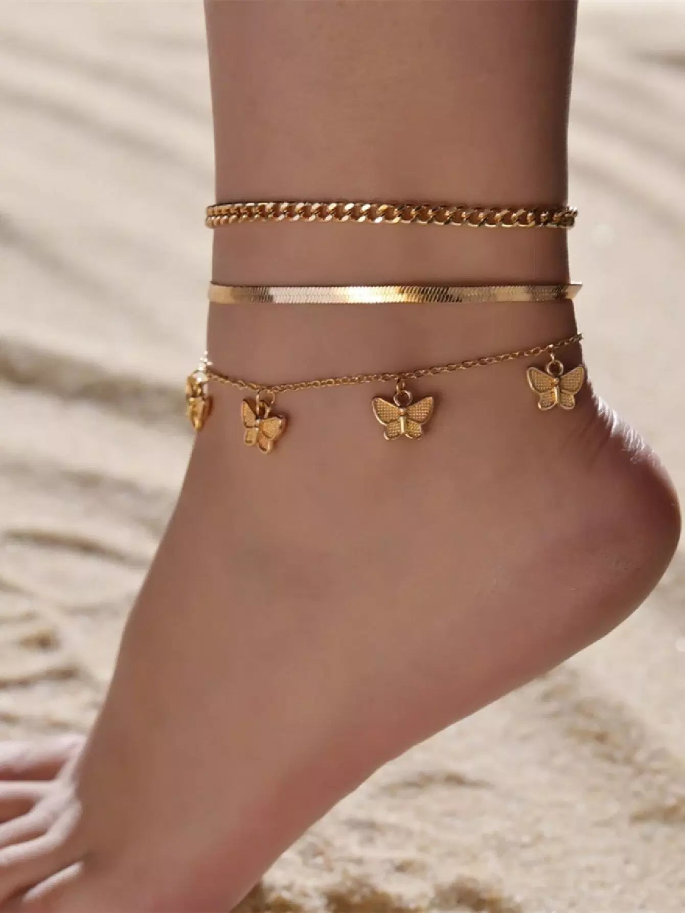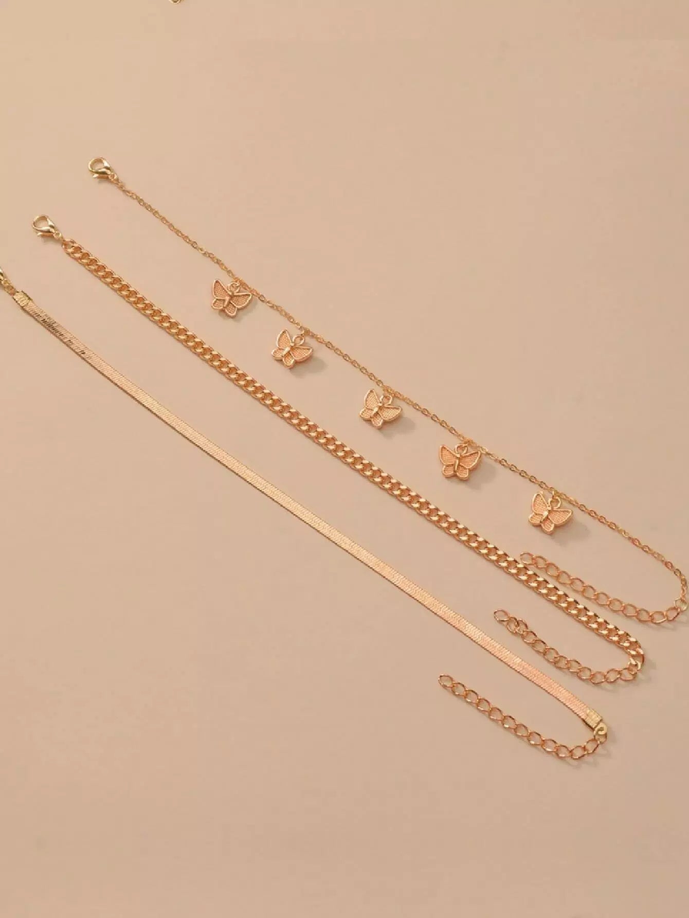 سوار خلخال بحلية فراشة 3 قطع