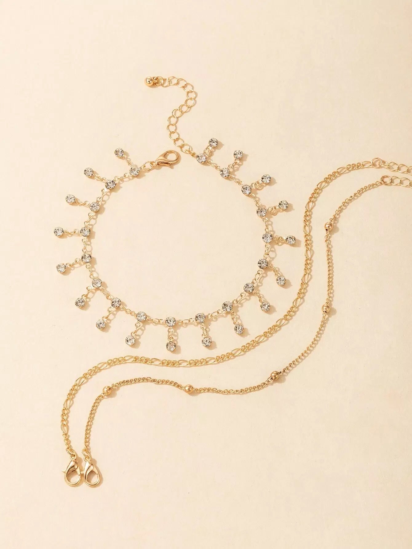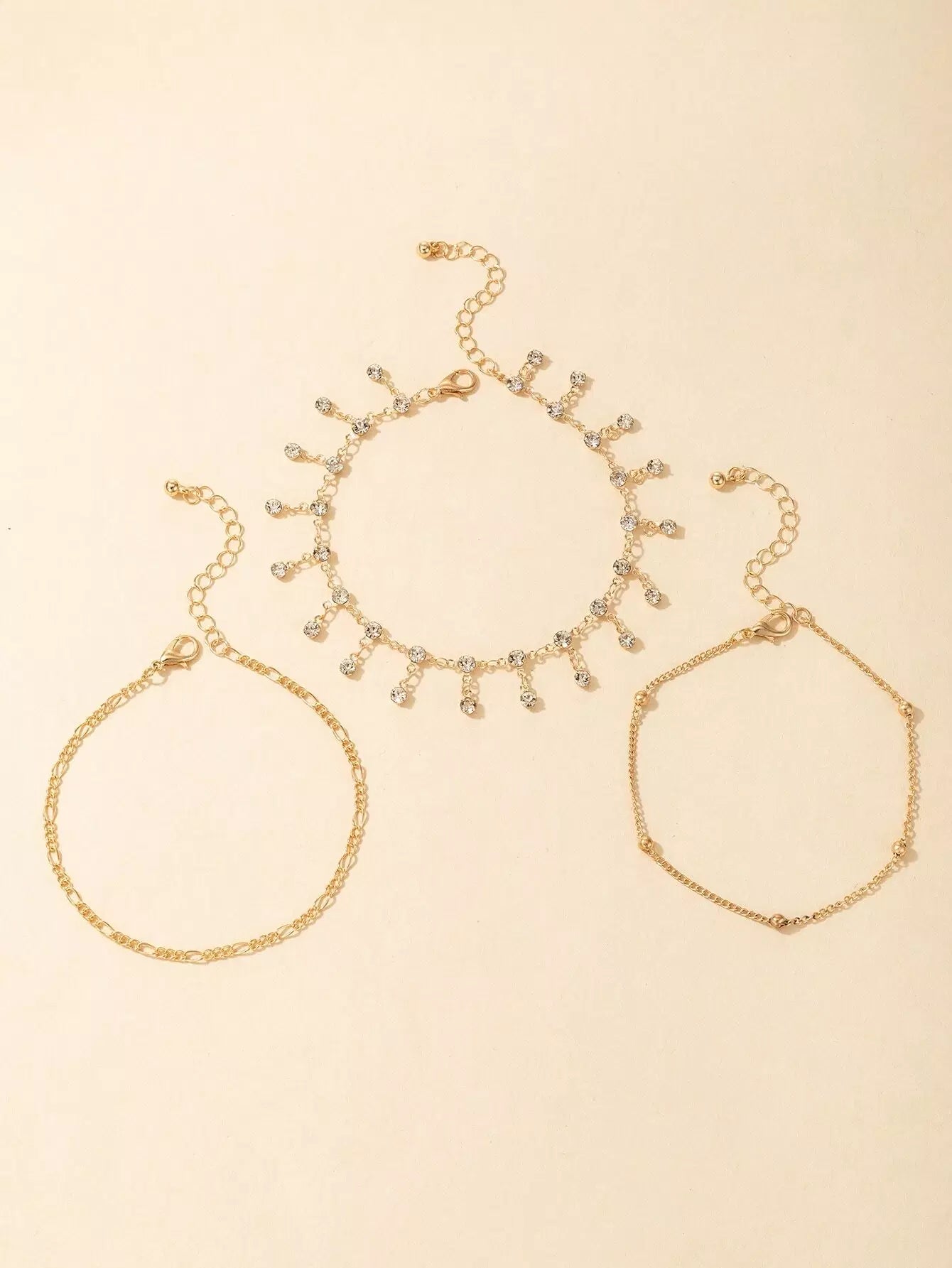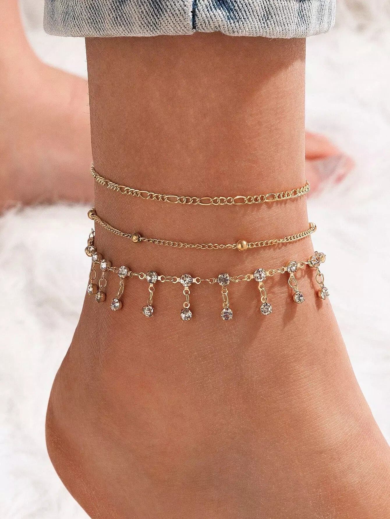 للنساء-3 قطع خلخال مزخرف بحجر الراين