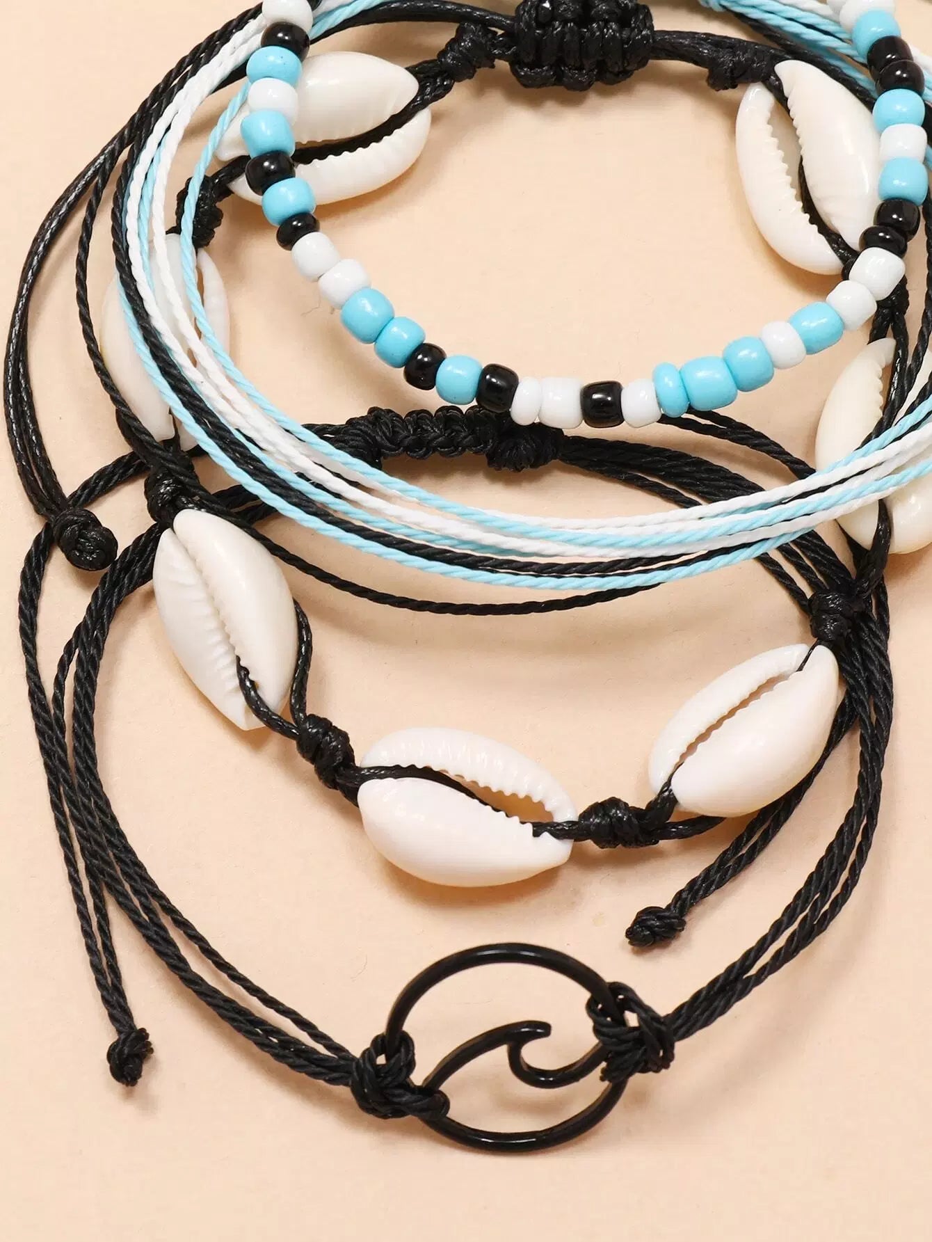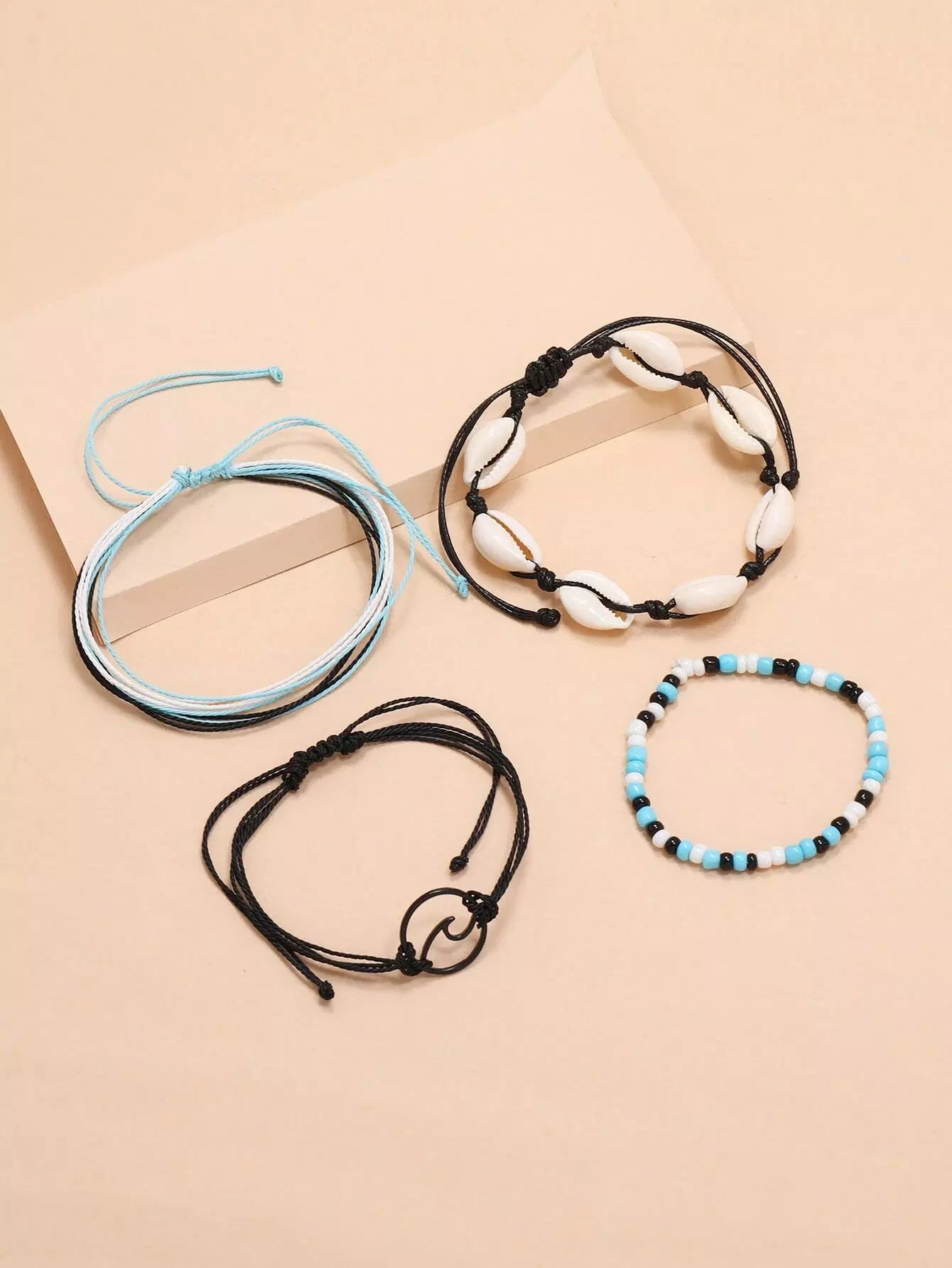 4 قطع من خلخال مزين بالخرز على شكل صدفة