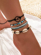 النساء - 4 قطع خلخال مطرز بالصدفة