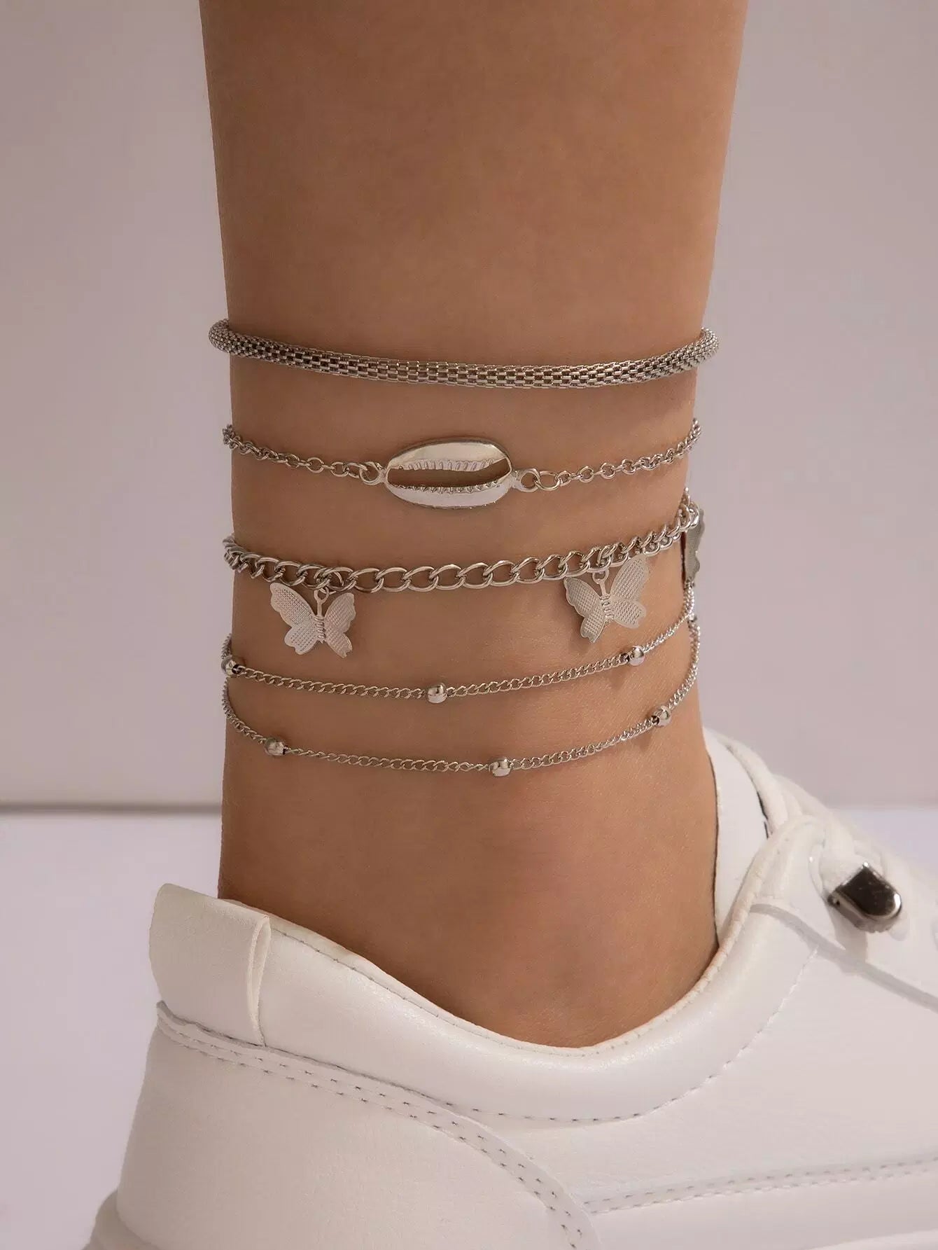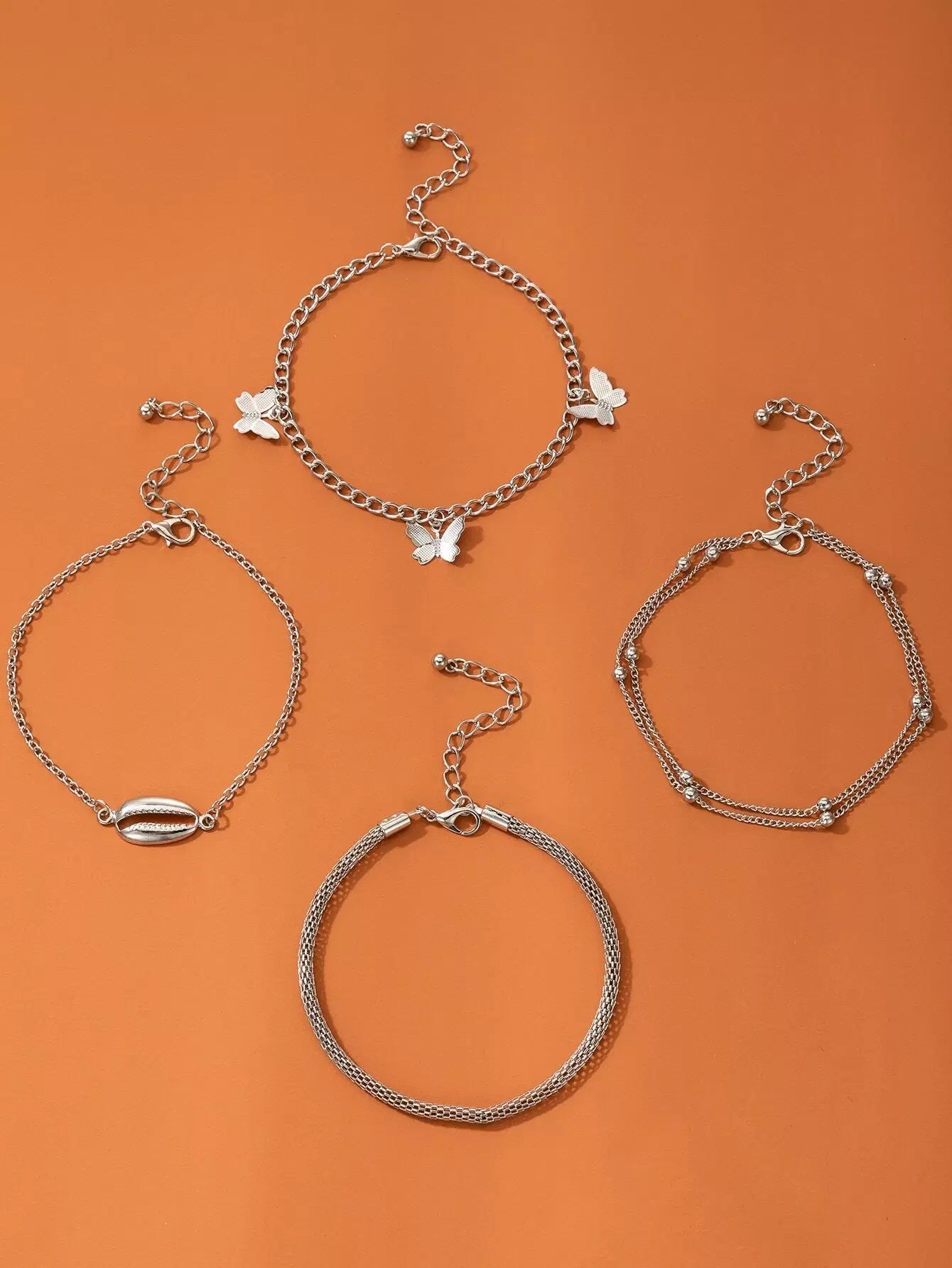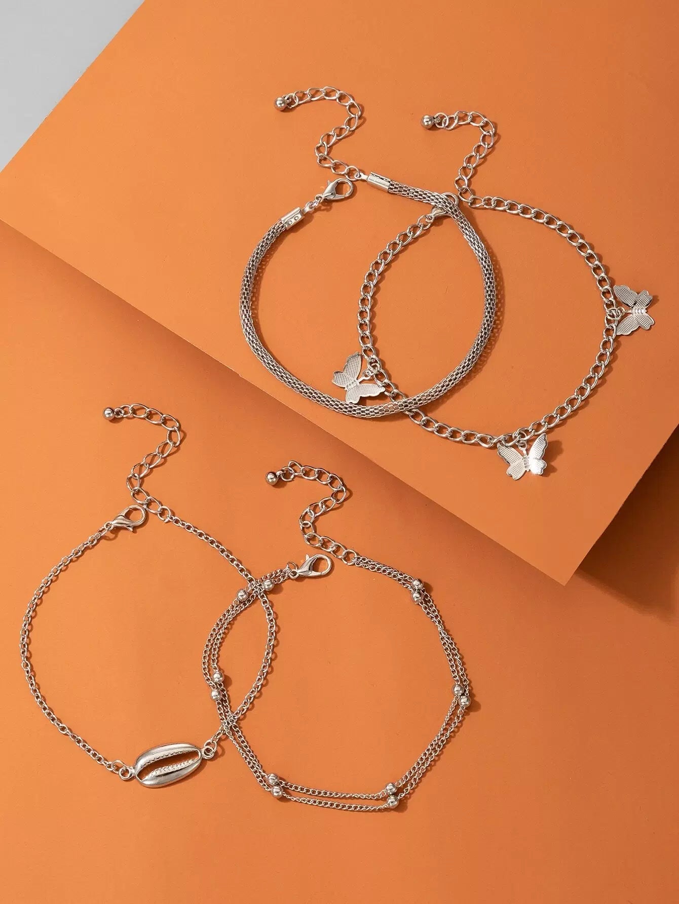 سوار خلخال بسلسلة على شكل نجمة وفراشة 4 قطع