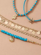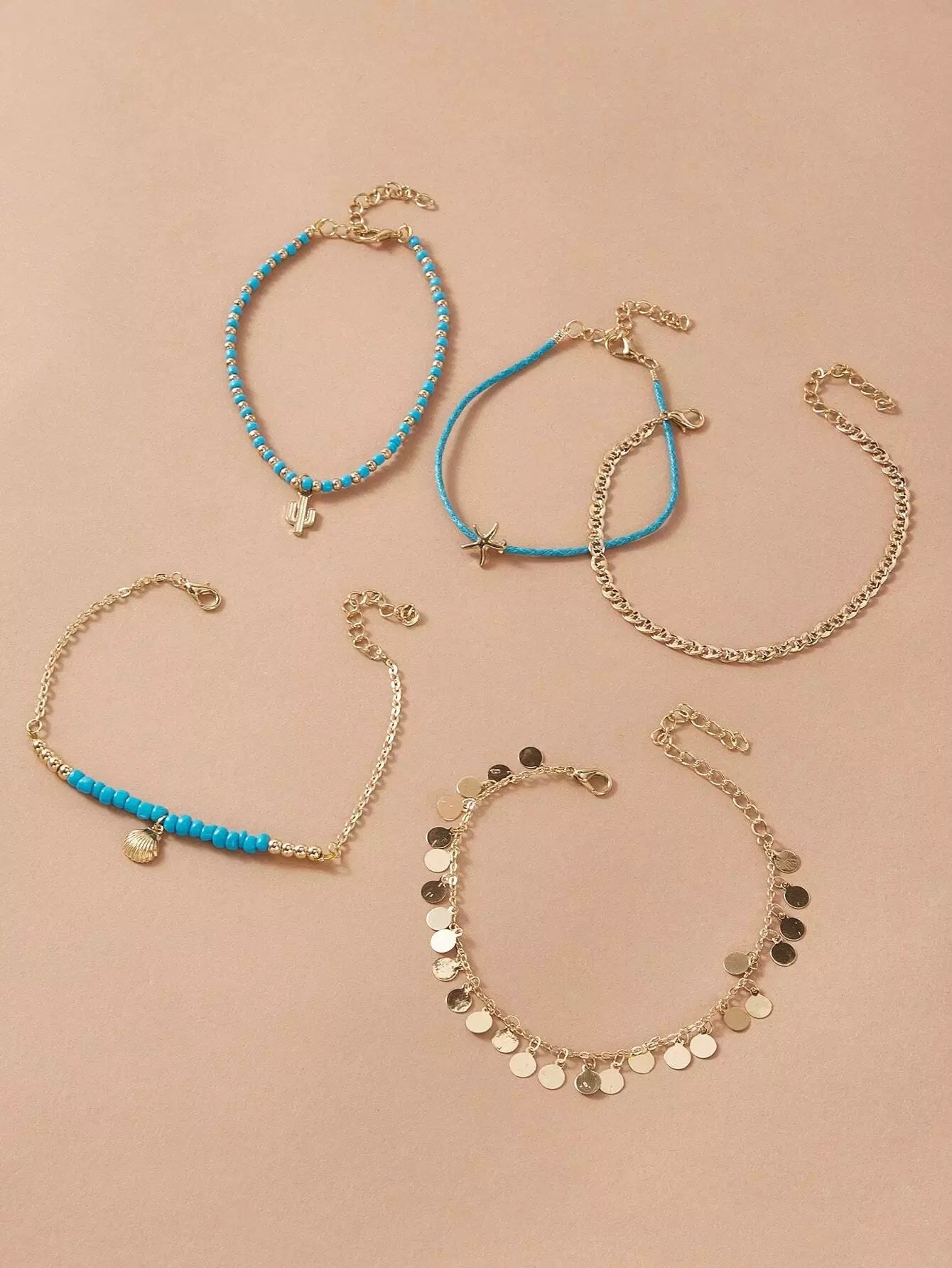 للنساء - 5 قطع خلخال مزين بالصبار ونجم البحر