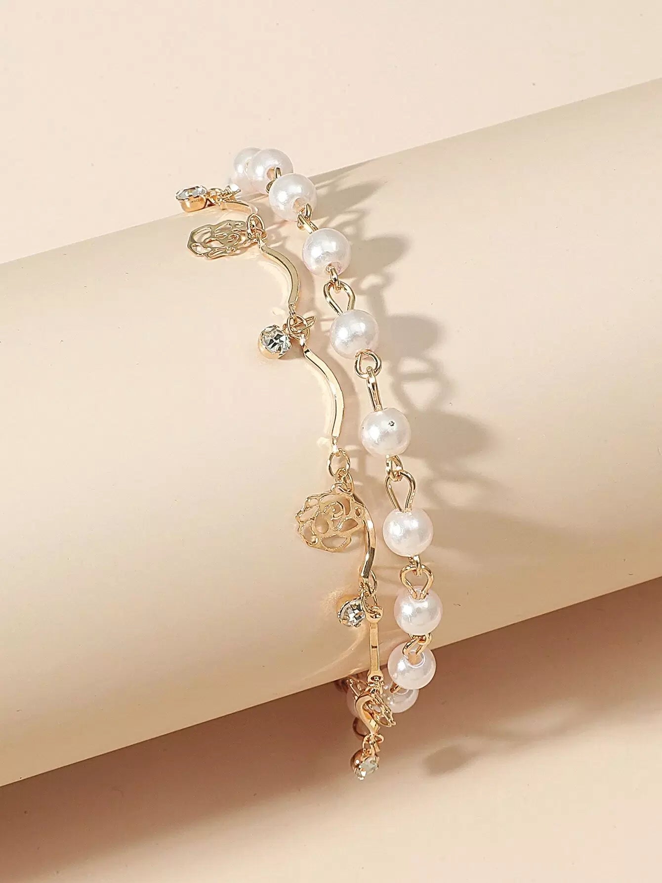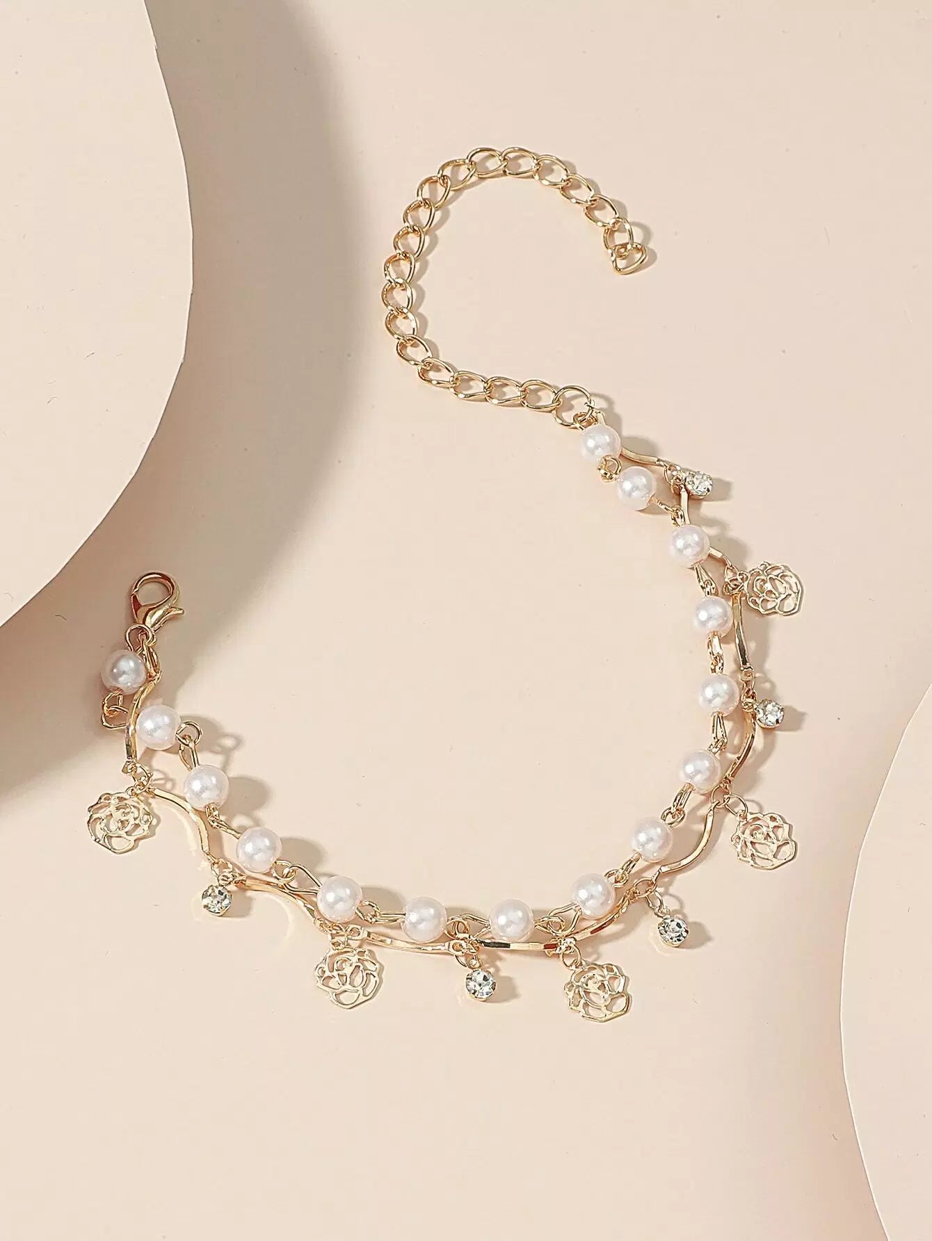 خلخال متعدد الطبقات مزين باللؤلؤ الصناعي