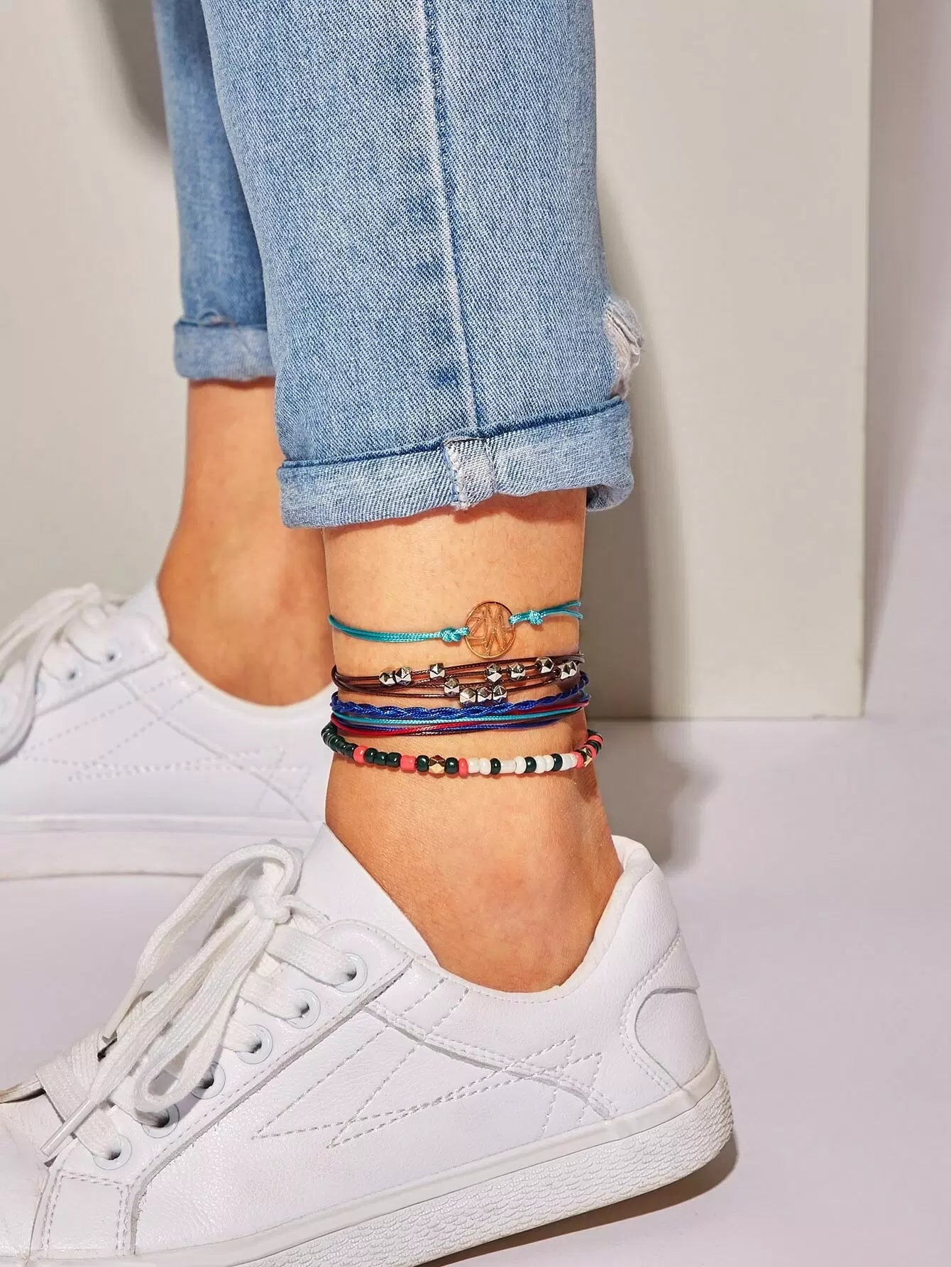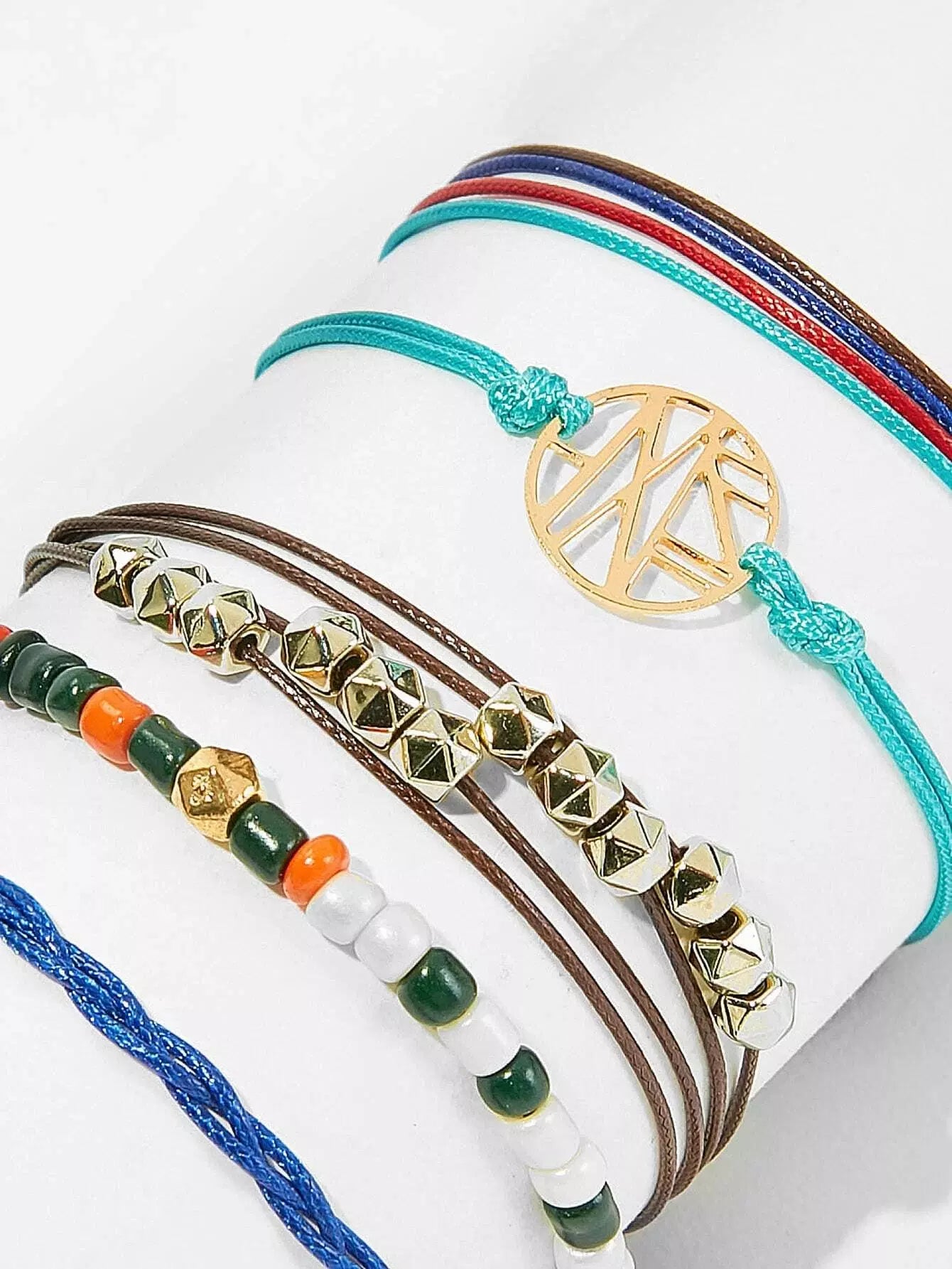 خيوط متعددة الطبقات وسوار من الخرز 5 قطع