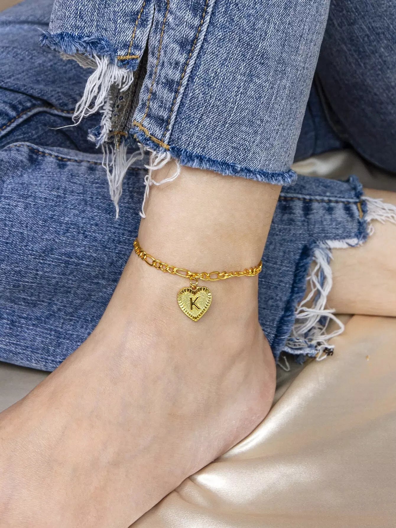 للنساء - خلخال بتصميم قلب وحلية على شكل حرف