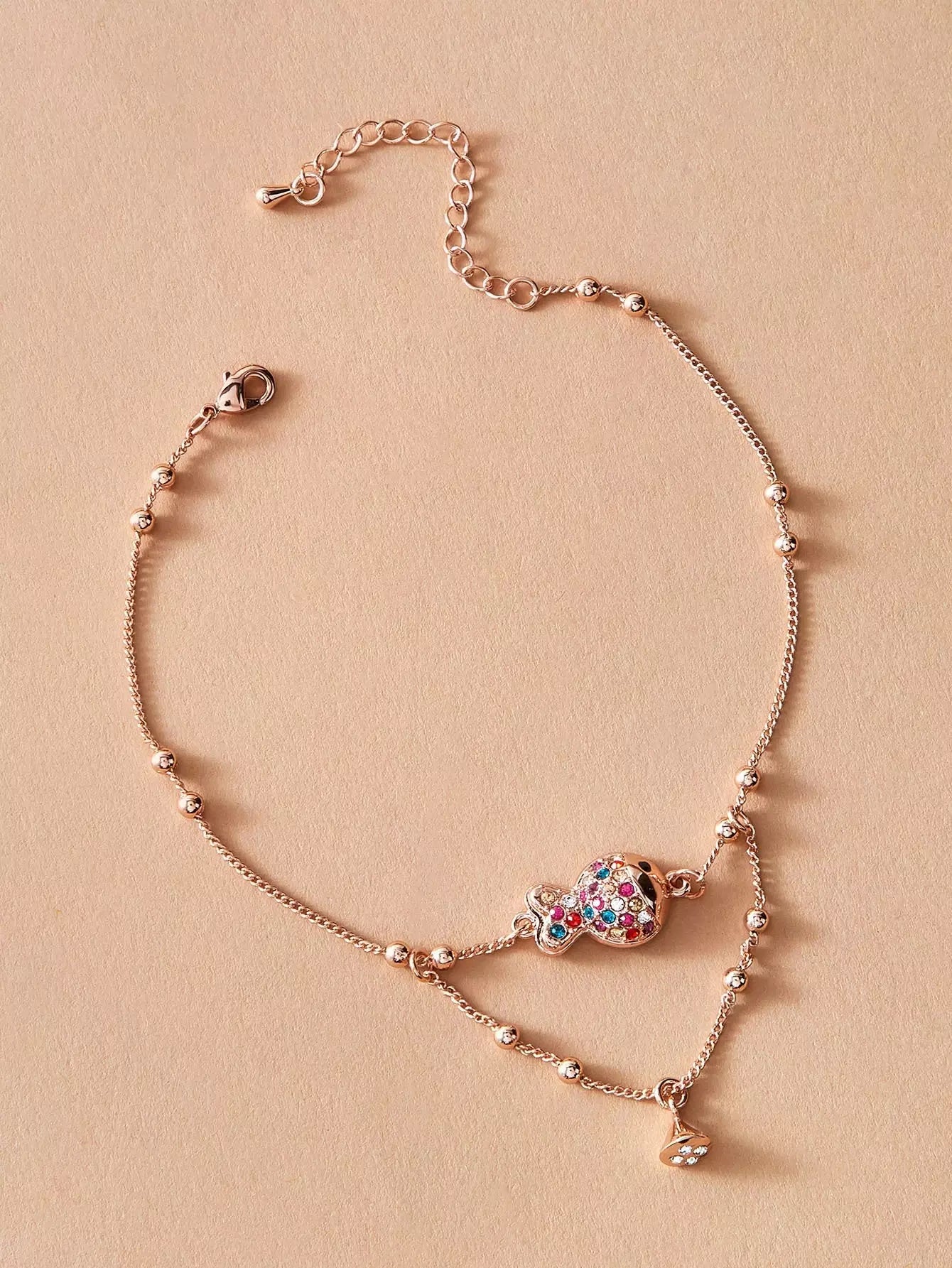 خلخال سلسلة زينة السمك المزين بحجر الراين