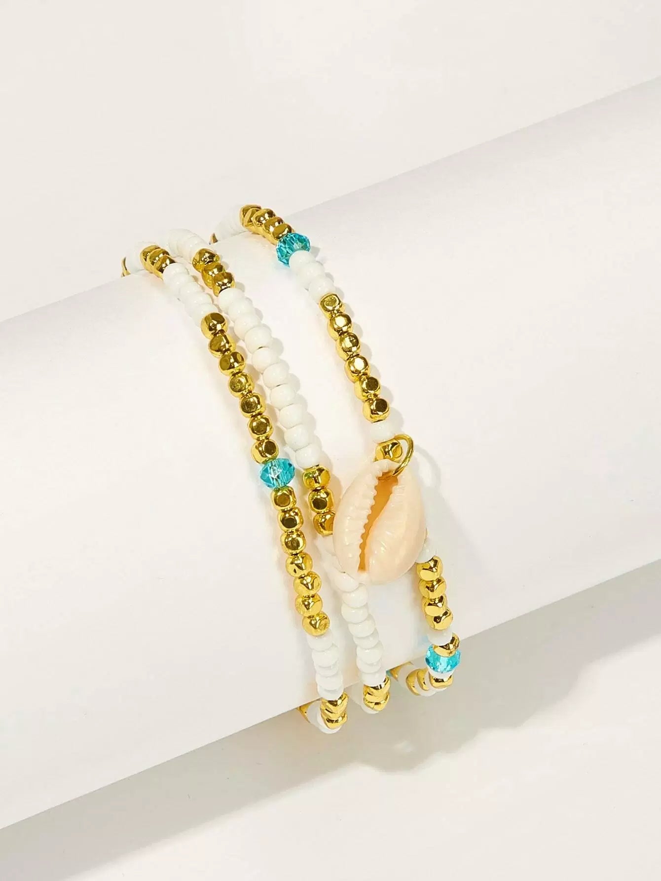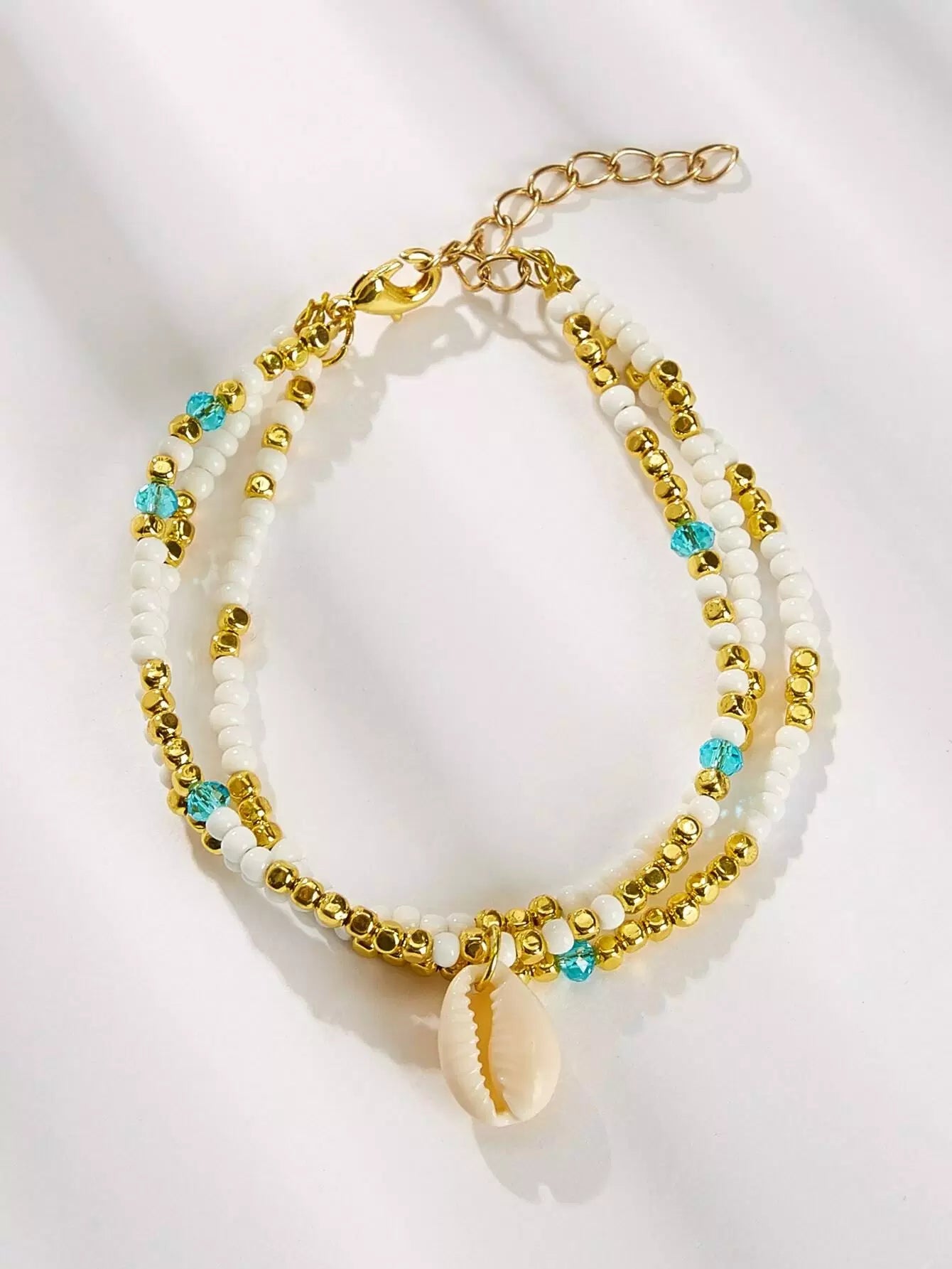طقم خلخال من الخرز على شكل صدفة مكون من قطعة واحدة
