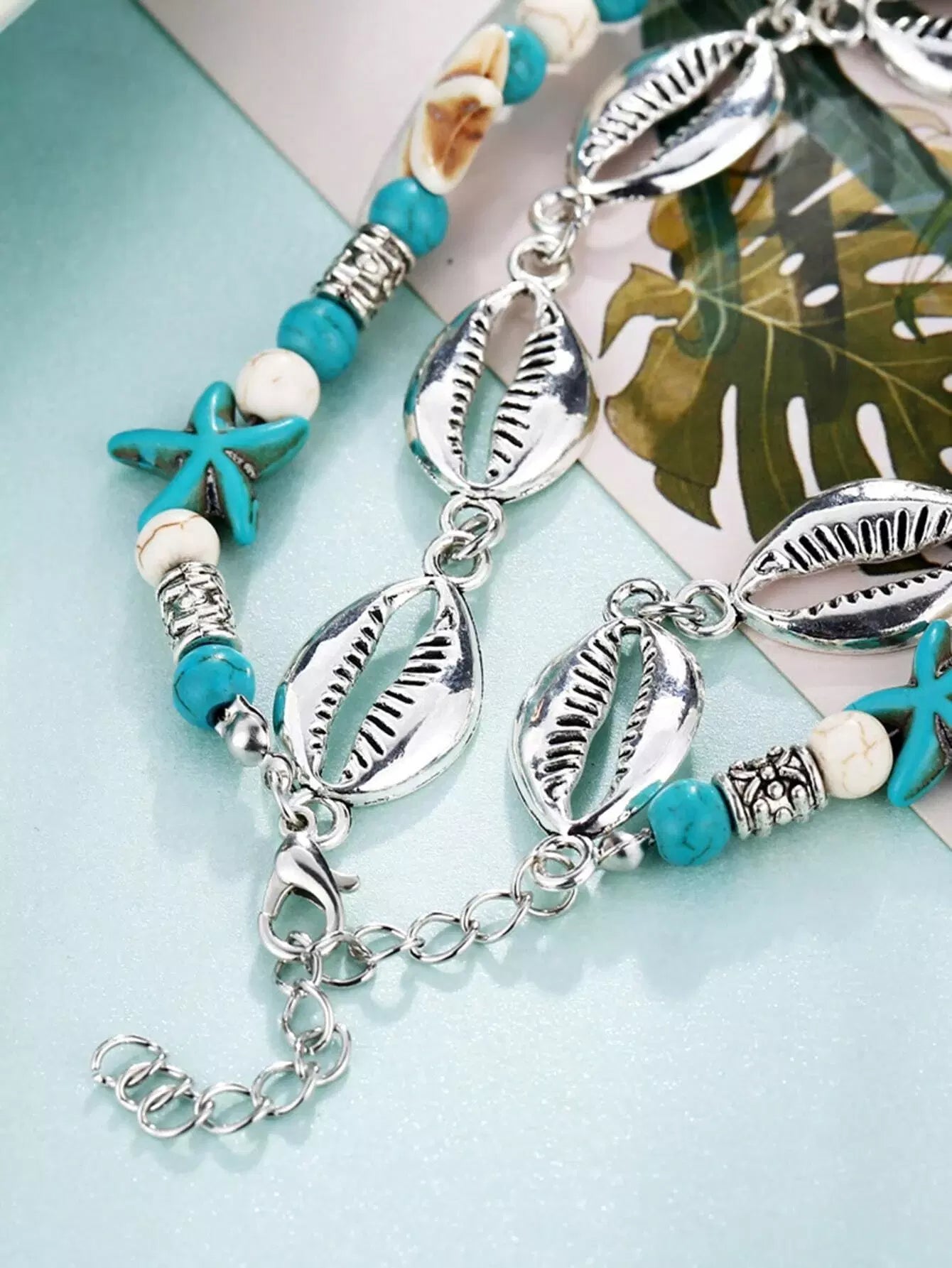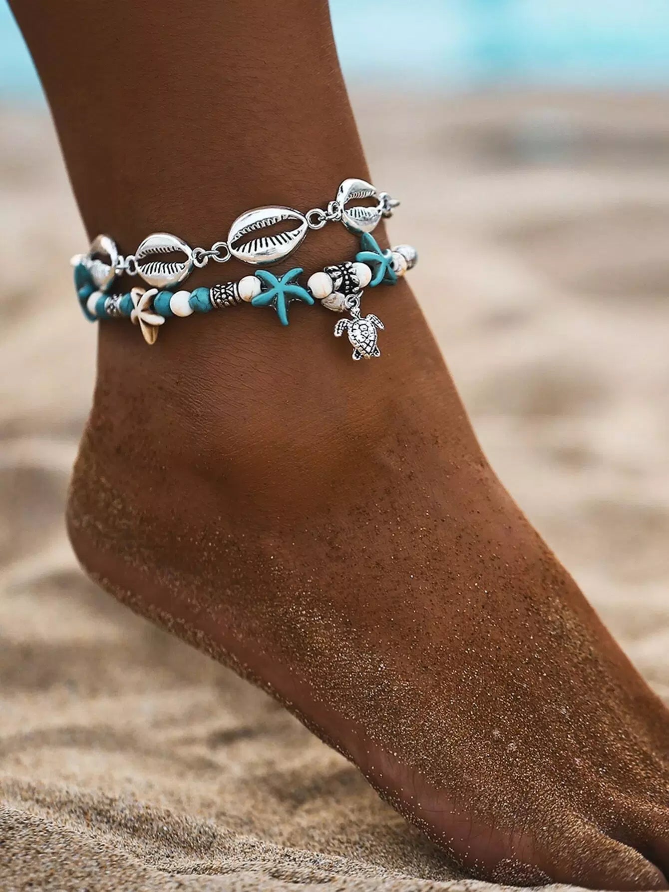 للنساء - خلخال مزخرف بالصدفة ونجم البحر قطعتين