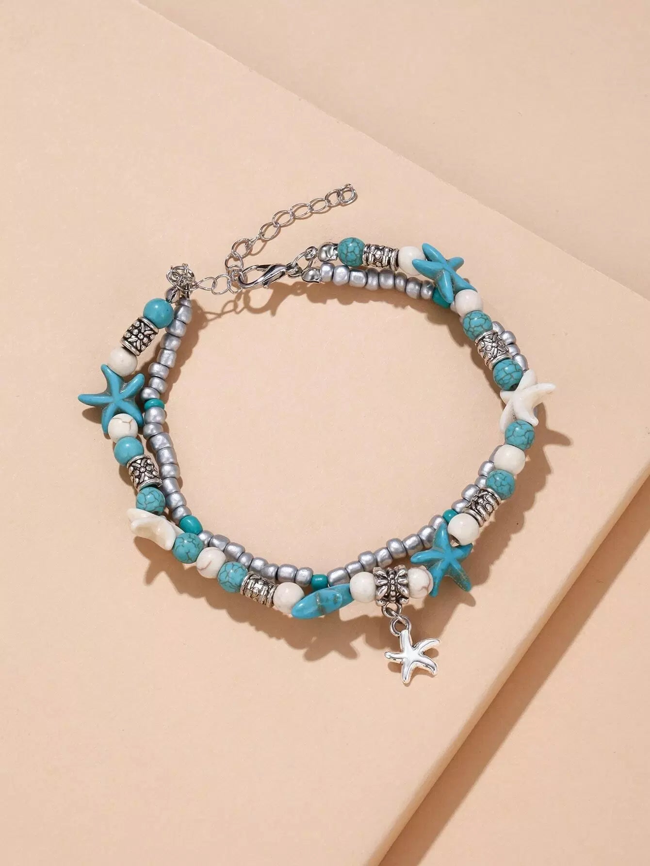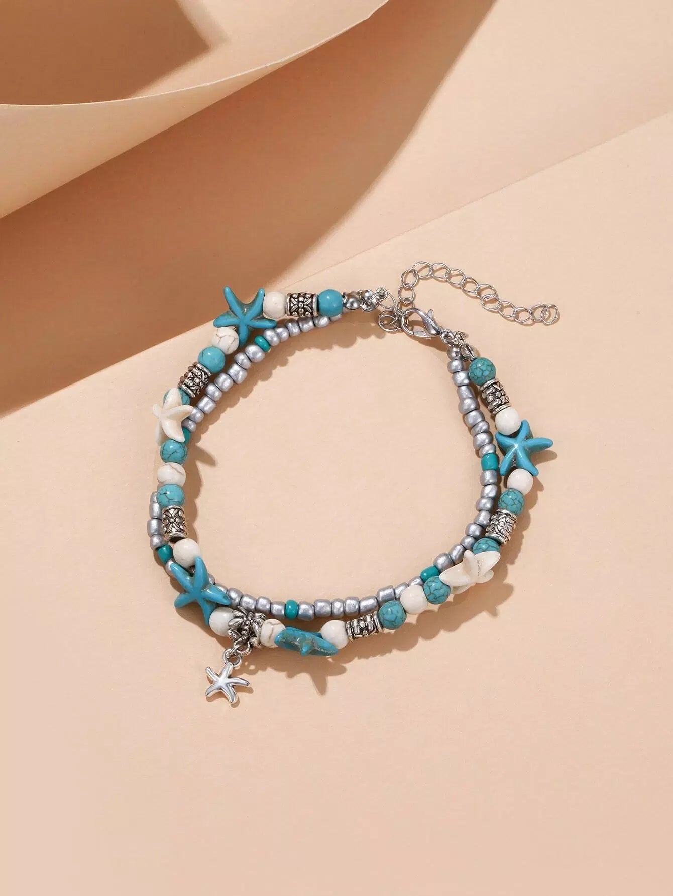 سوار كاحل متعدد الطبقات مزين بنجمة البحر