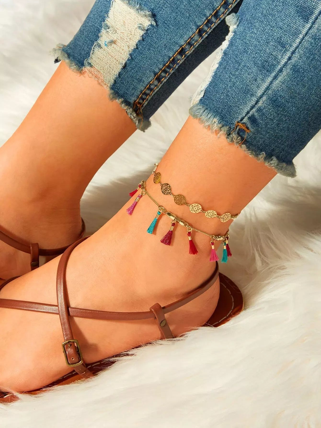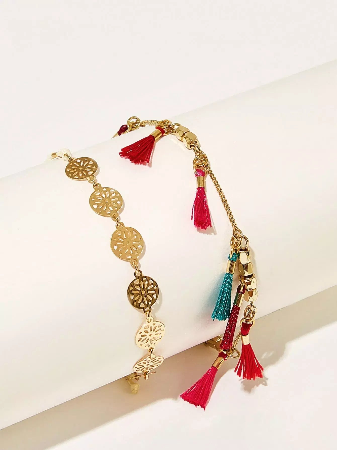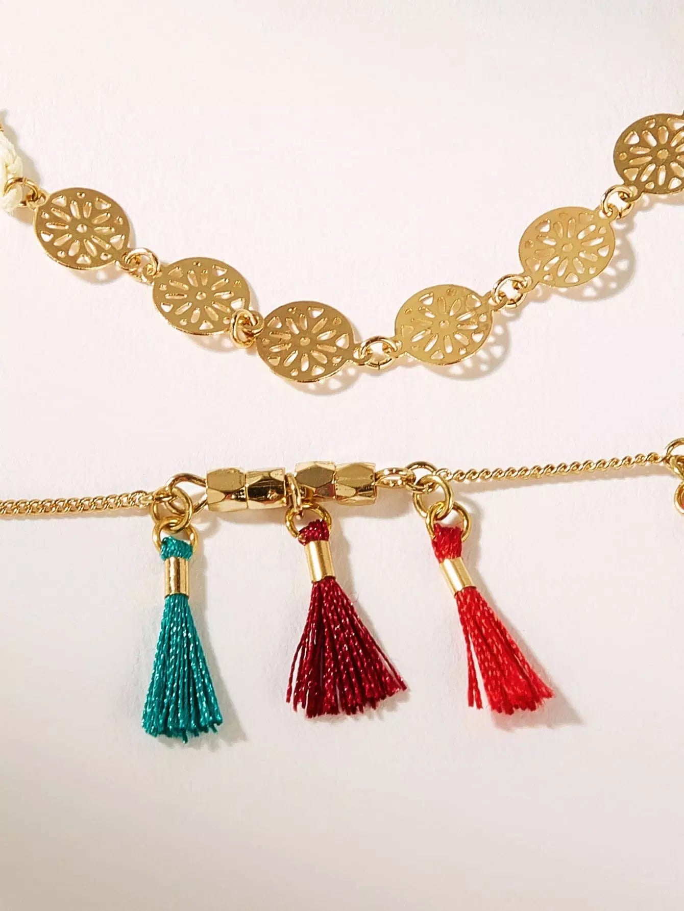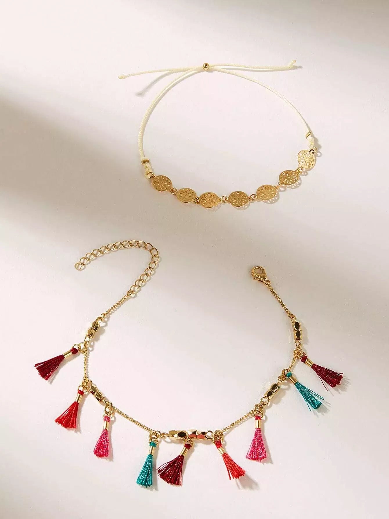 خلخال مزين بالشراشيب والأقراص المجوفة قطعتان