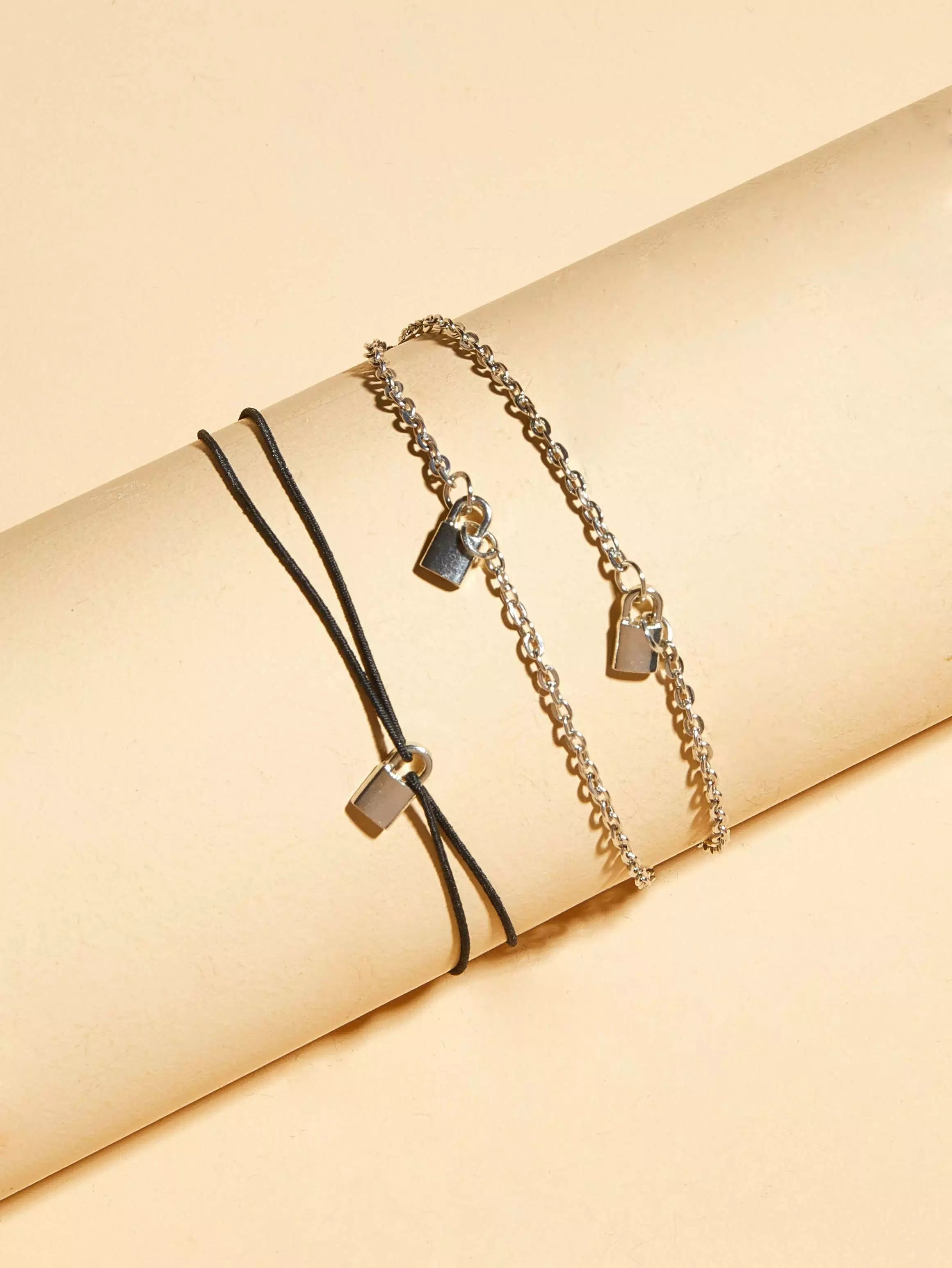 للنساء - قطعتان من سلسلة القفل وسوار سلسلة