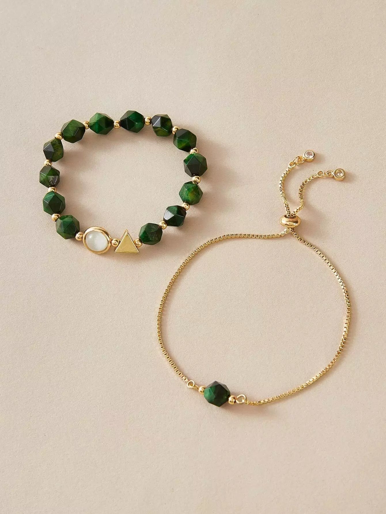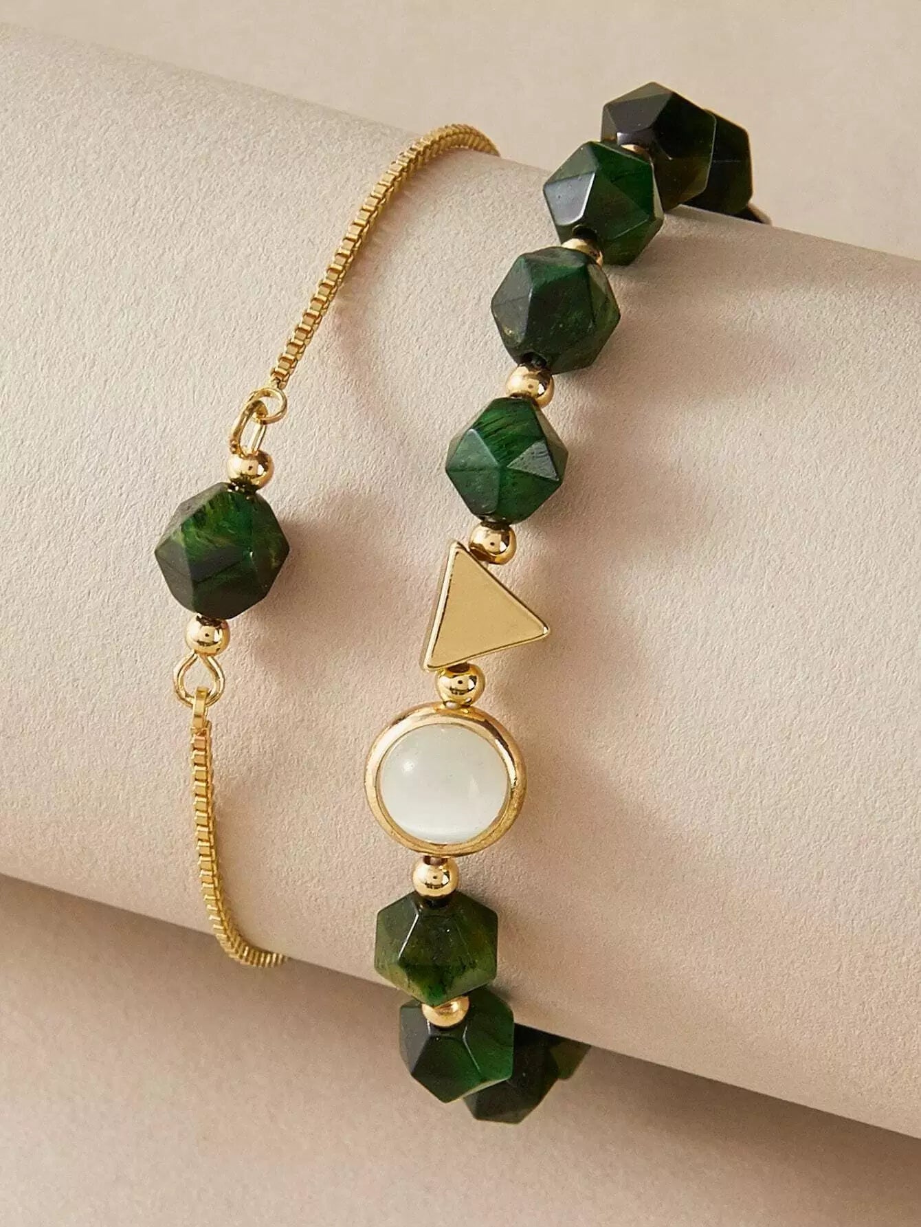 للنساء - قطعتان من سوار الحجر الخام والديكور المثلث