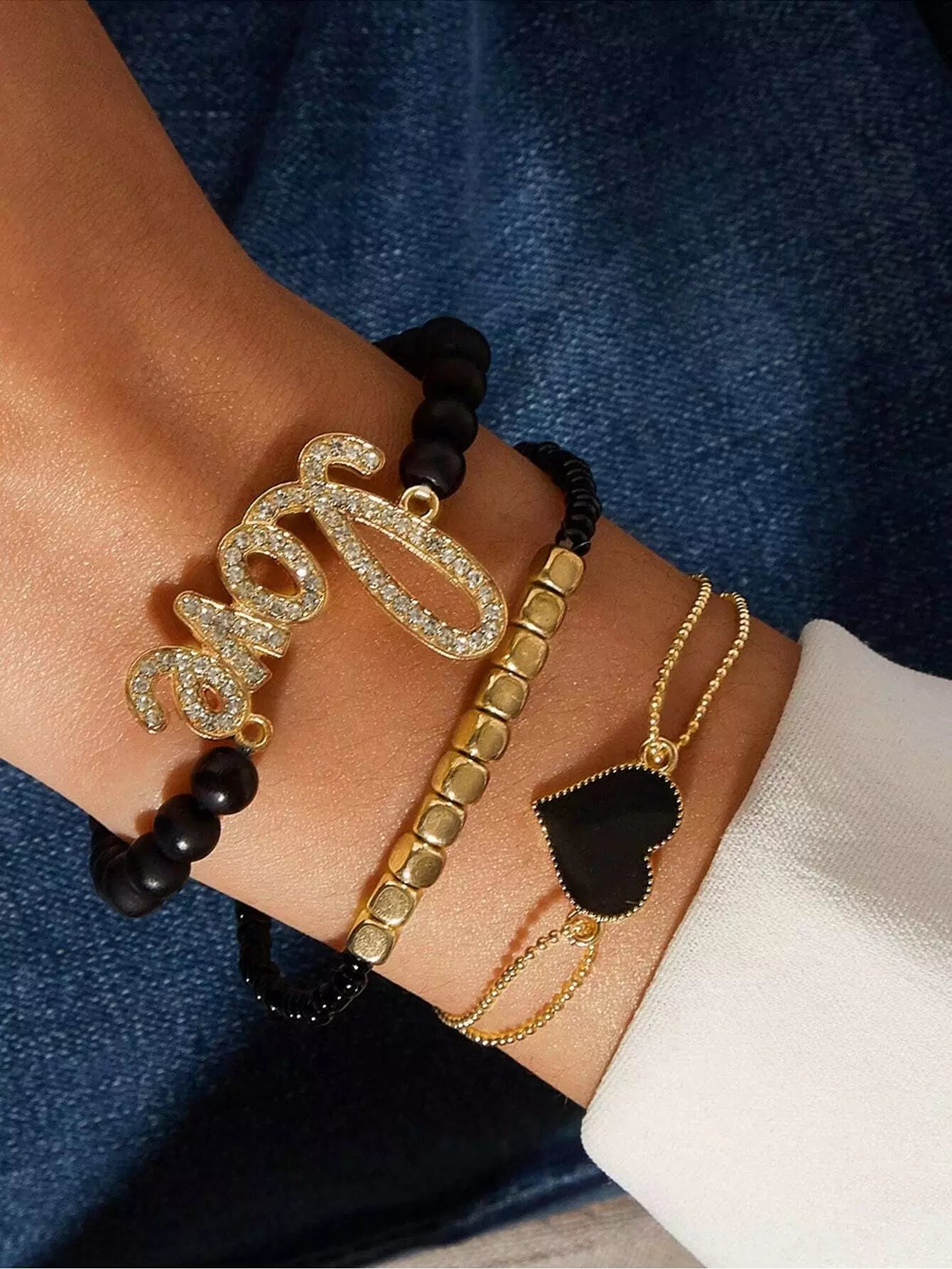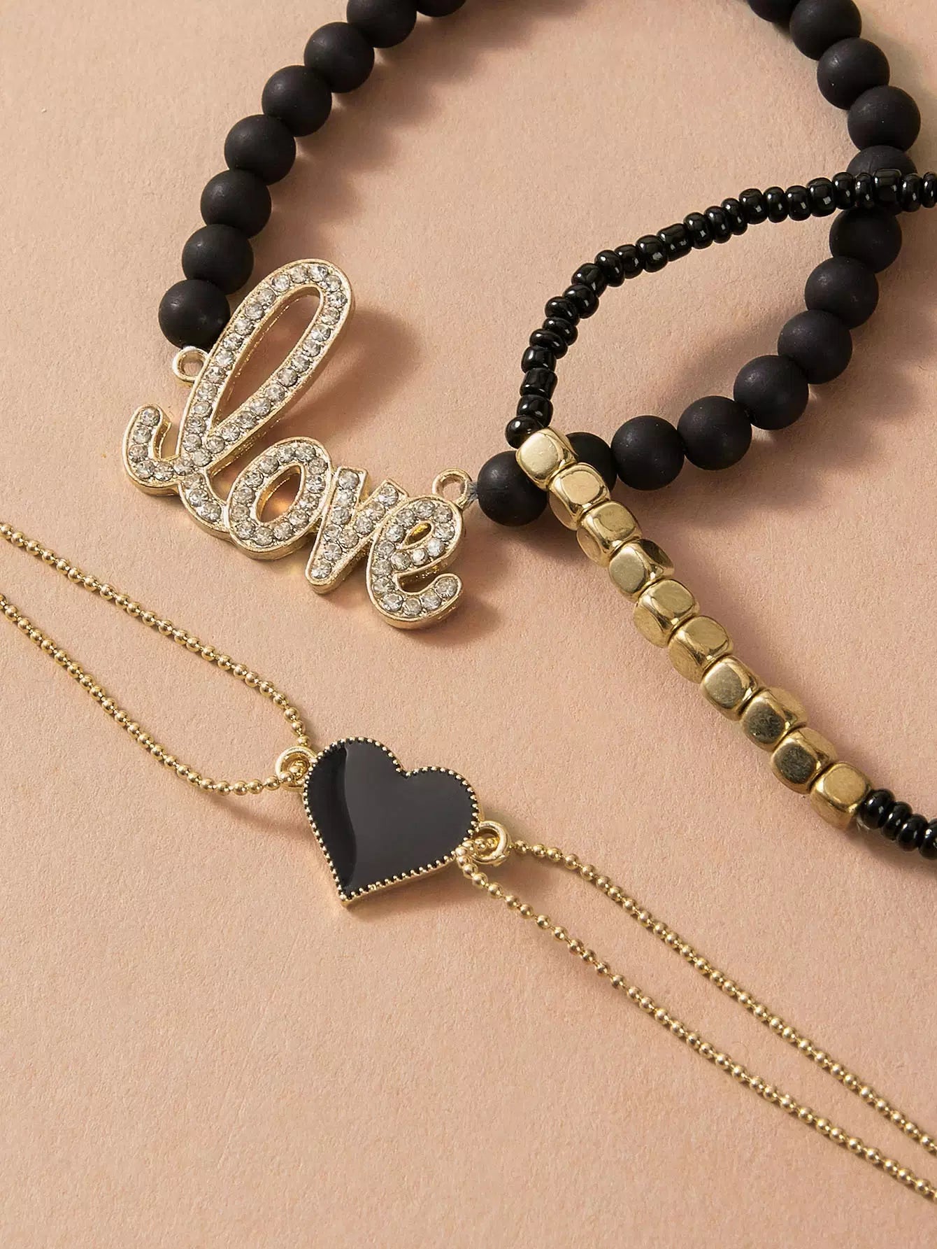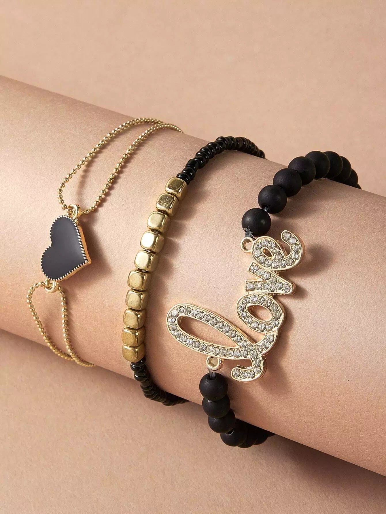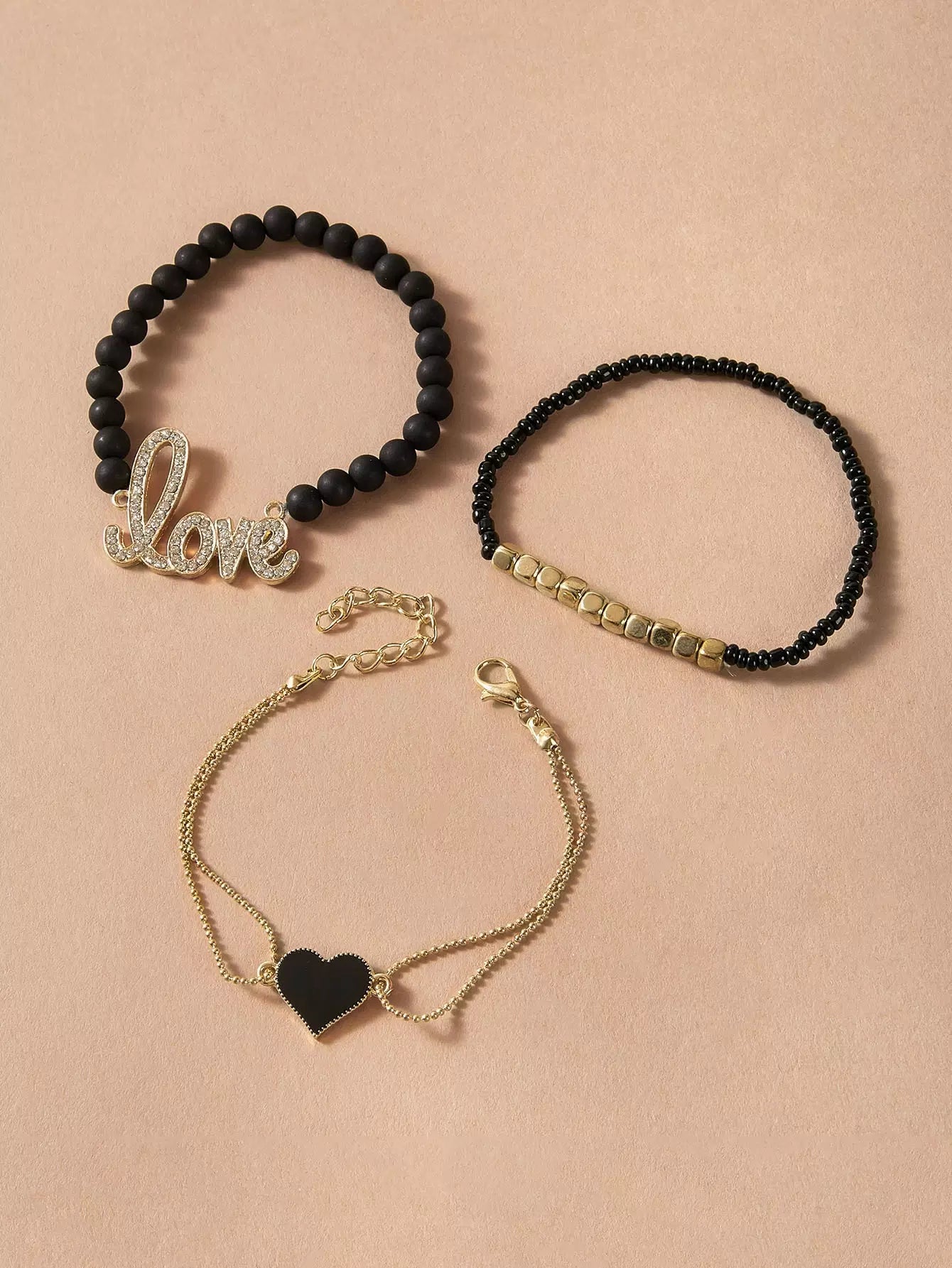 3 قطع من أساور الخرز المزخرفة بالحروف والقلوب