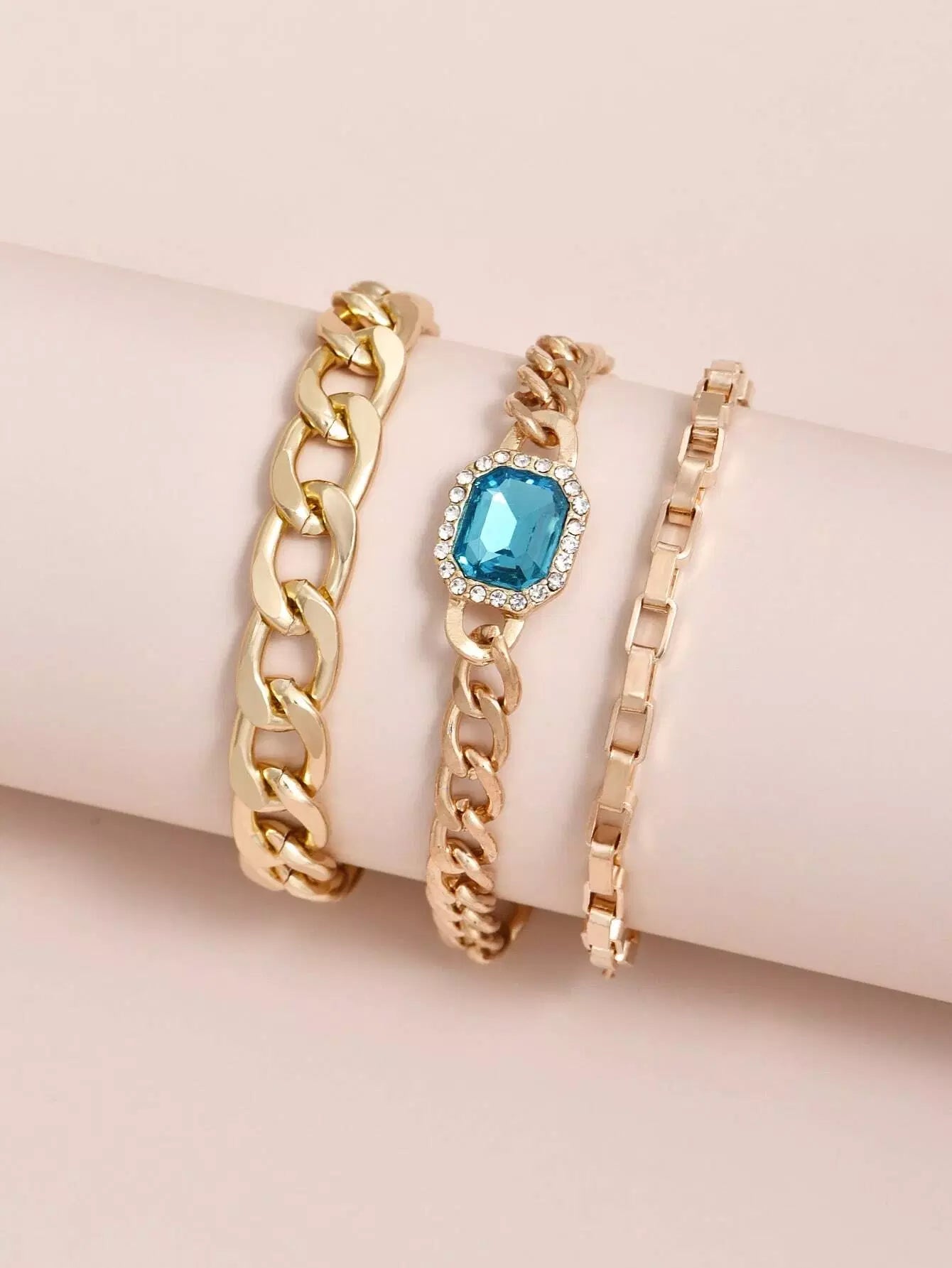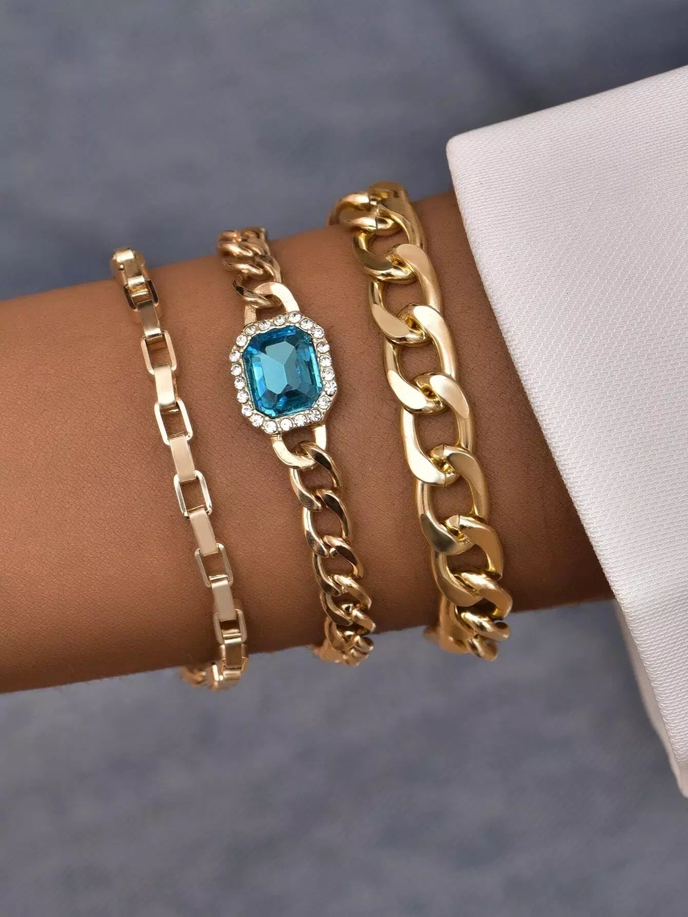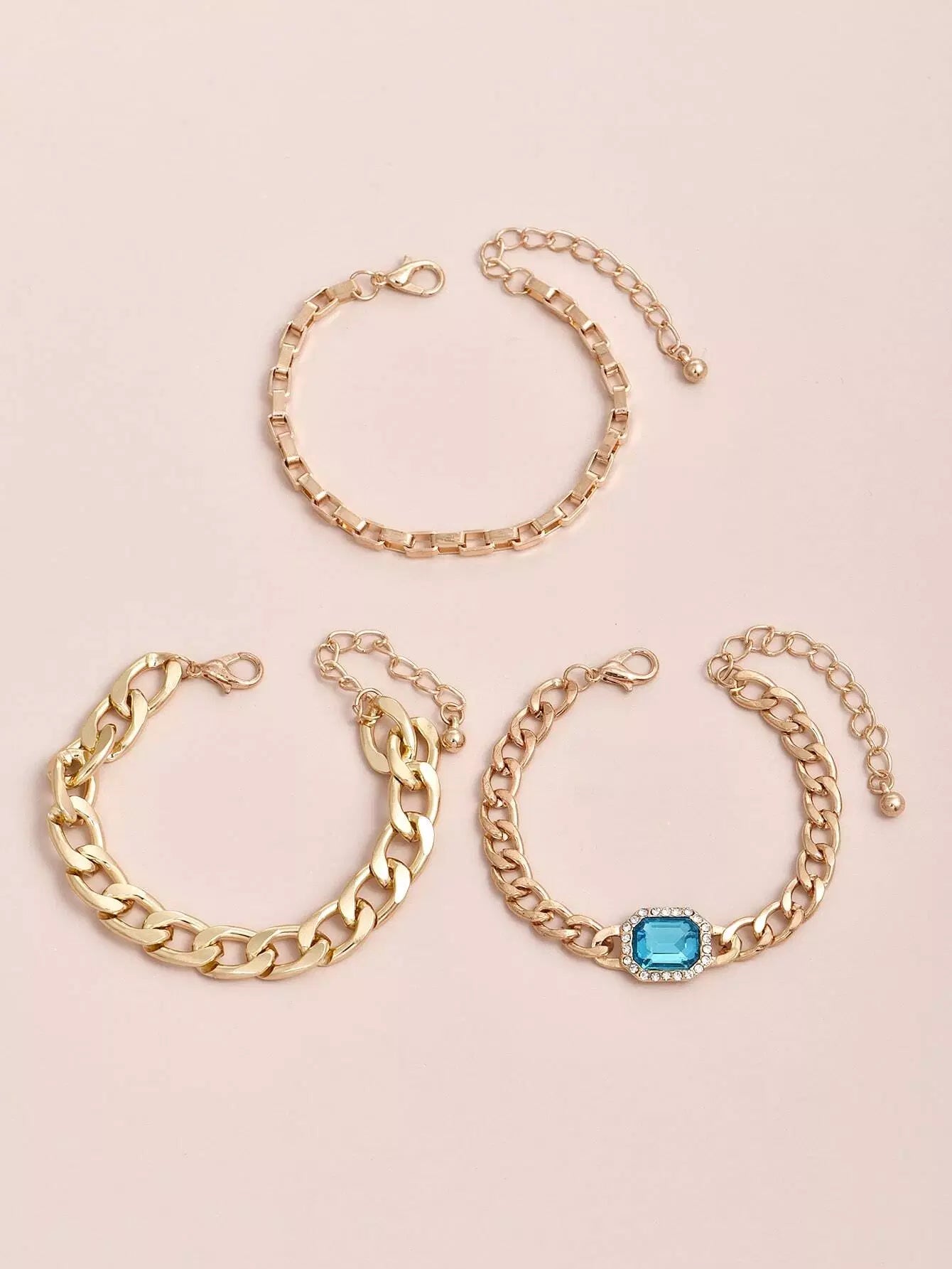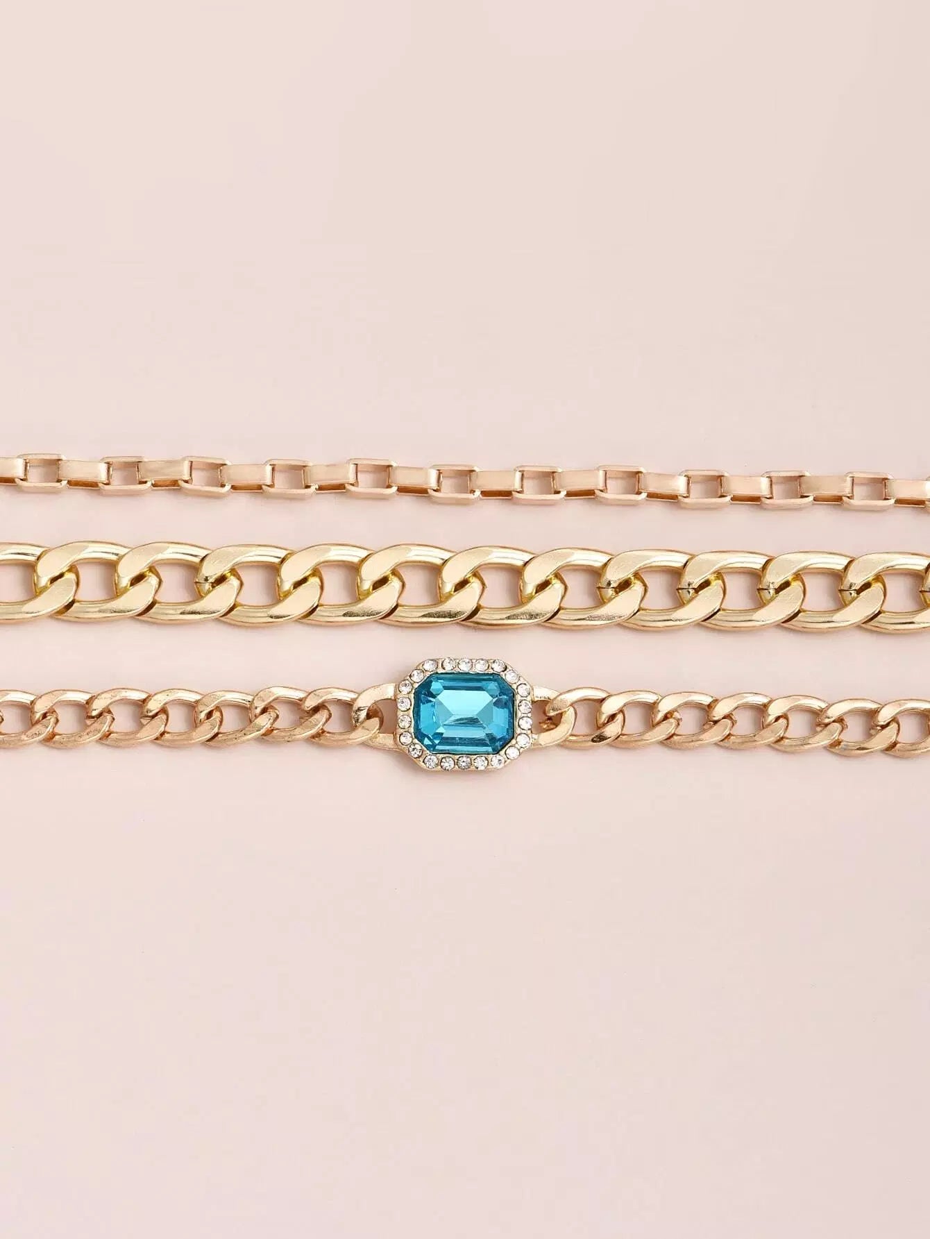 سوار سلسلة مزين بأحجار الراين مكون من 3 قطع