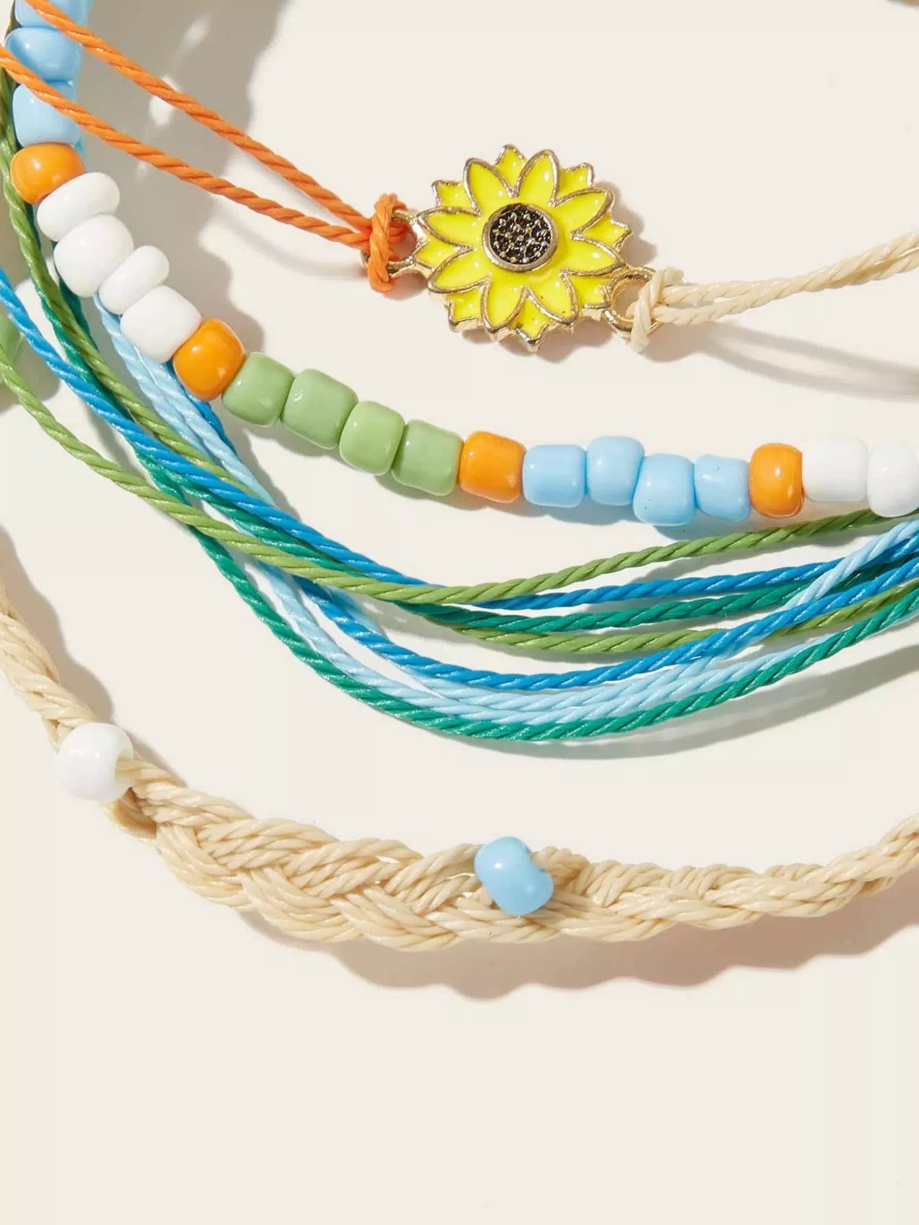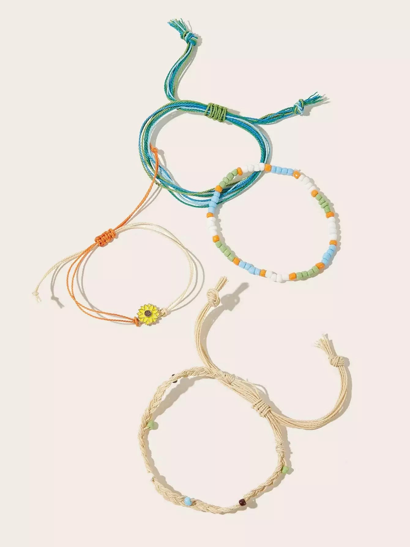مجموعة من 4 أساور مضفرة مزينة بزهرة عباد الشمس