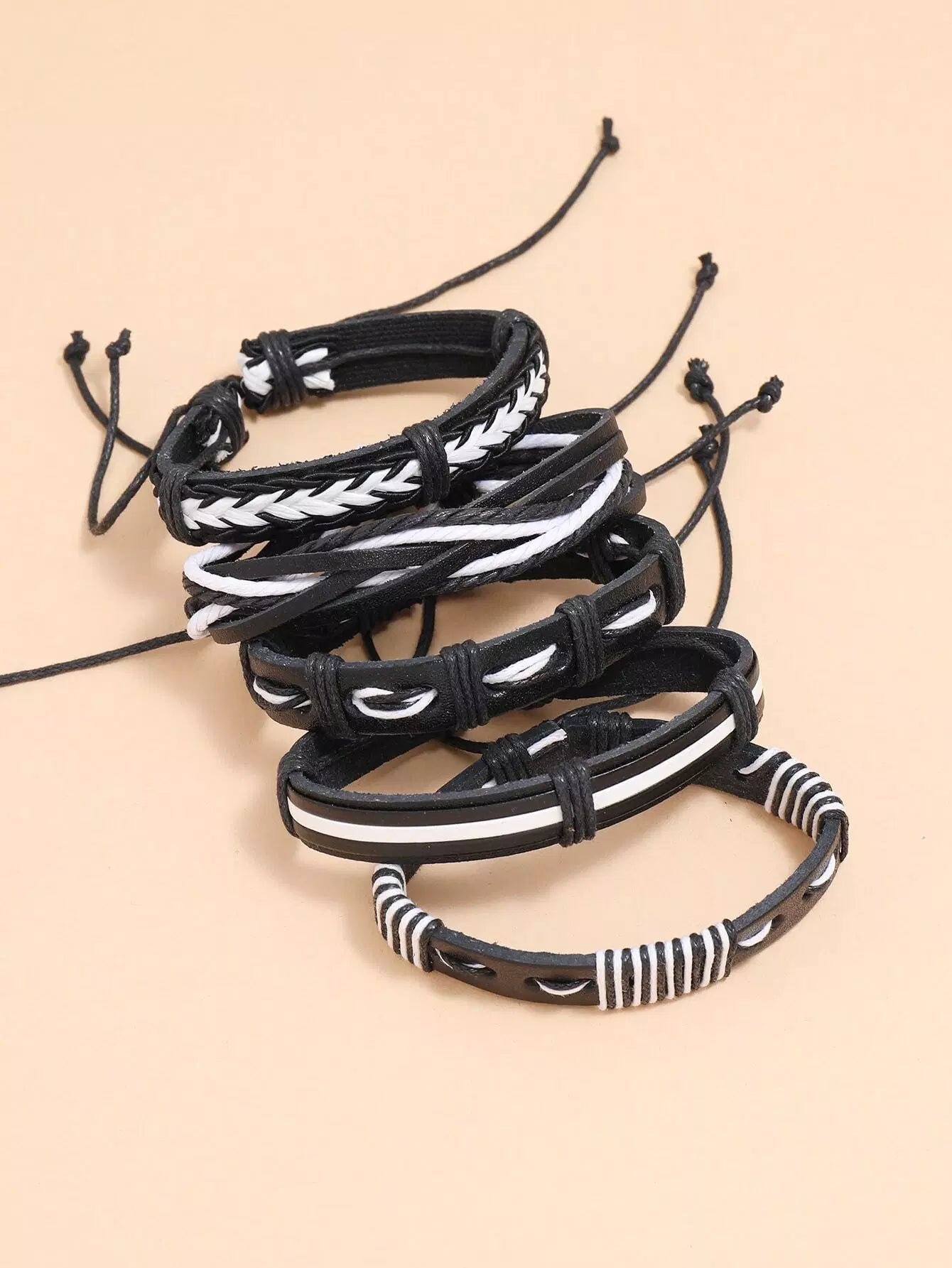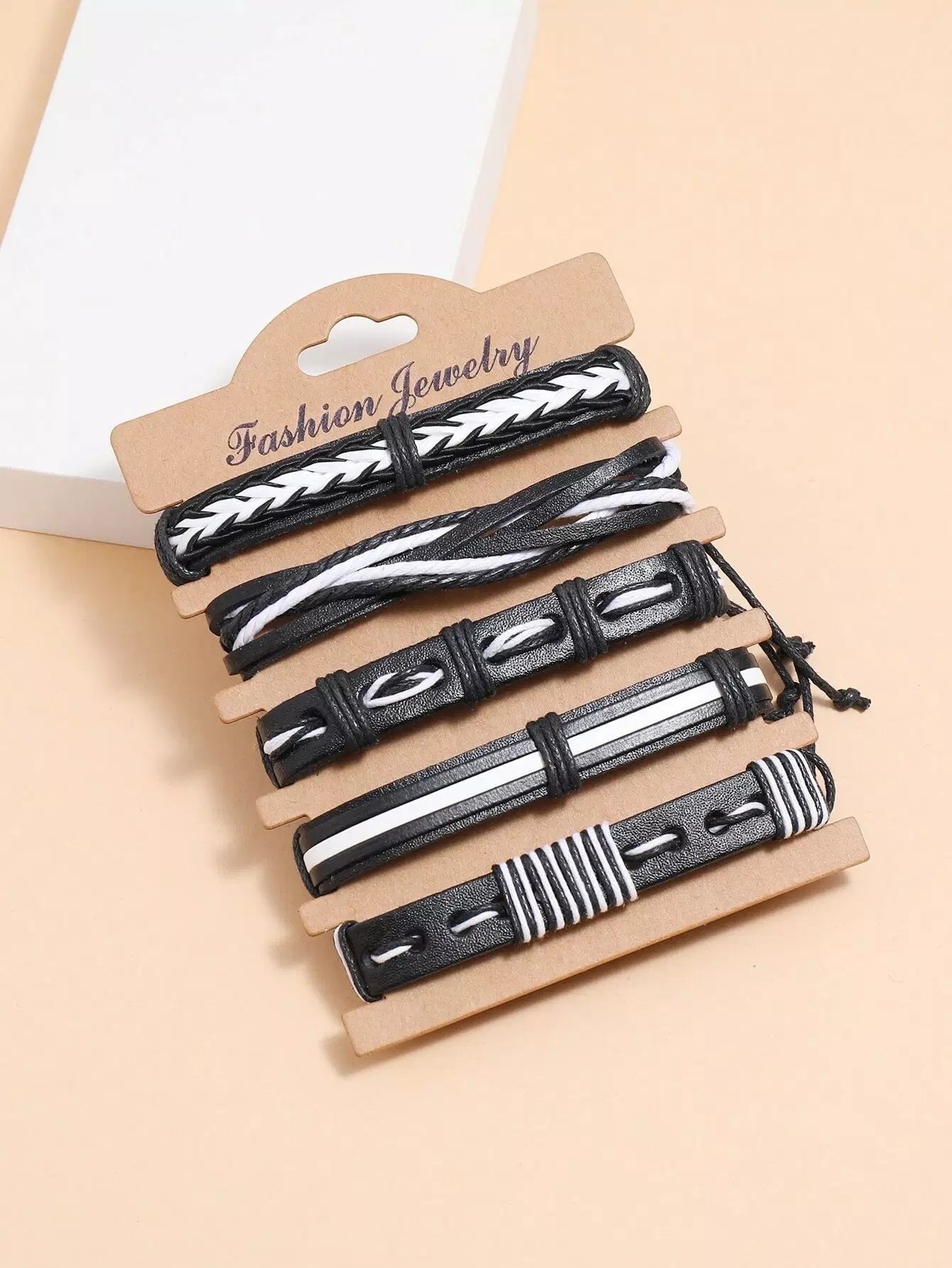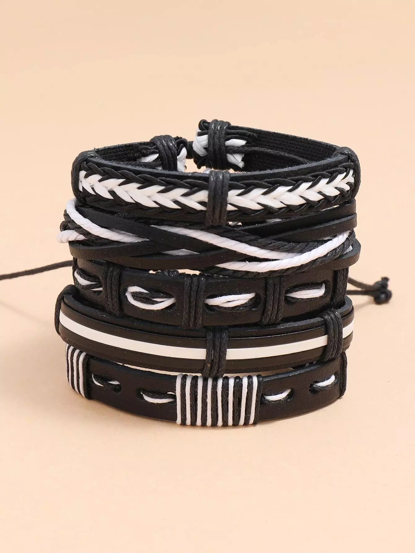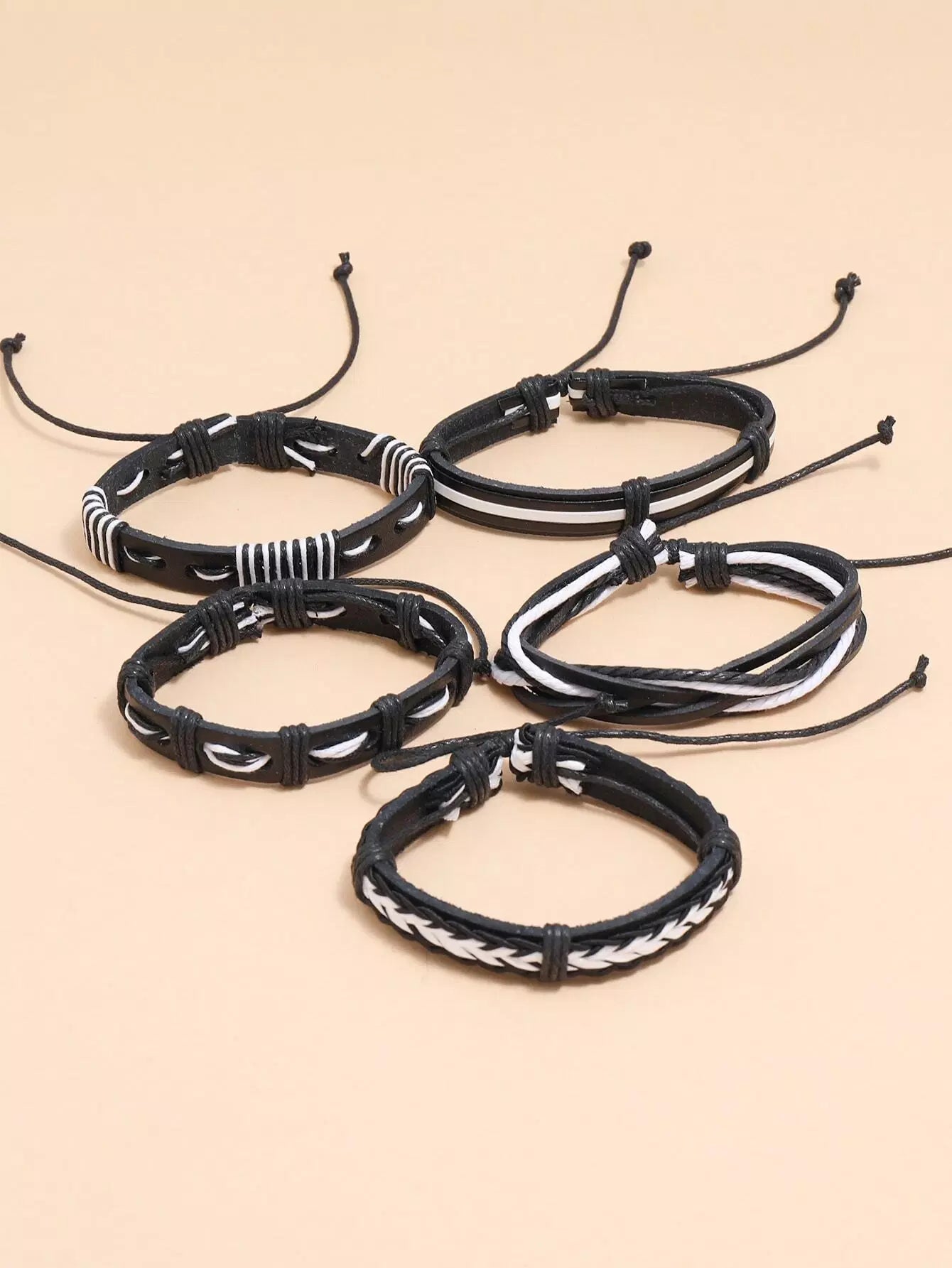 5 قطع سوار من جلد البولي يوريثان المضفر للرجال