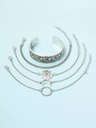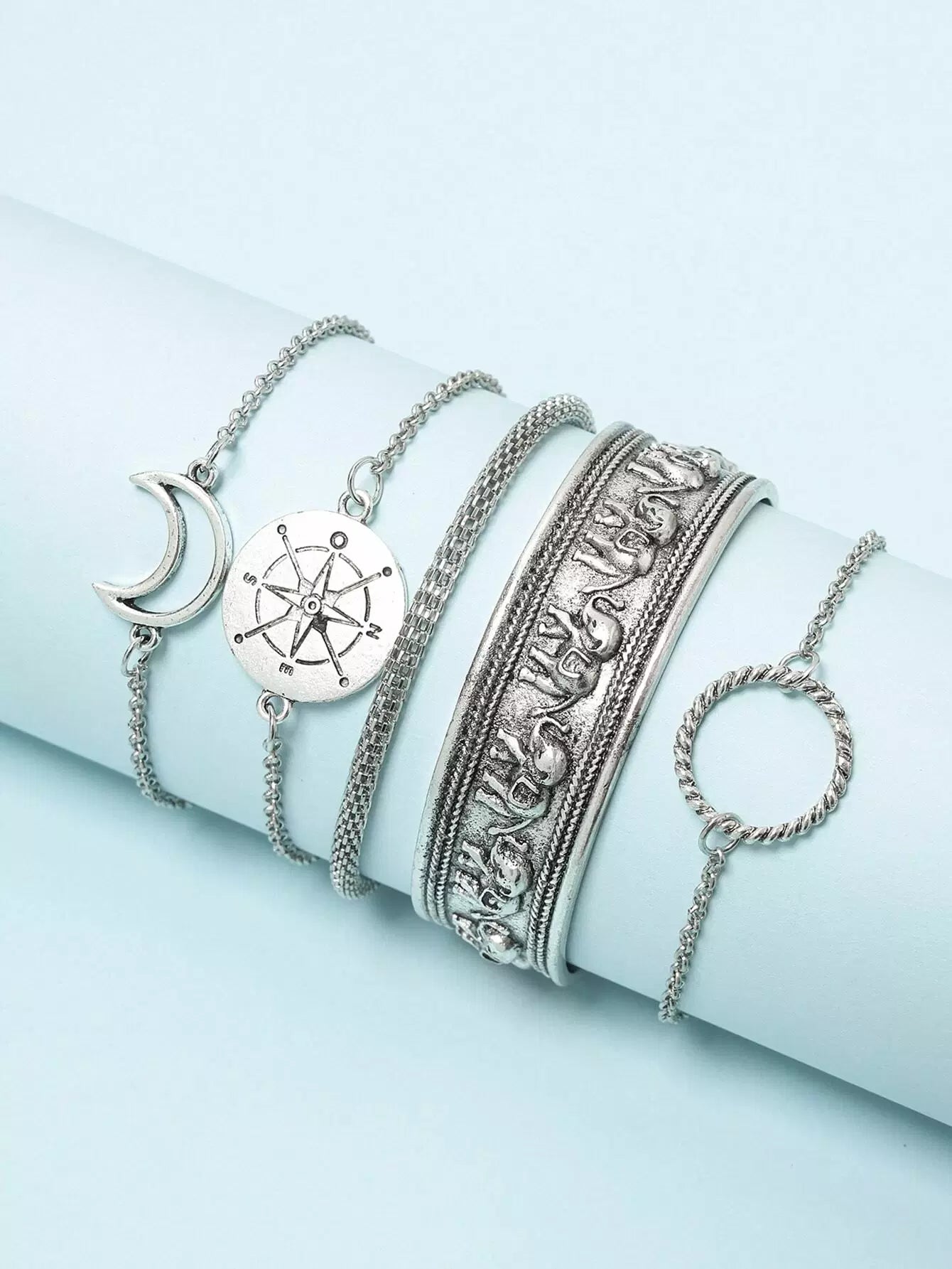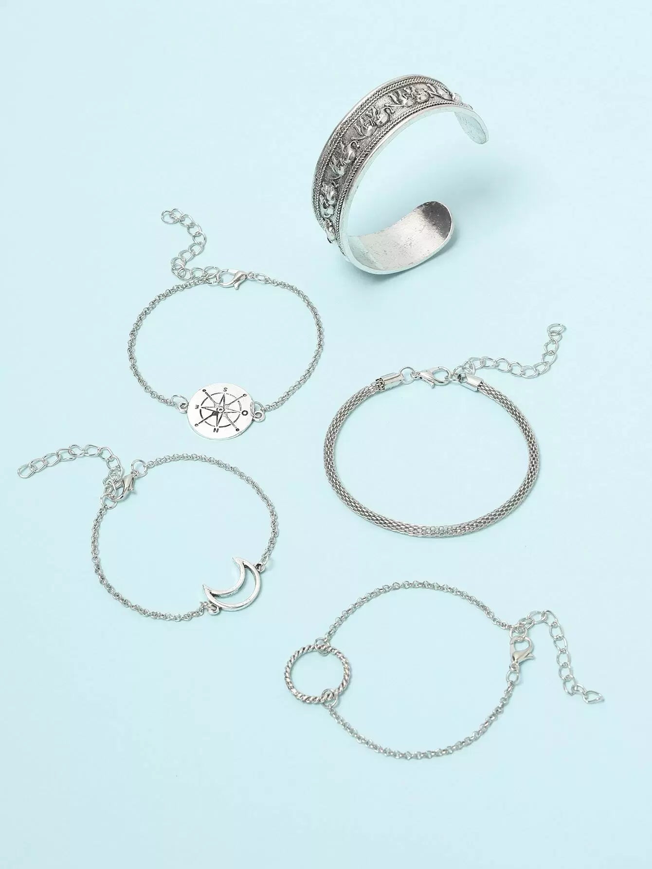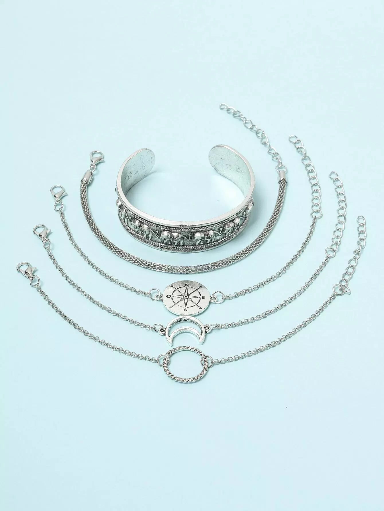 للنساء - 5 قطع من السوار المزخرف بنمط القمر والخاتم على شكل فيل