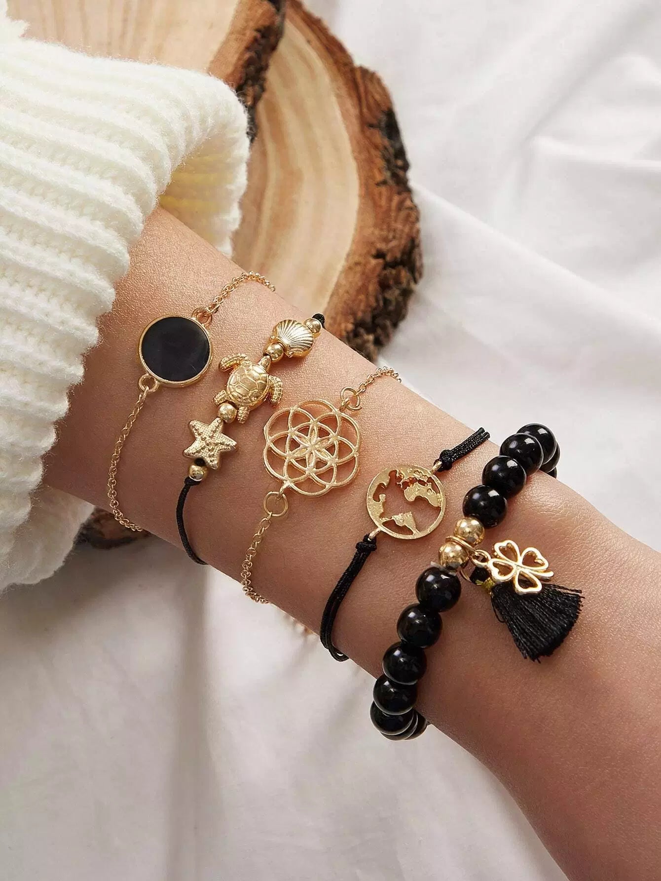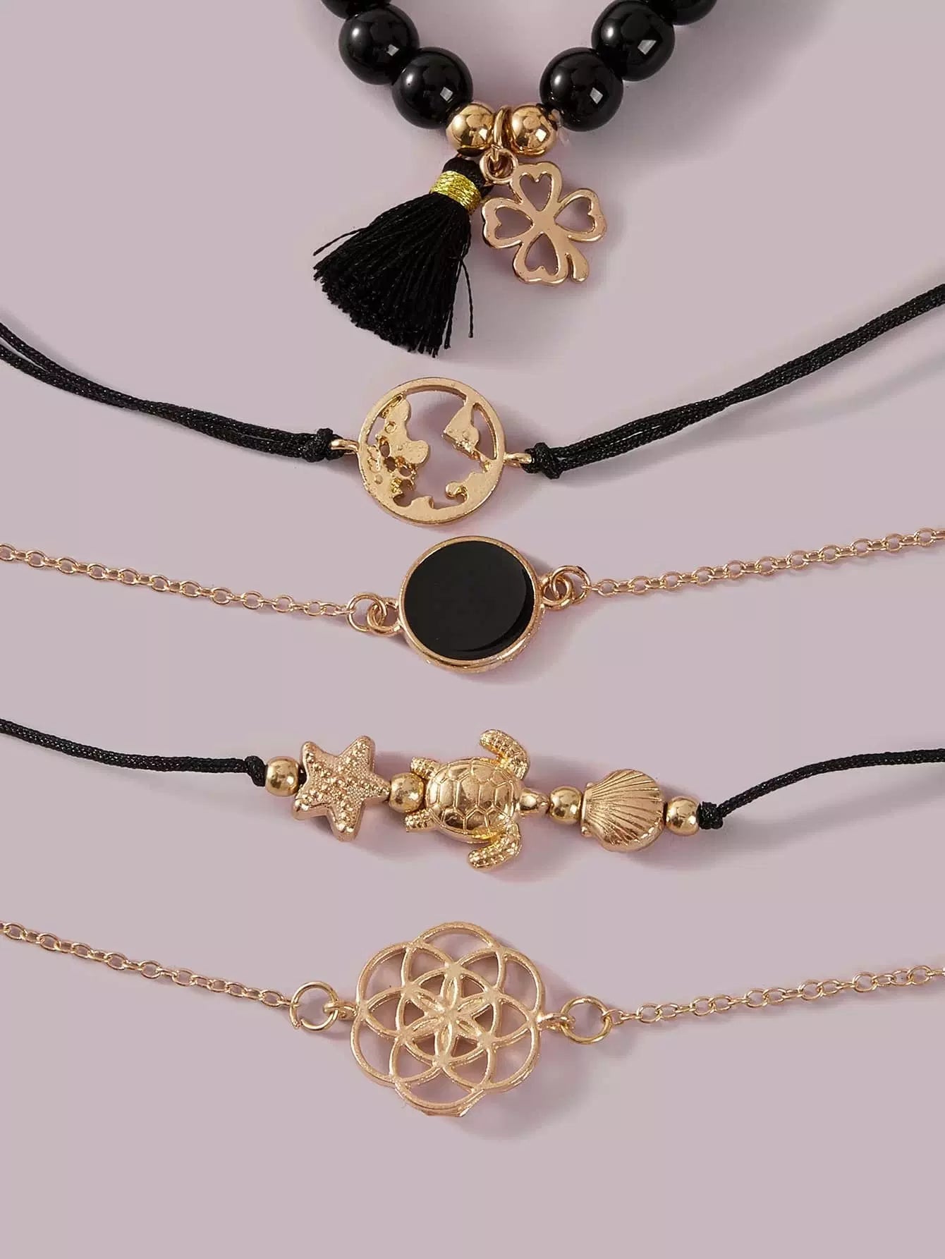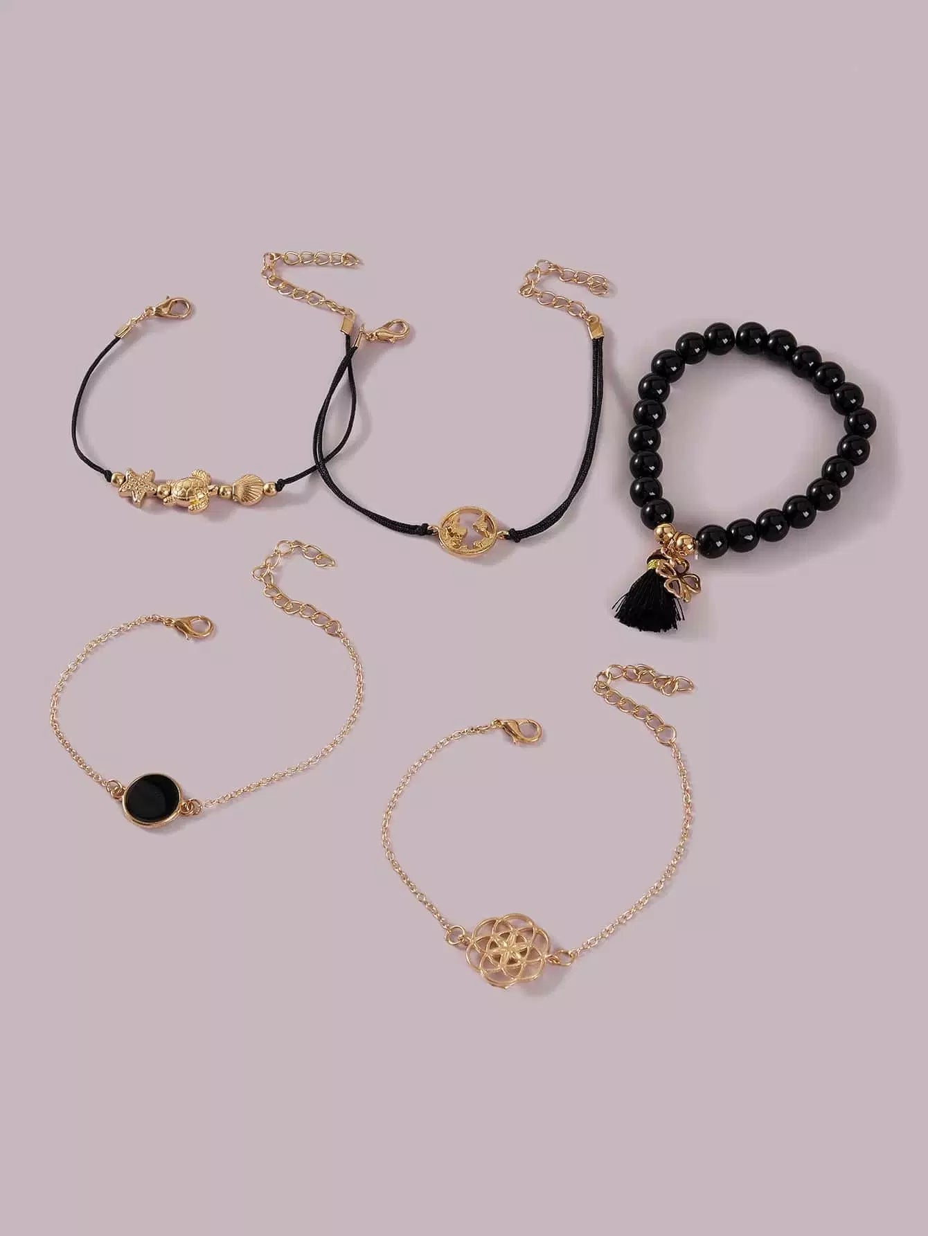 5 قطع من أساور الخرز المزخرفة بالصدف والشرابات