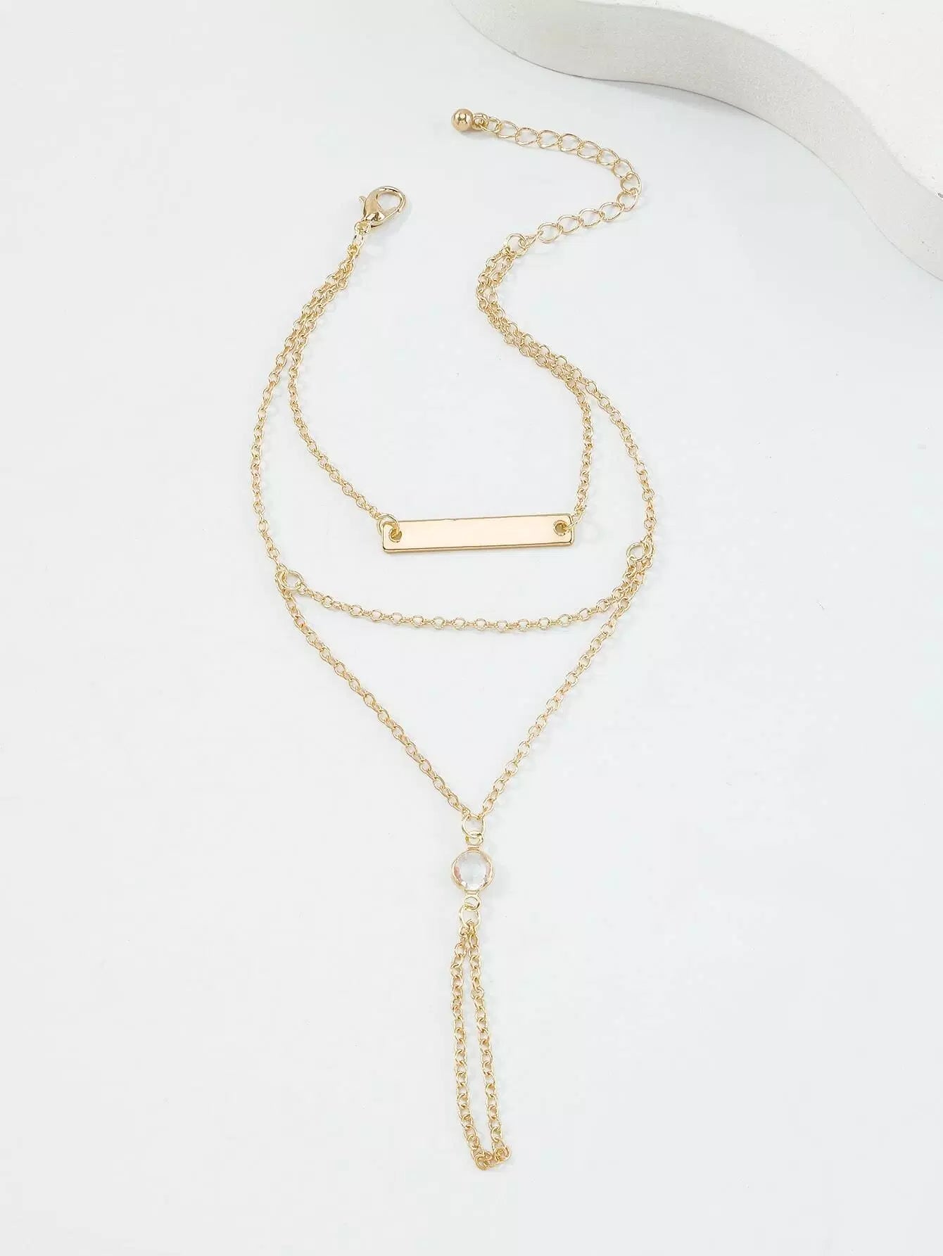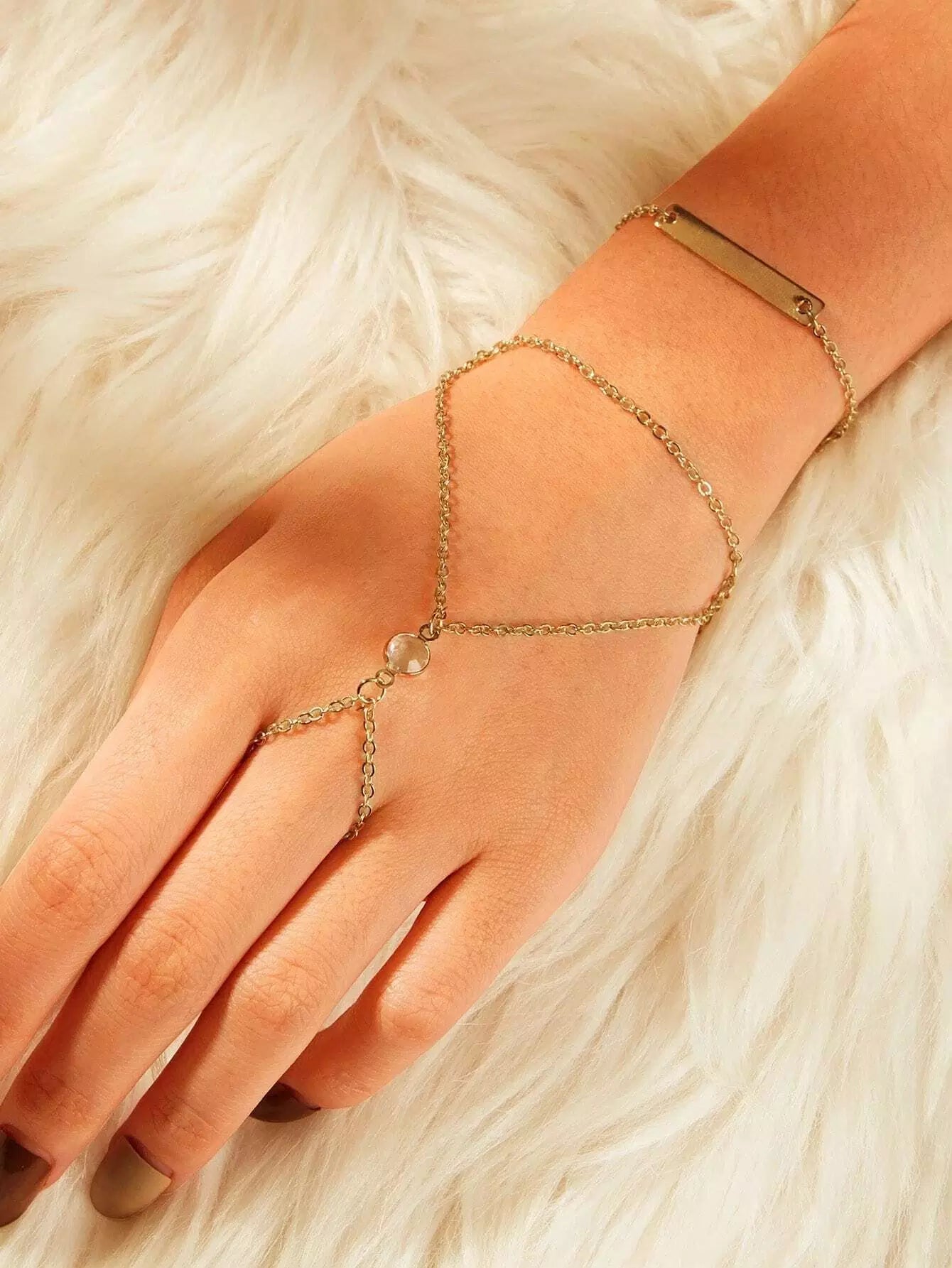 سوار سلسلة مكون من خاتم إصبع بتفاصيل شريطية، قطعة واحدة
