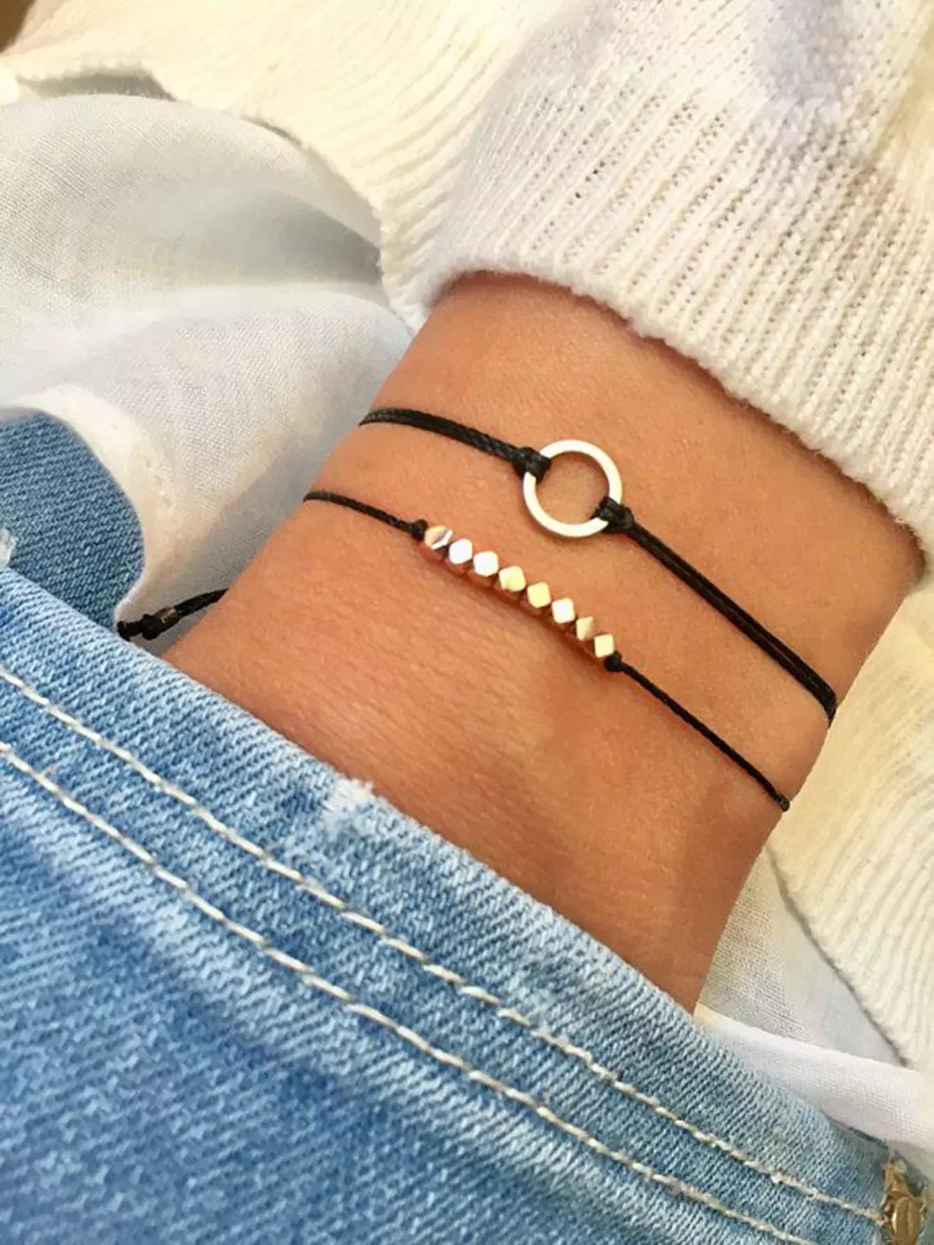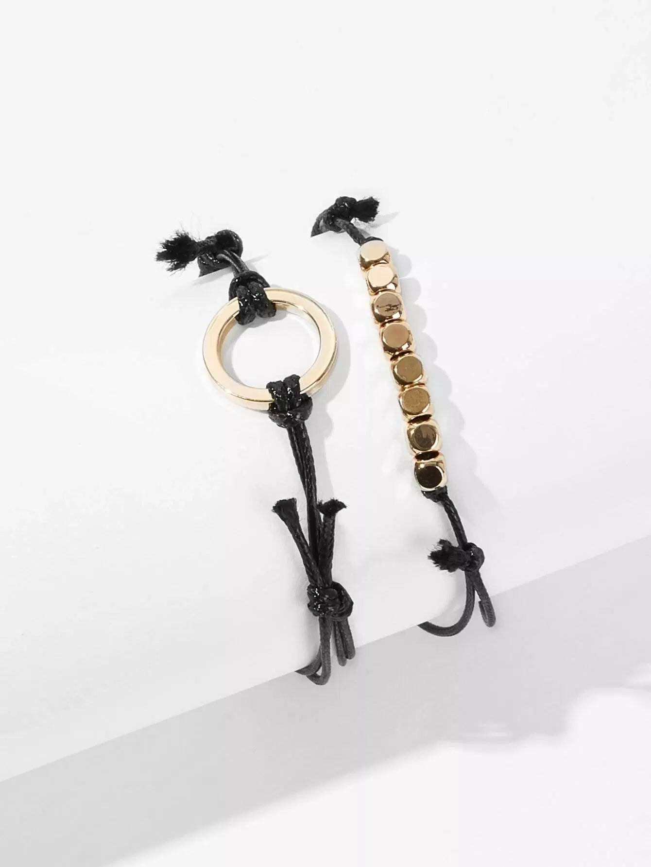 طقم أساور بتفاصيل دائرية مكون من قطعتين