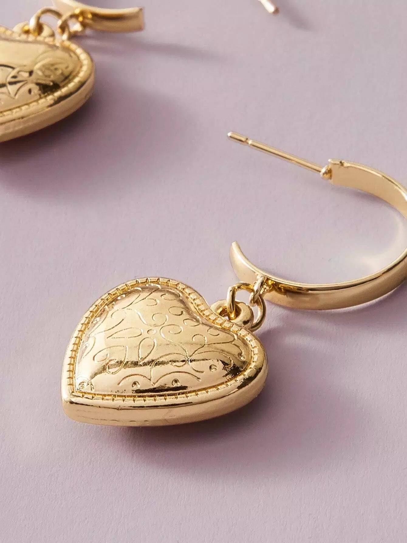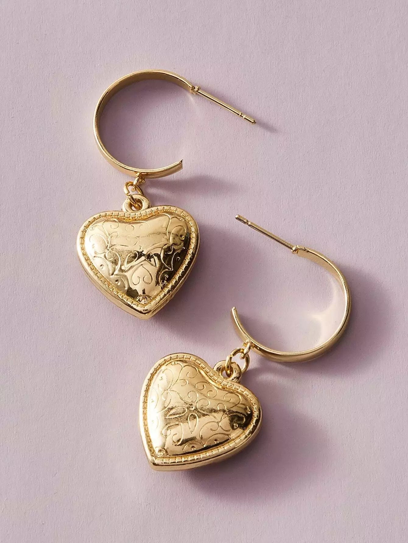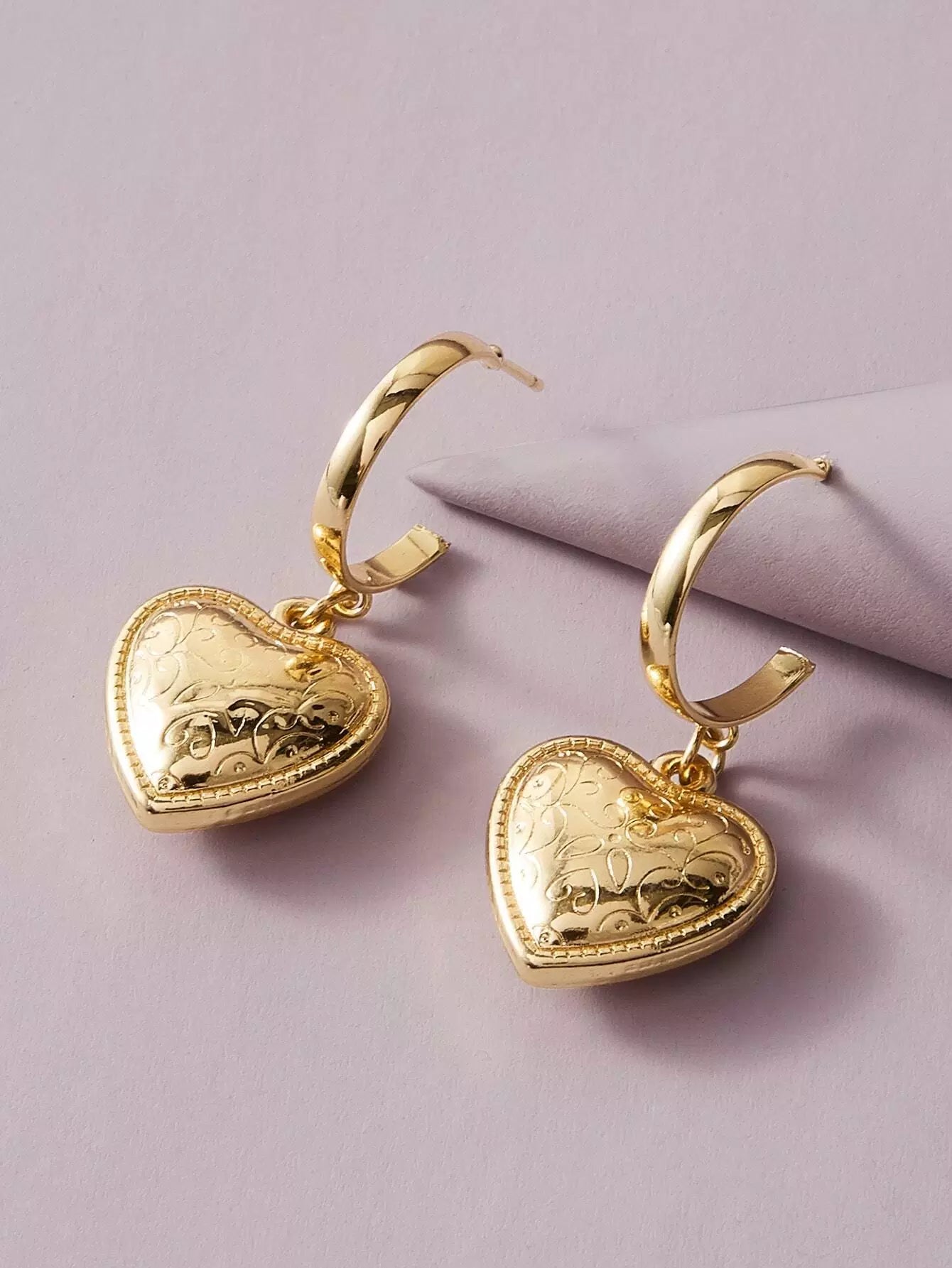 النساء - زوج واحد من الأقراط المتدلية على شكل قلب معدني مزخرف بحلقة الكفة