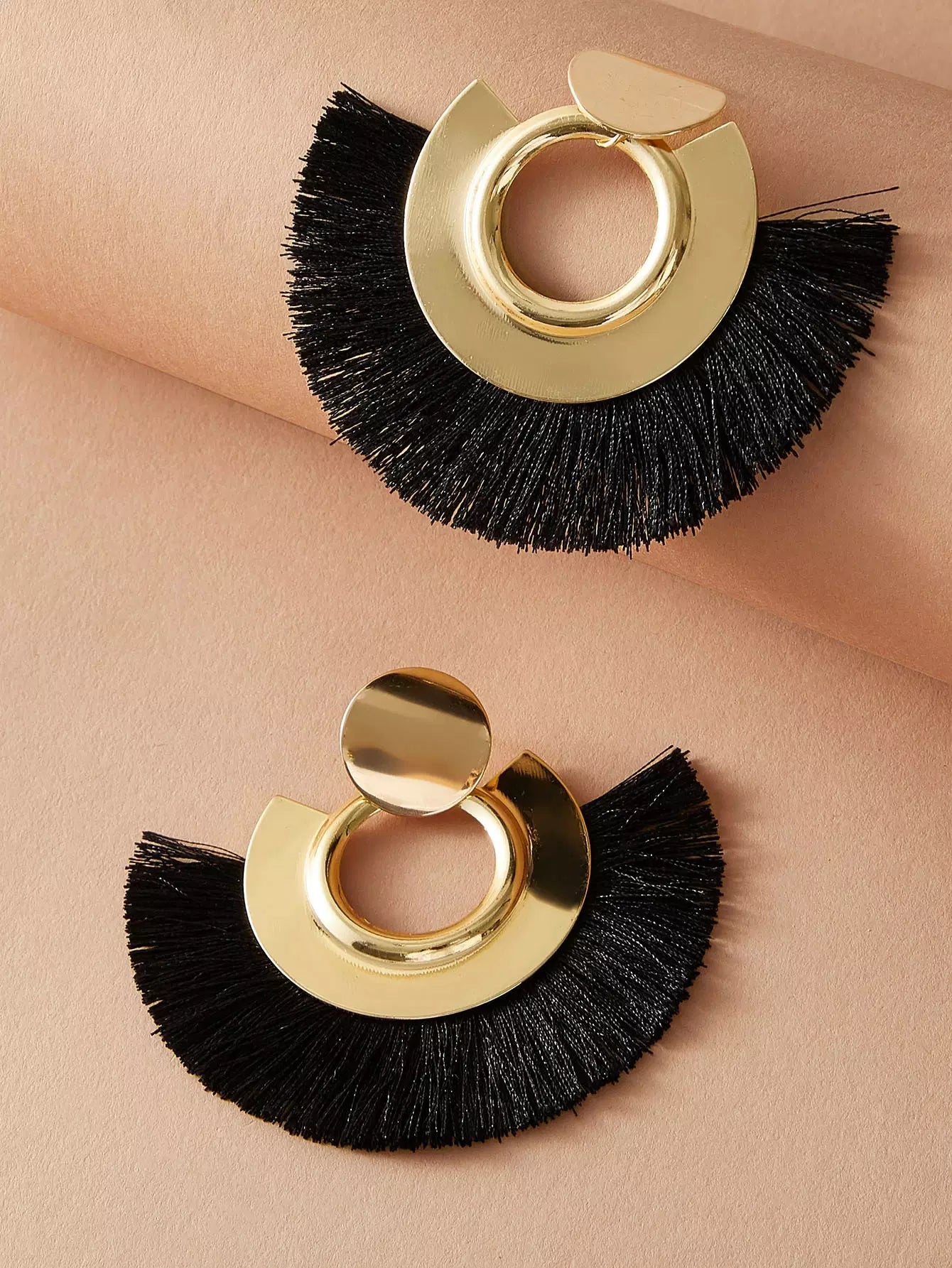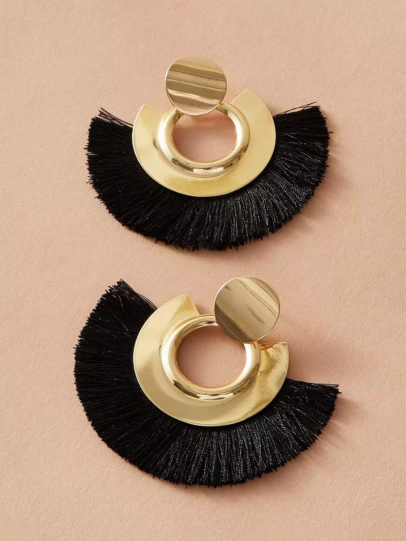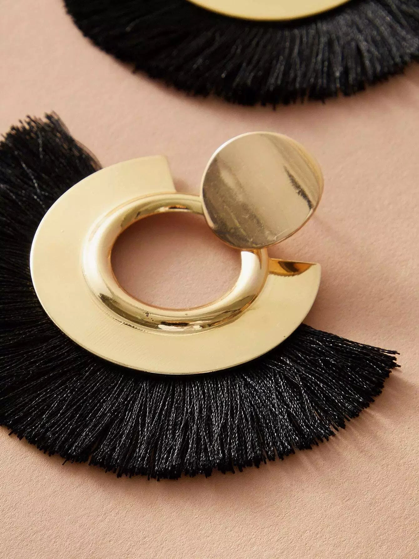 النساء - زوج واحد من الأقراط الشرابة على شكل قرص معدني