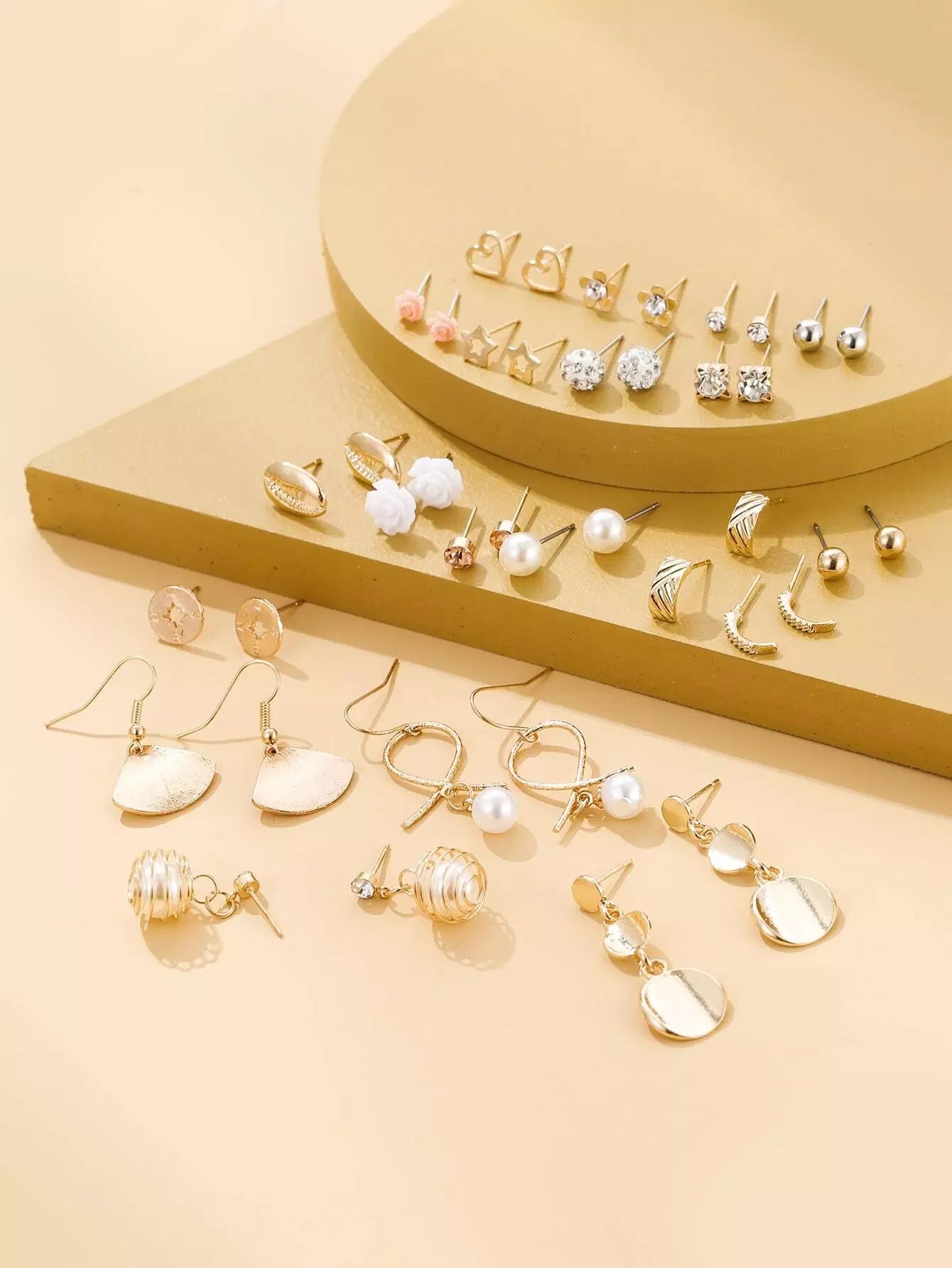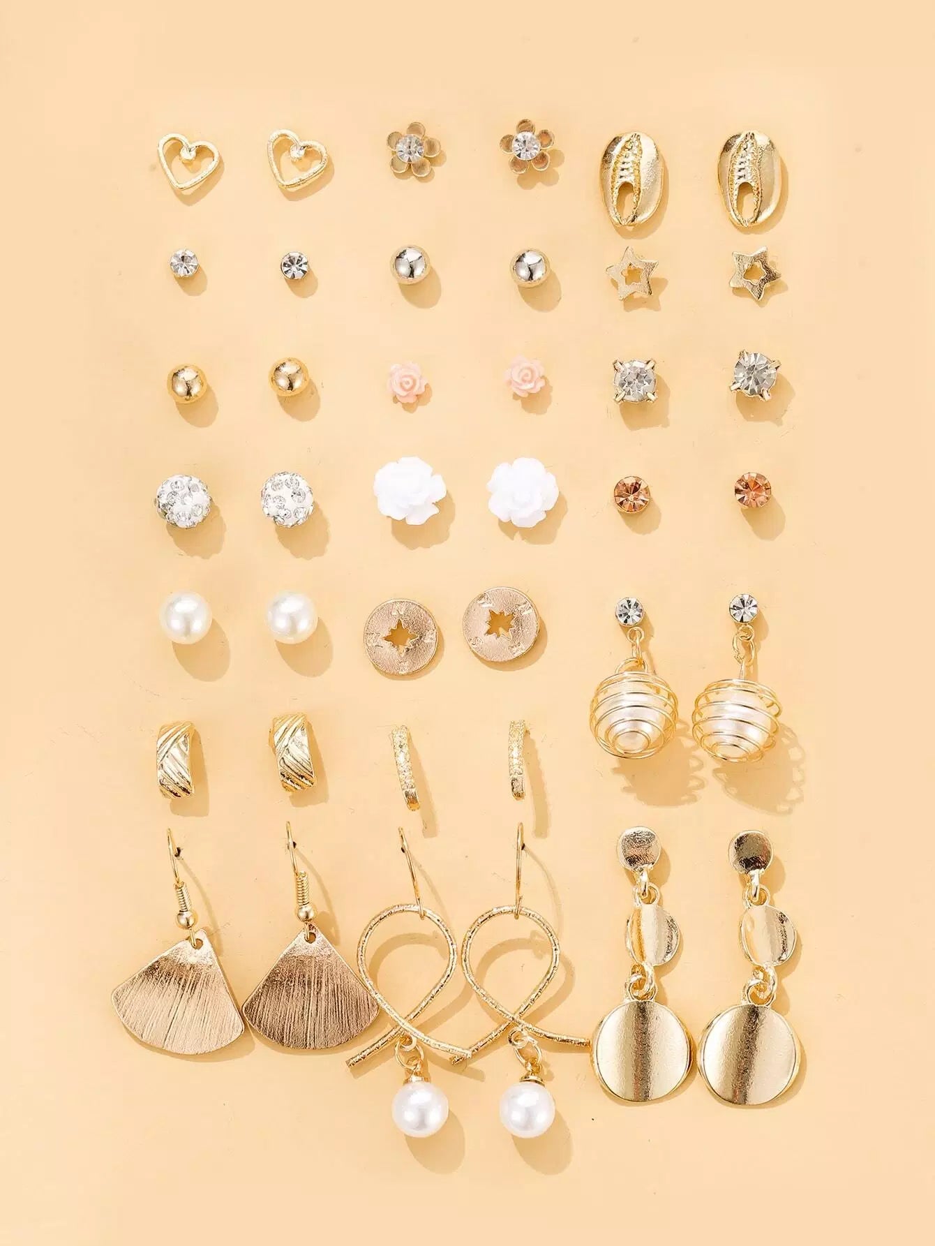 مجموعة من 20 زوجًا من الأقراط المزخرفة باللؤلؤ الصناعي وأحجار الراين
