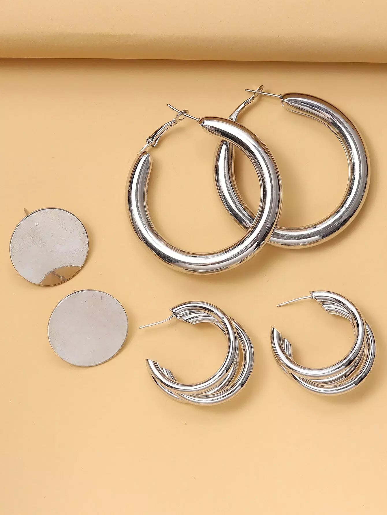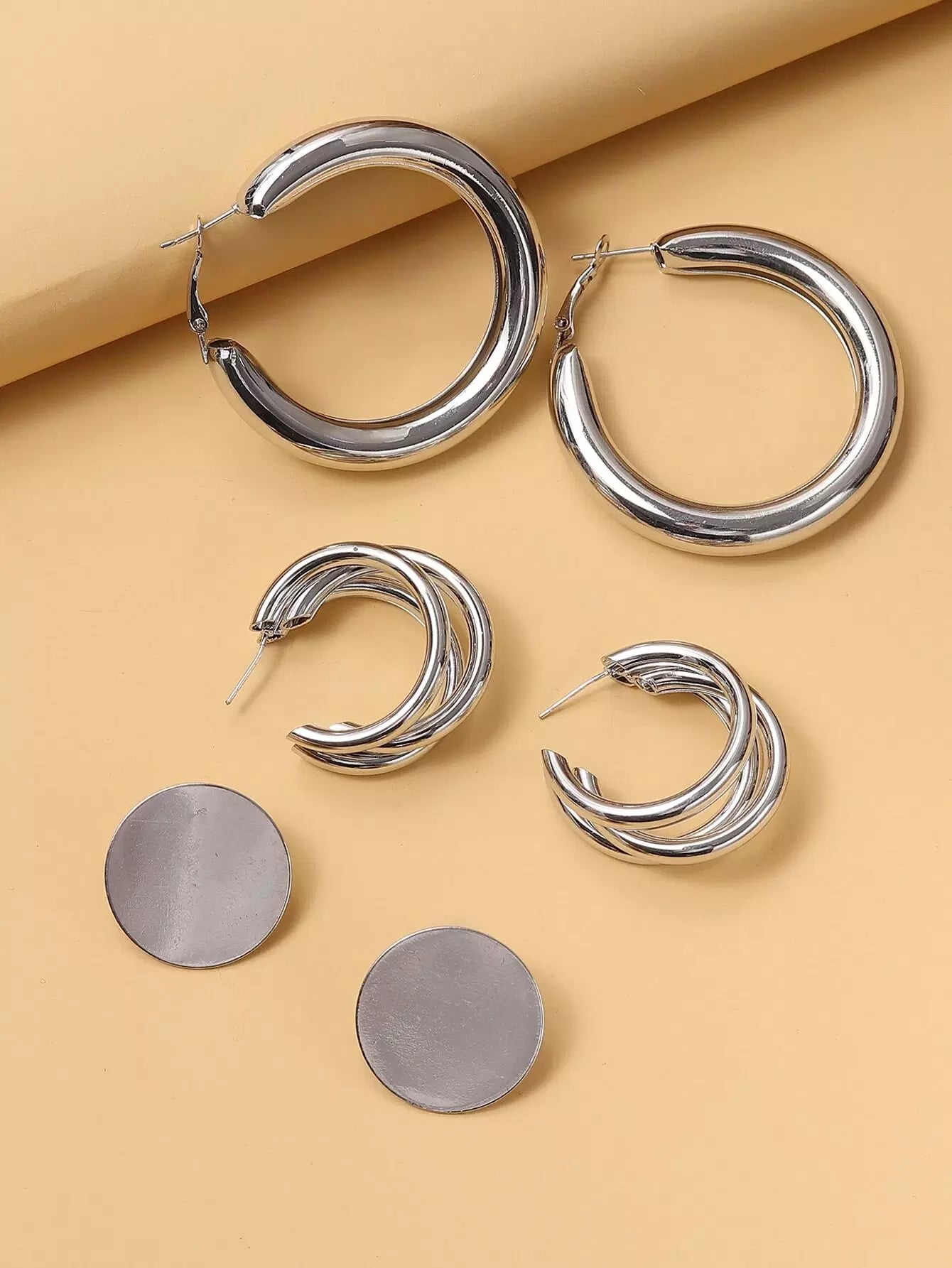 للنساء - 3 أزواج من الأقراط ذات التصميم الدائري