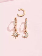 النساء-3 قطع حجر الراين ديكور القمر سحر القرط