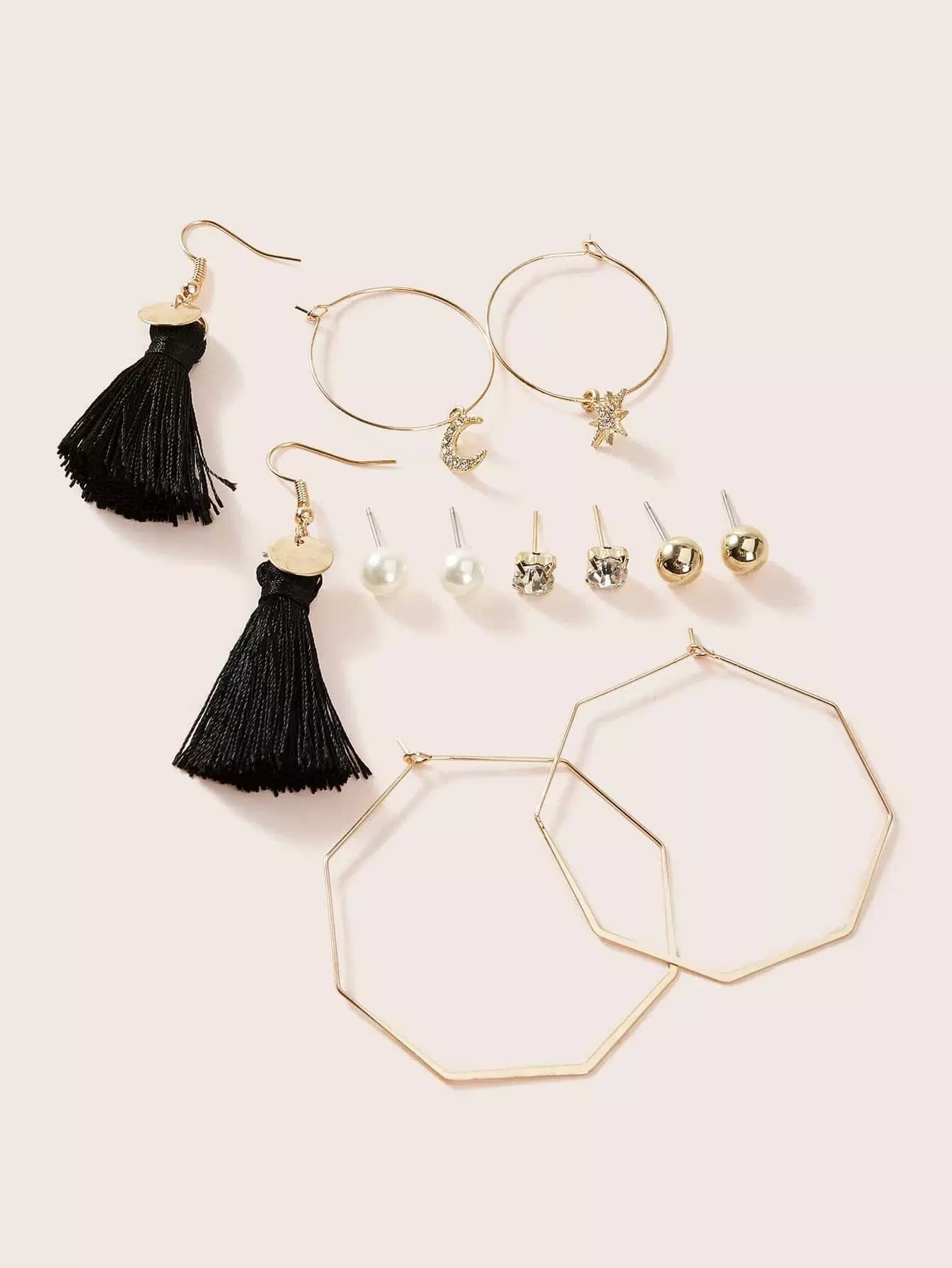 6 أزواج من الأقراط المزينة بأحجار الراين واللؤلؤ