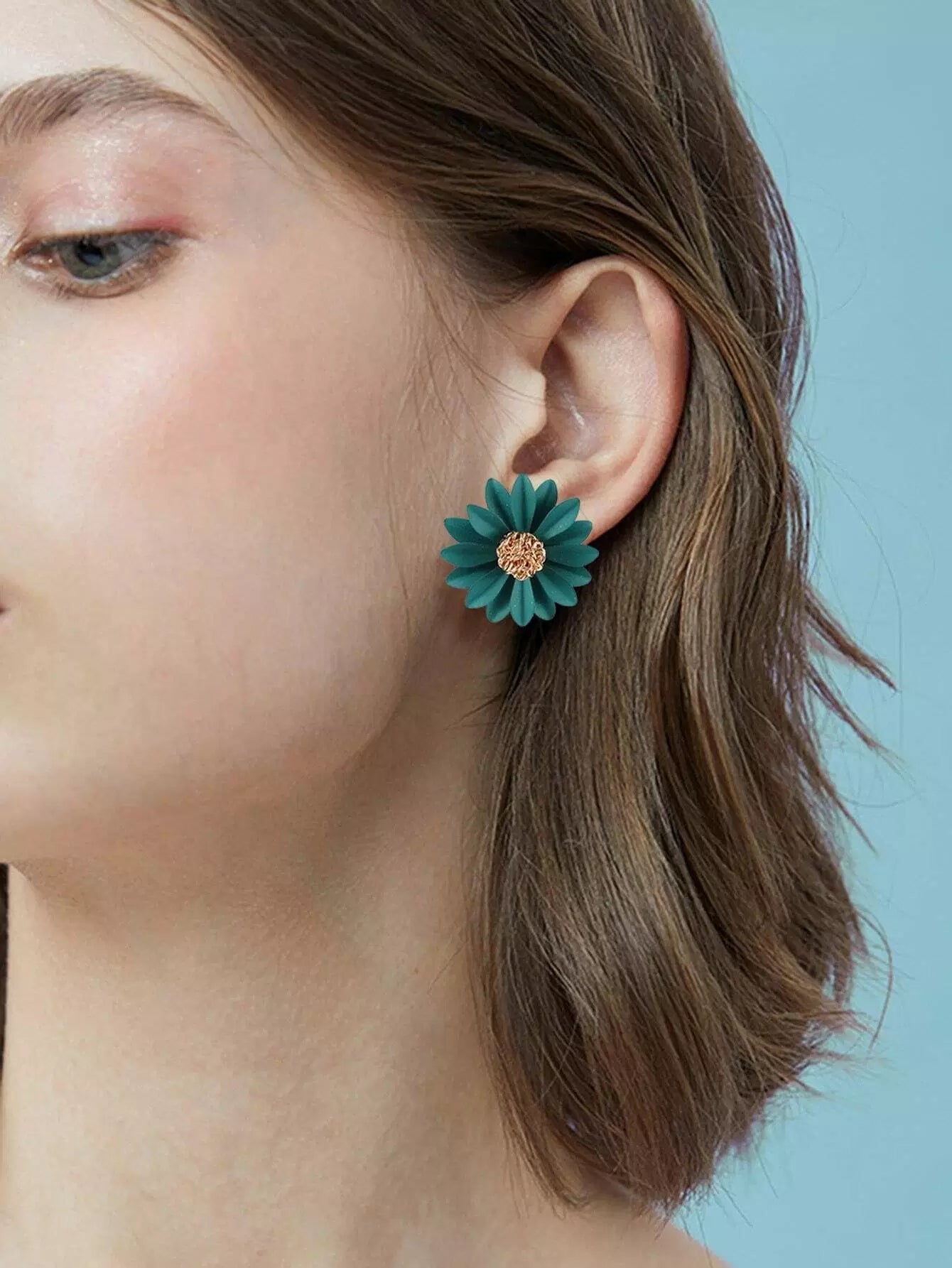 أقراط مرصعة على شكل زهرة الأقحوان 1 زوج واحد