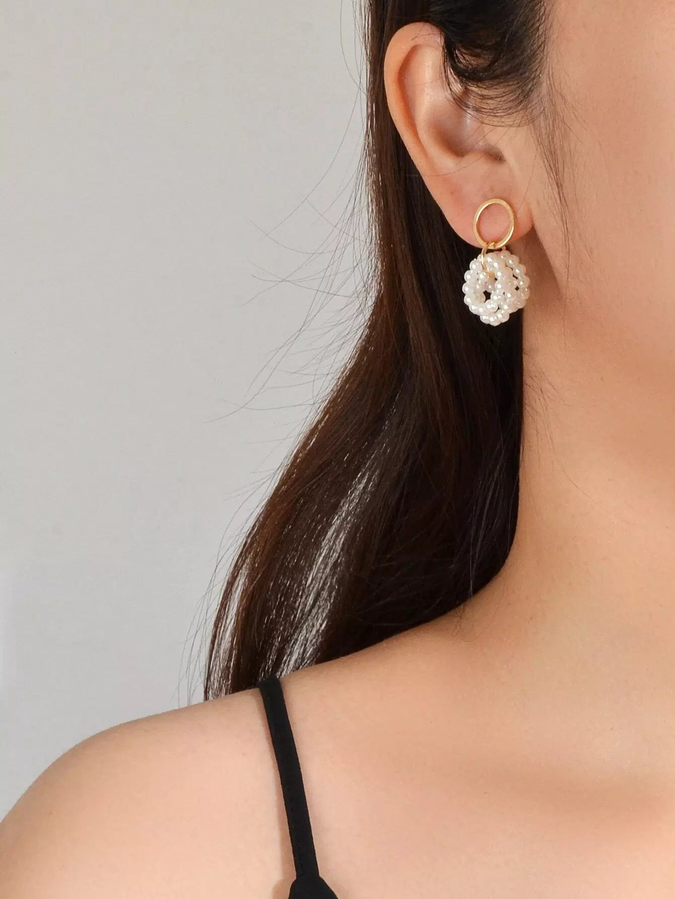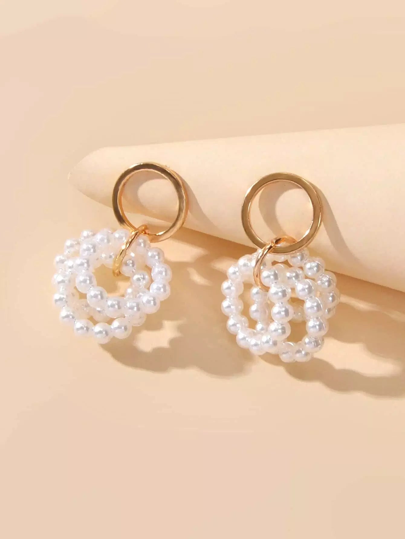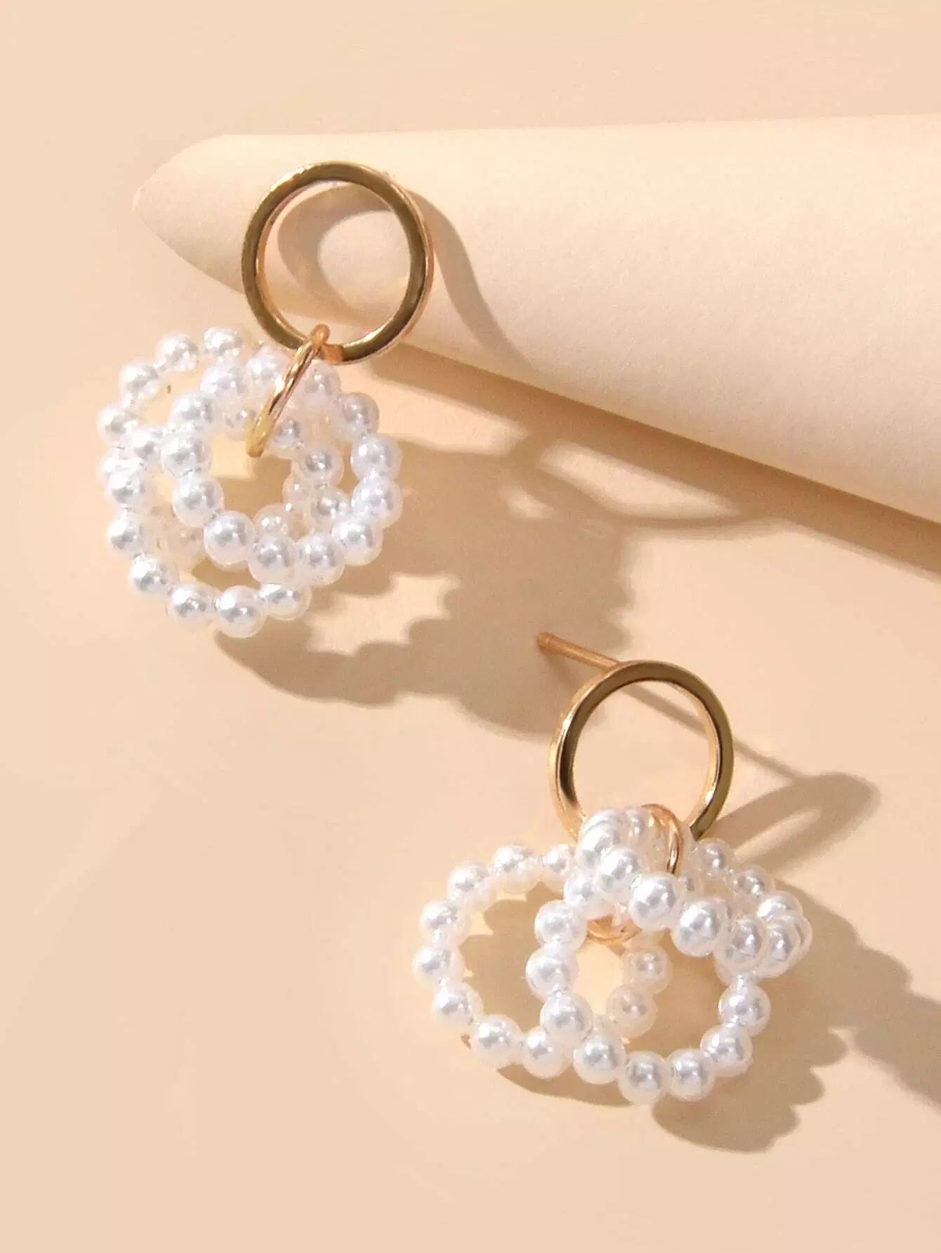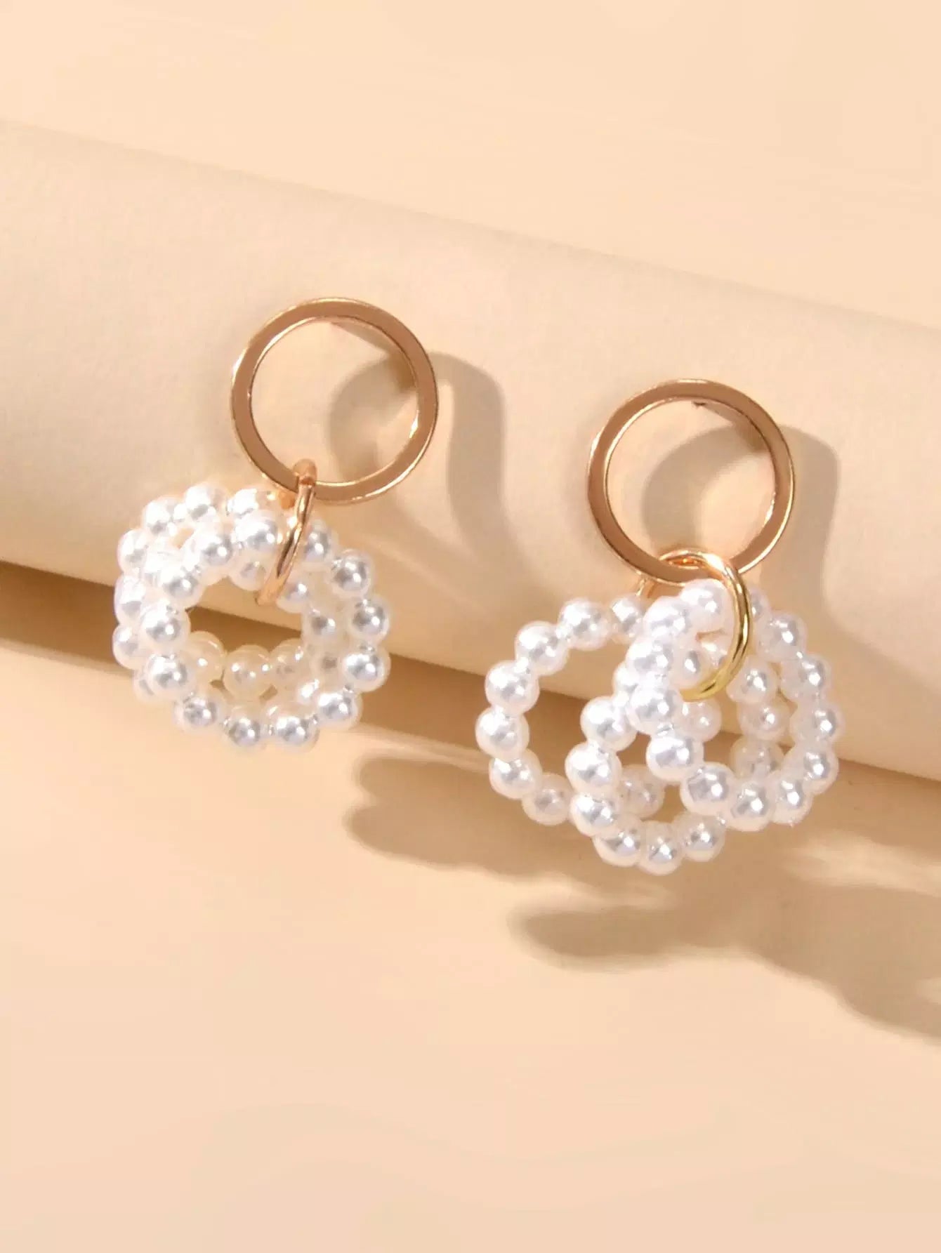 أقراط متدلية دائرية من اللؤلؤ الصناعي مطرزة بالخرز الصناعي