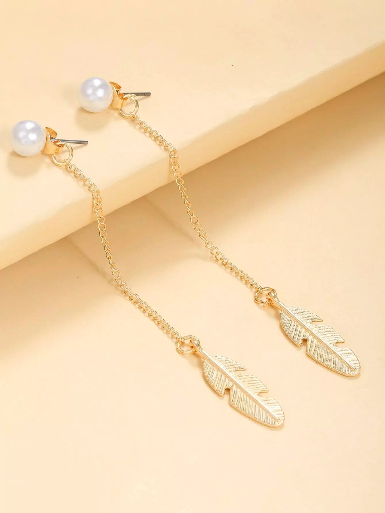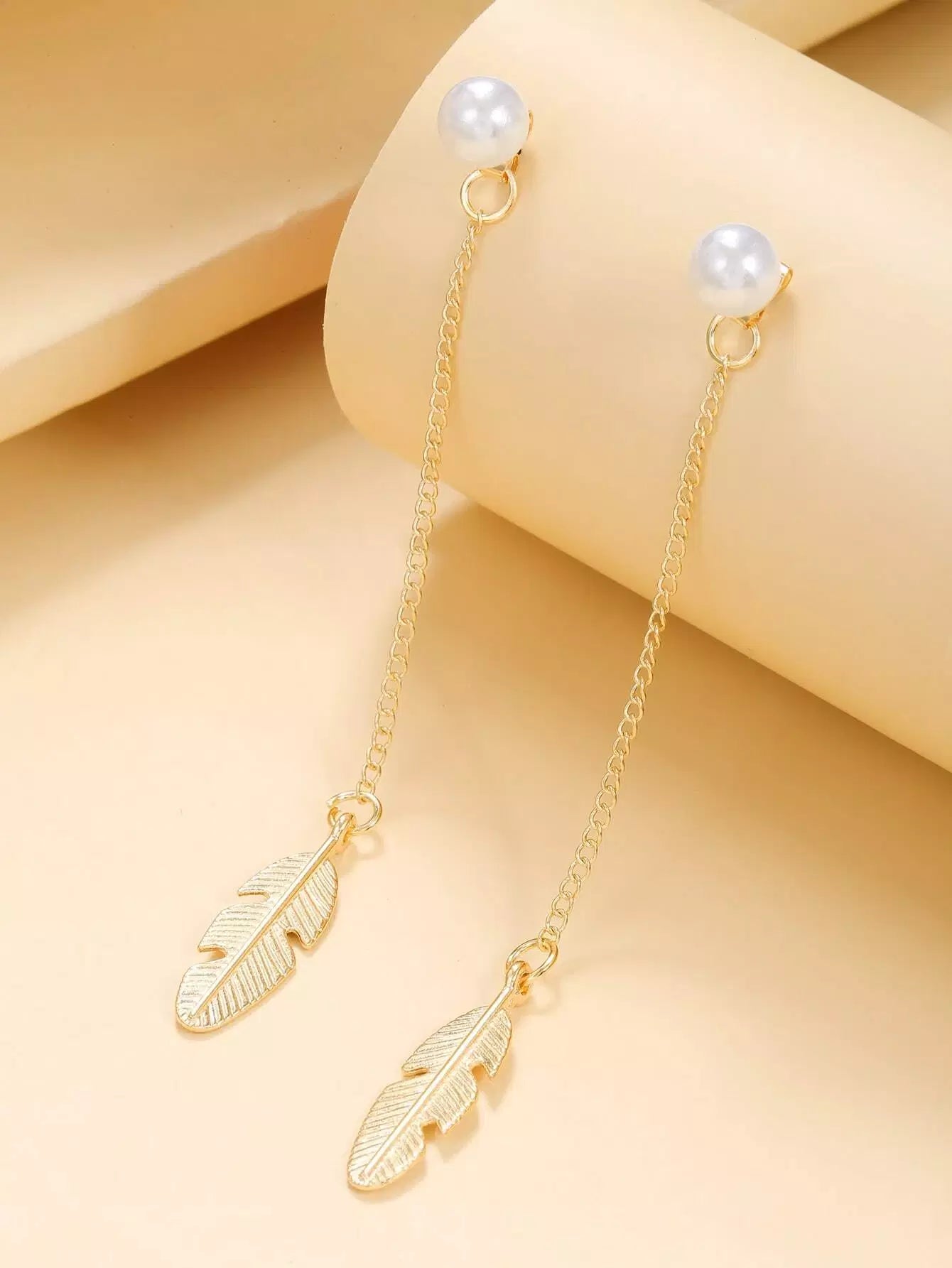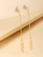 أقراط متدلية على شكل ورقة شجر مزينة باللؤلؤ الصناعي
