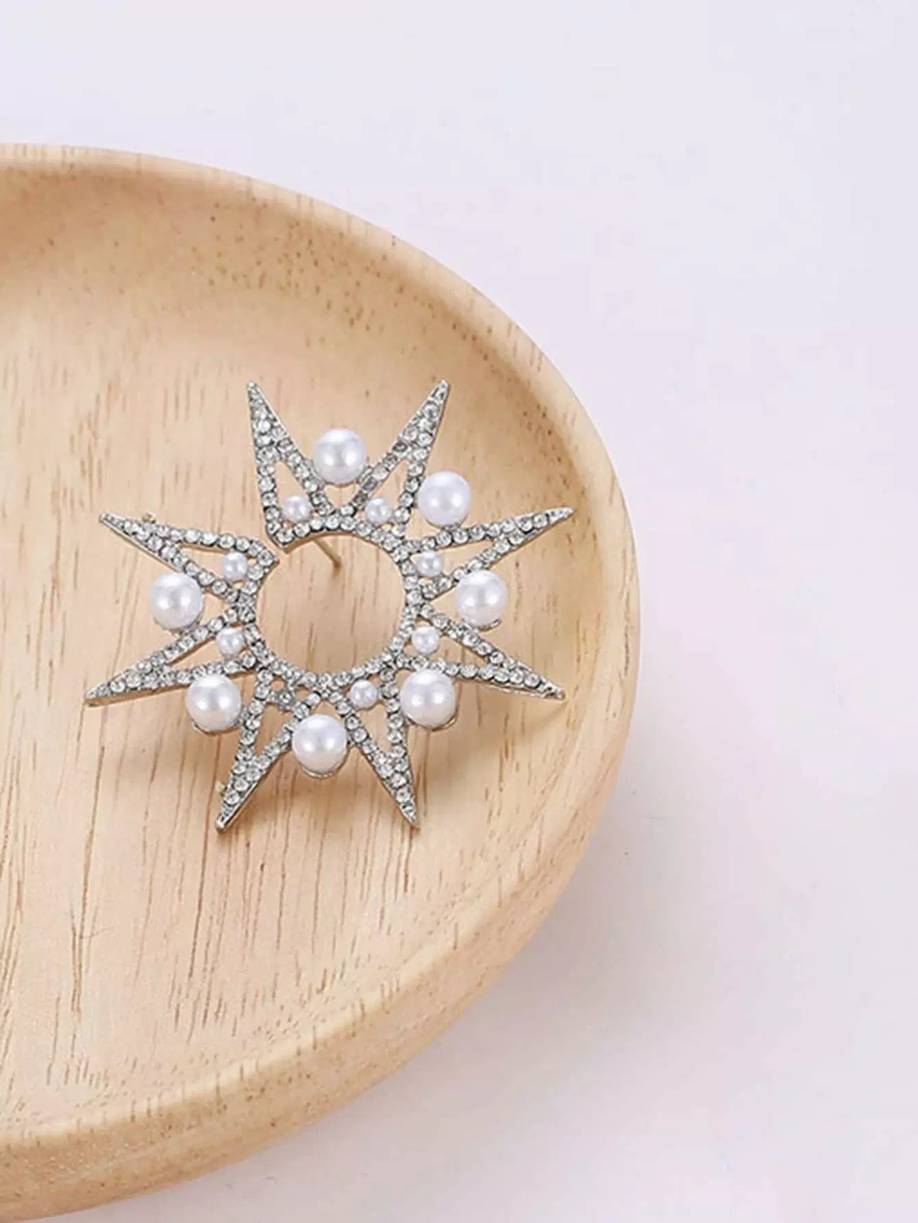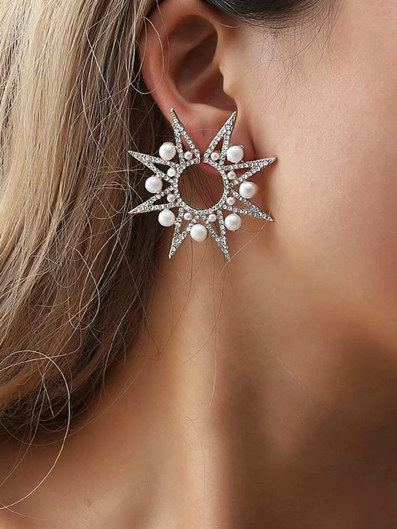 للنساء - حلق على شكل نجمة مزين باللؤلؤ الصناعي قطعة واحدة