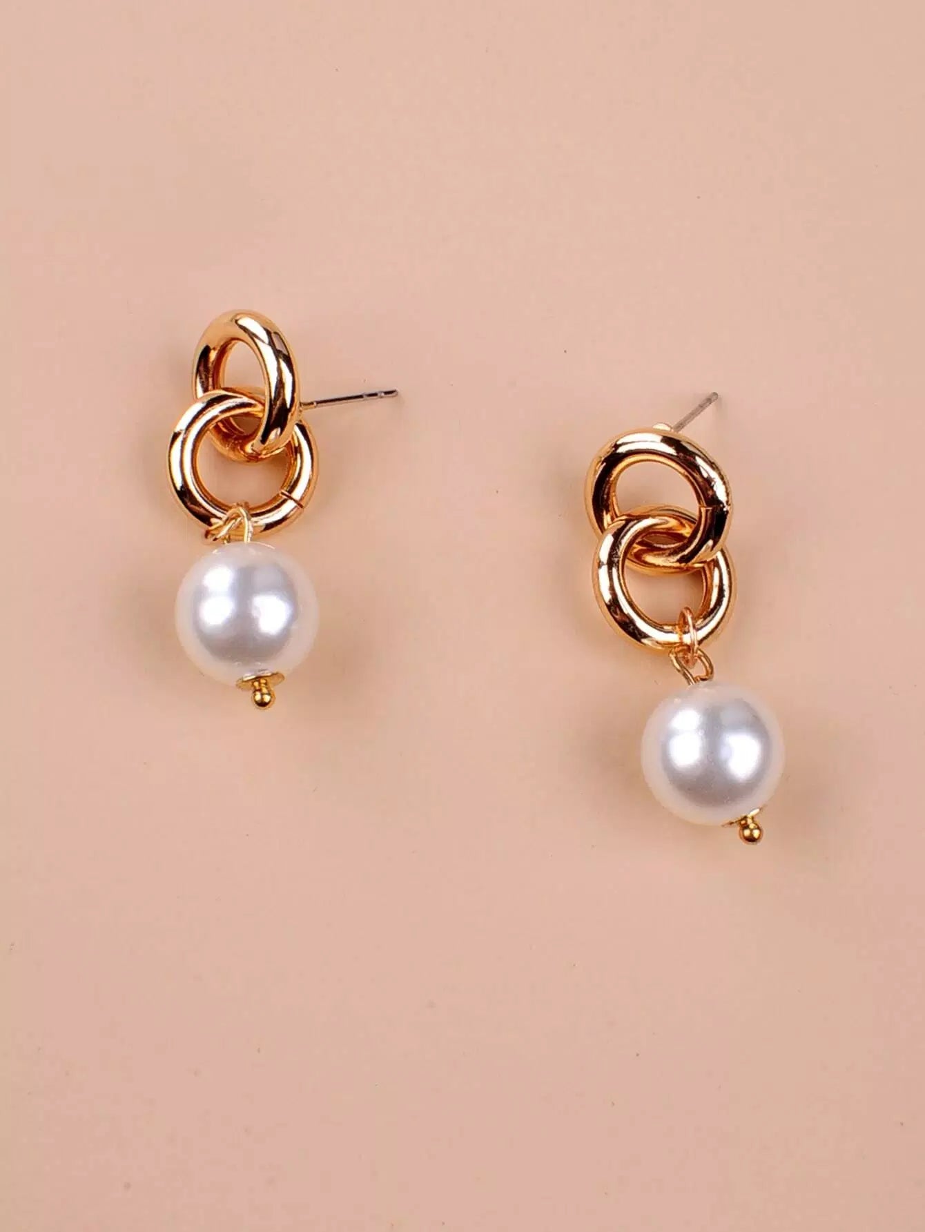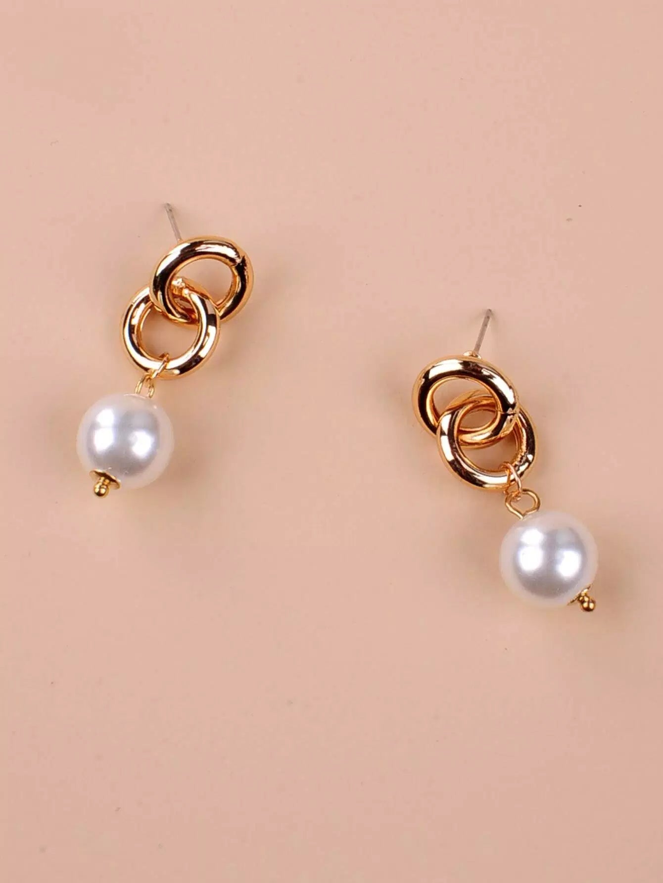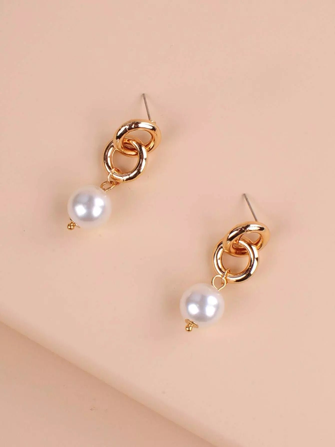 أقراط متدلية دائرية من اللؤلؤ الصناعي
