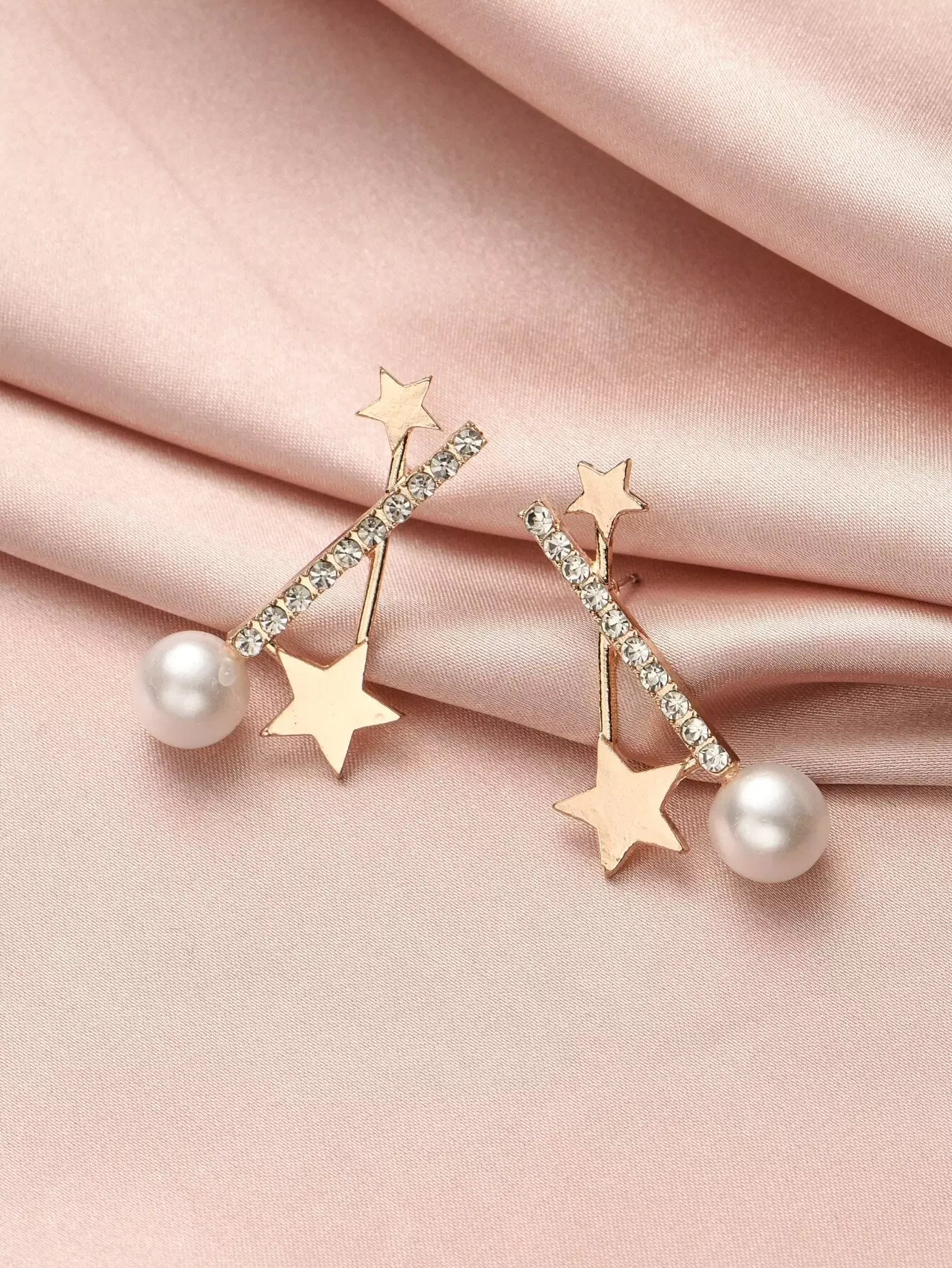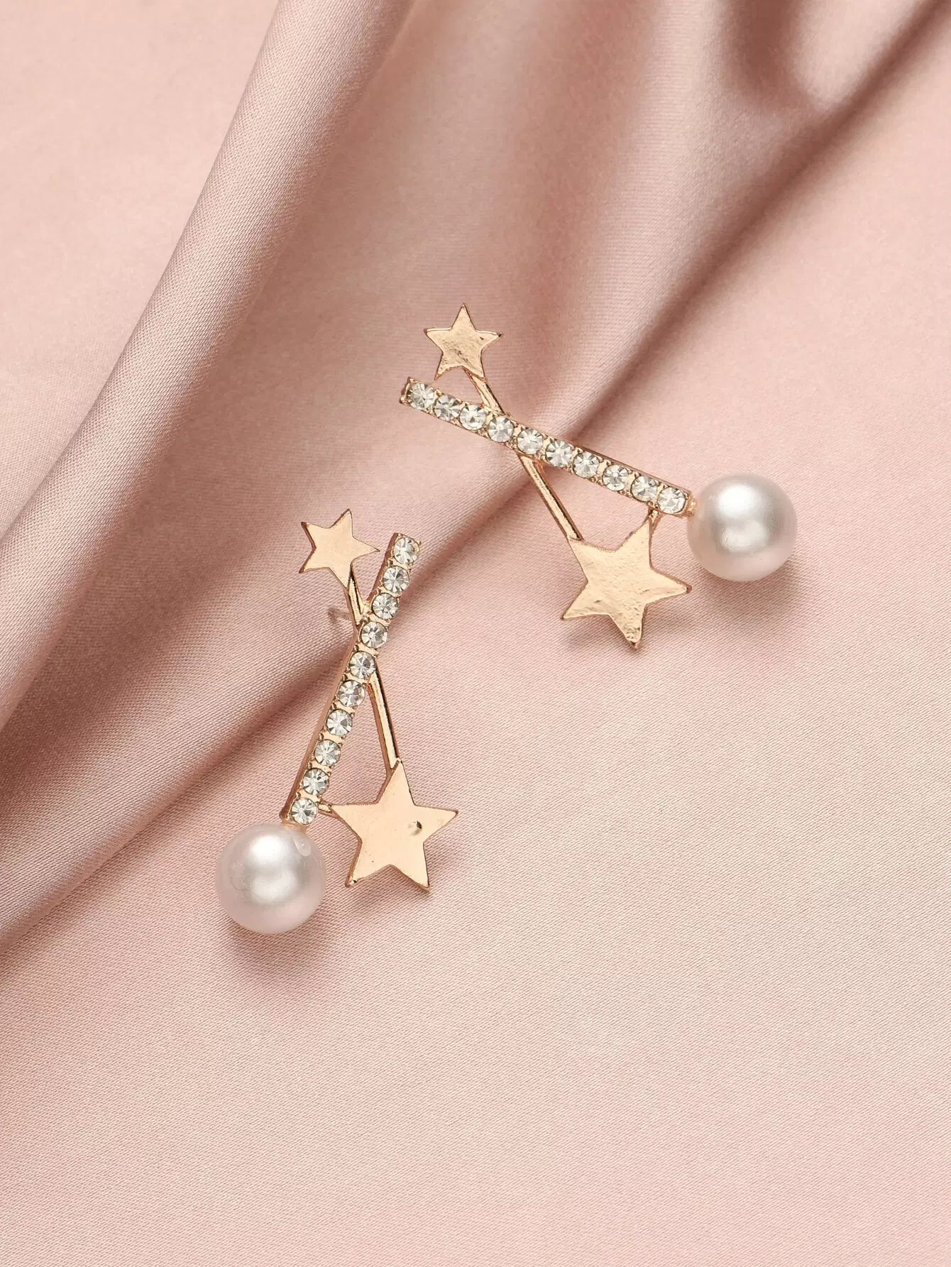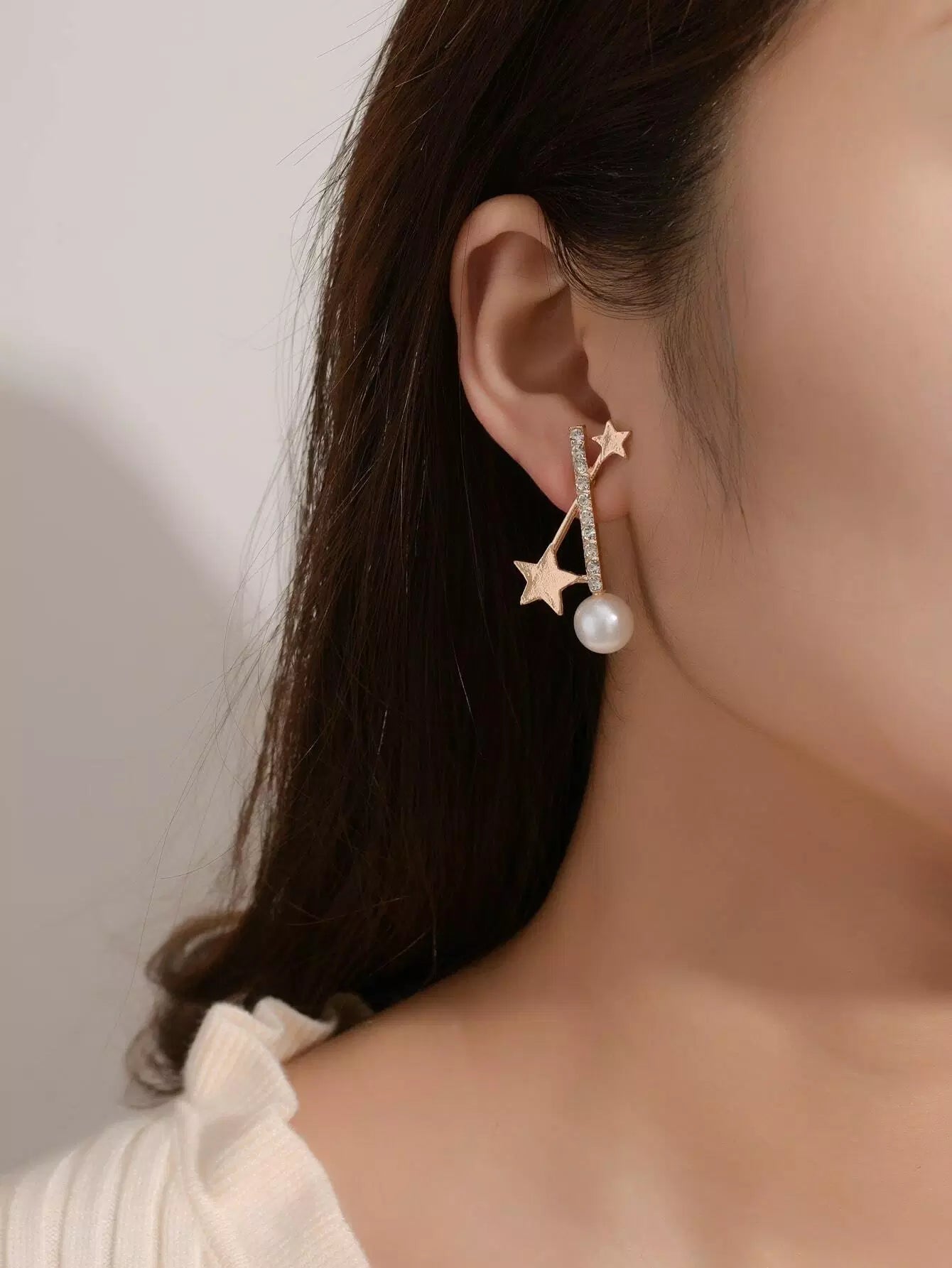 أقراط مرصعة على شكل نجمة لؤلؤة صناعية مزخرفة بنجمة صناعية