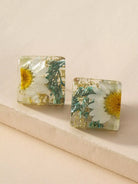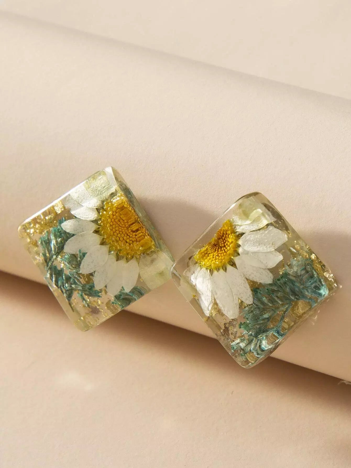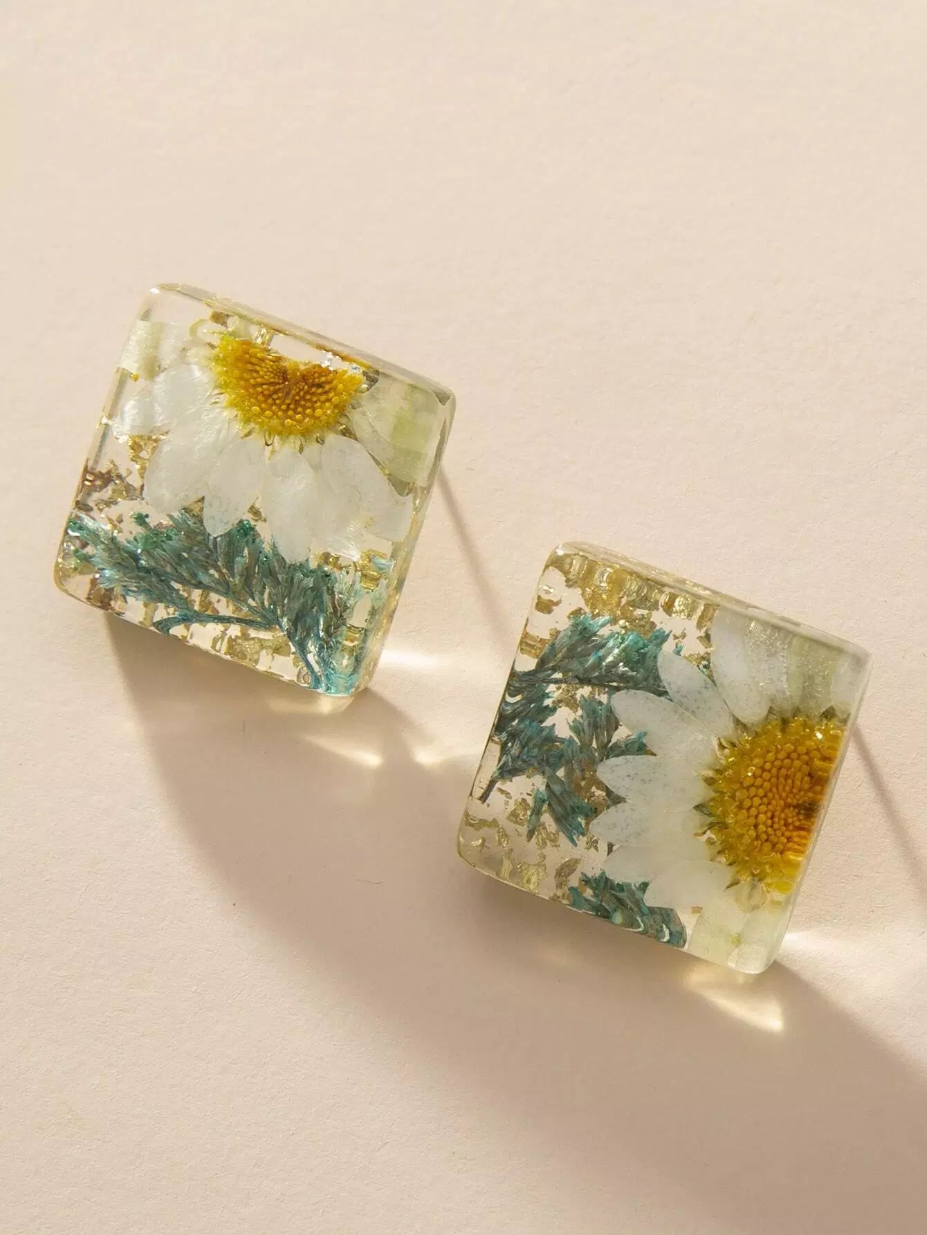 أقراط هندسية شفافة على شكل زهرة مضغوطة