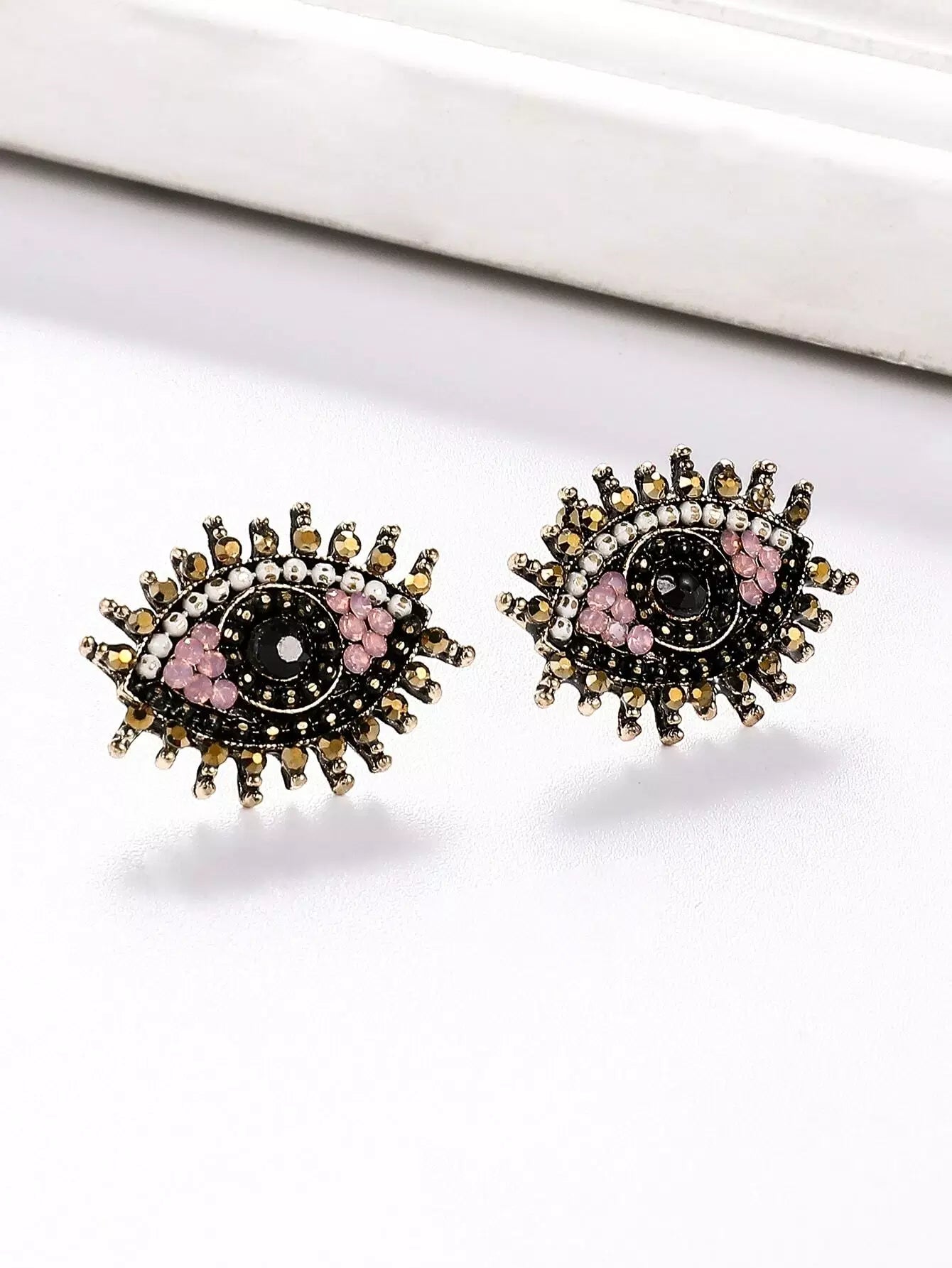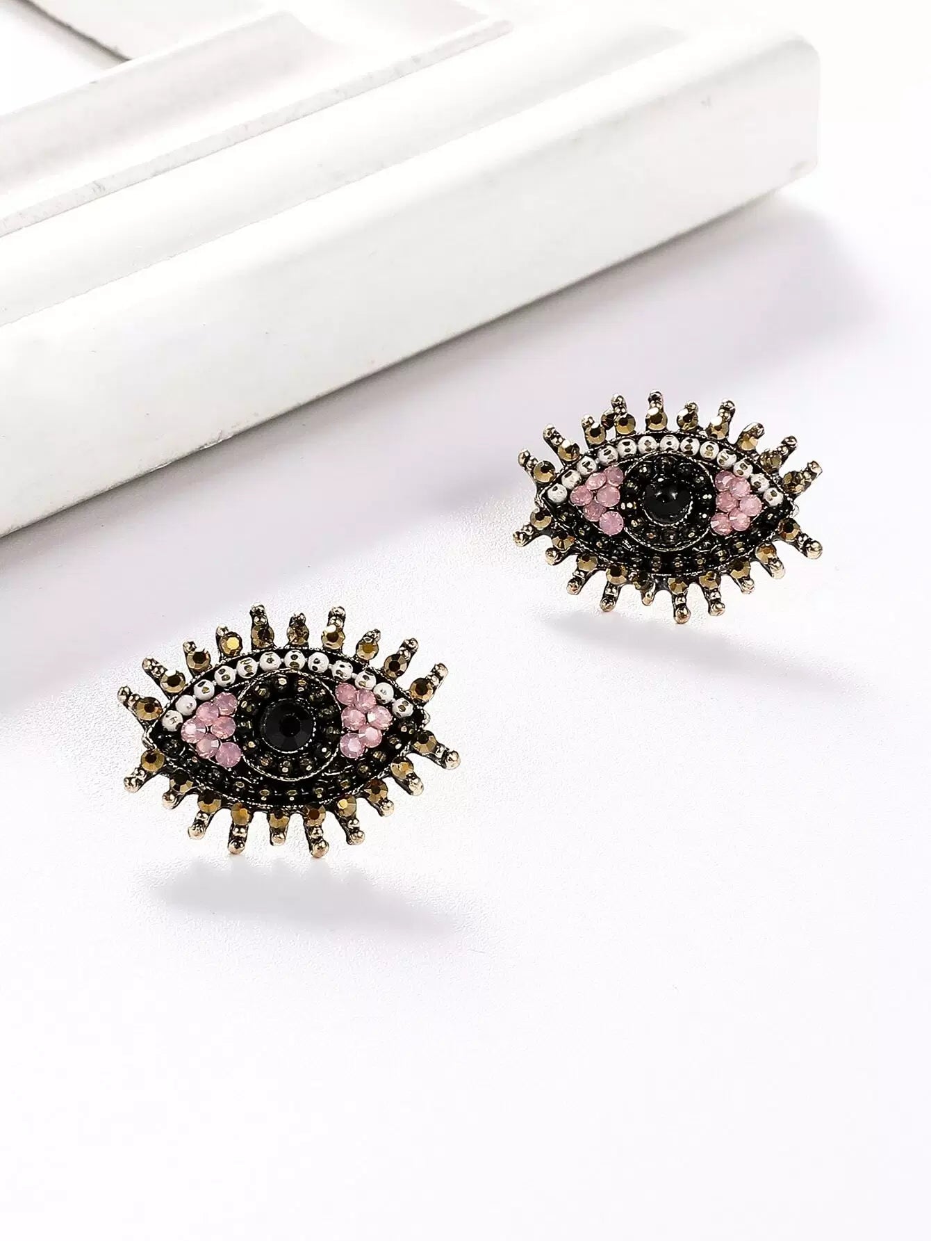 أقراط مرصعة بأحجار الراين بتصميم عين