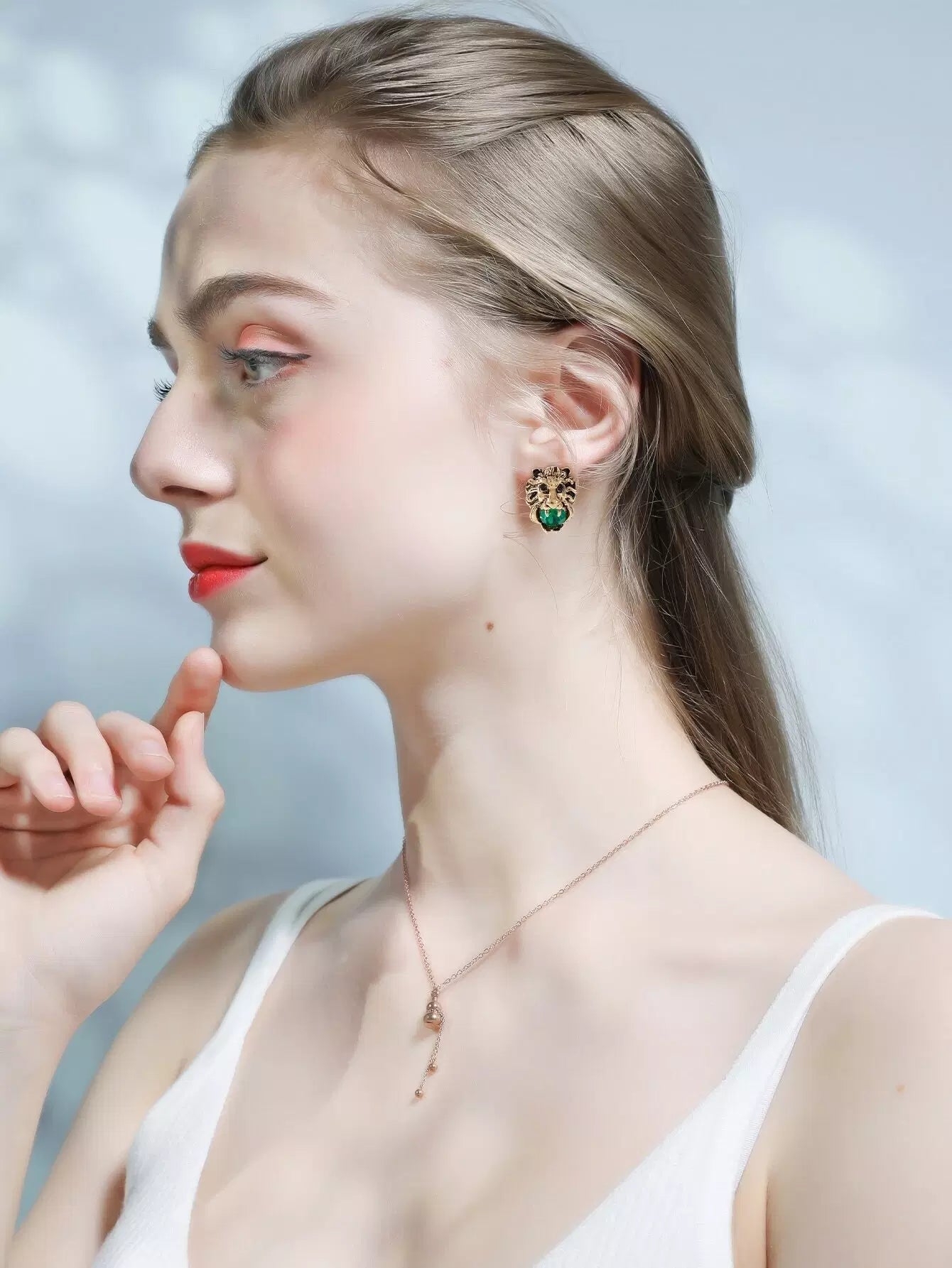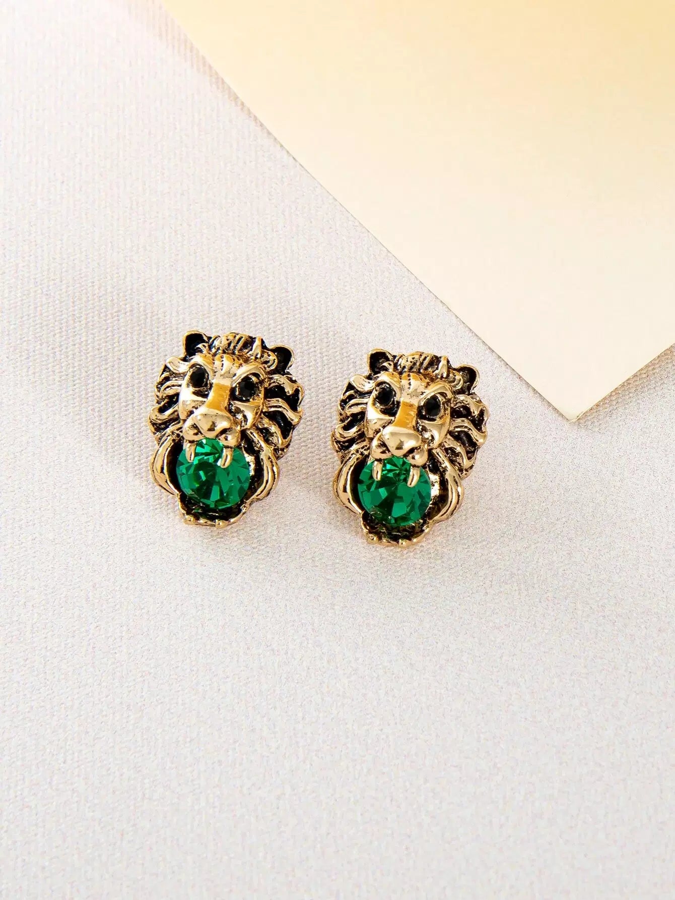 للنساء - أقراط بتصميم رأس الأسد مزخرفة بحجر الراين