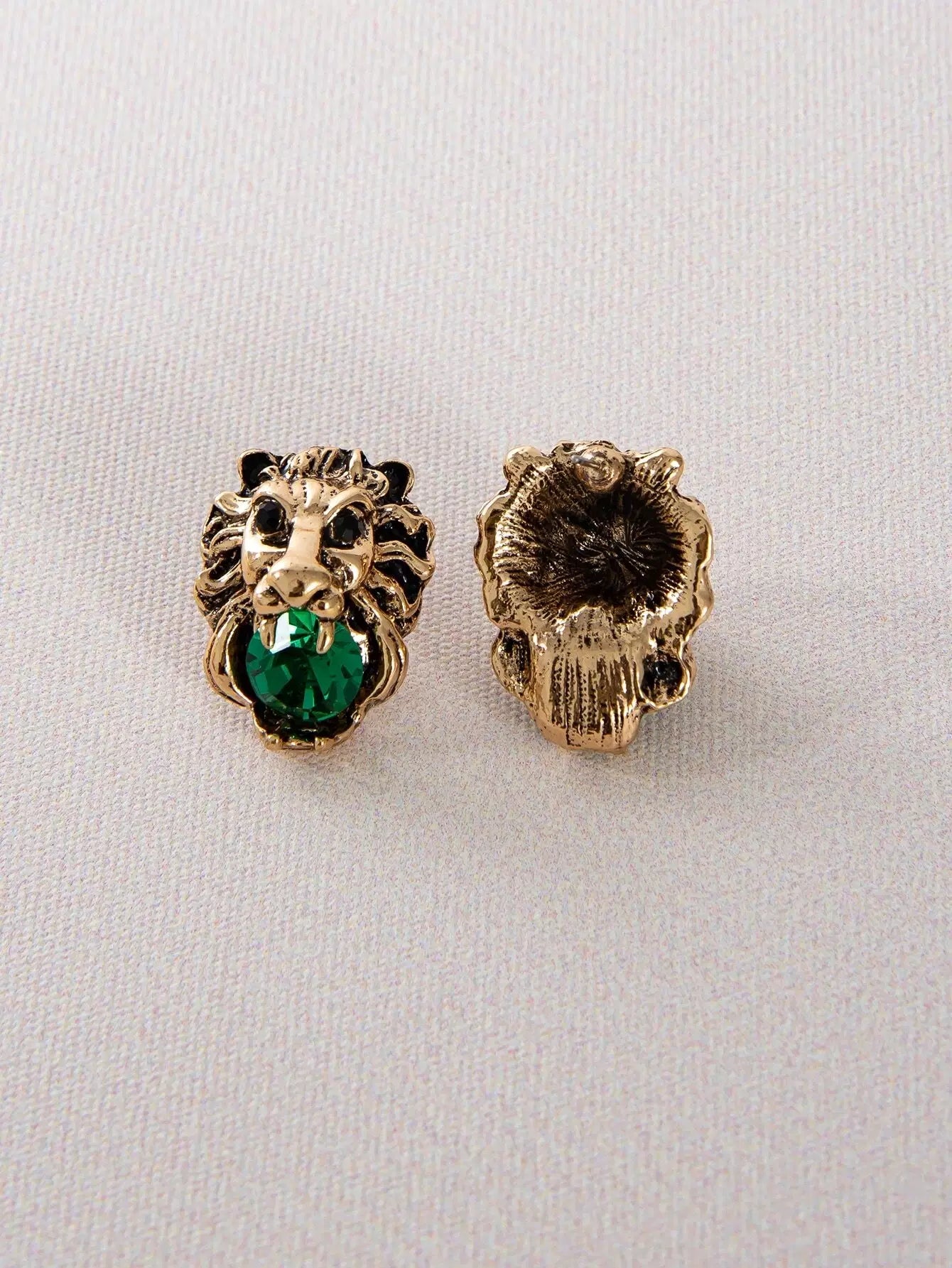 أقراط أذن بتصميم رأس أسد مزخرفة بأحجار الراين