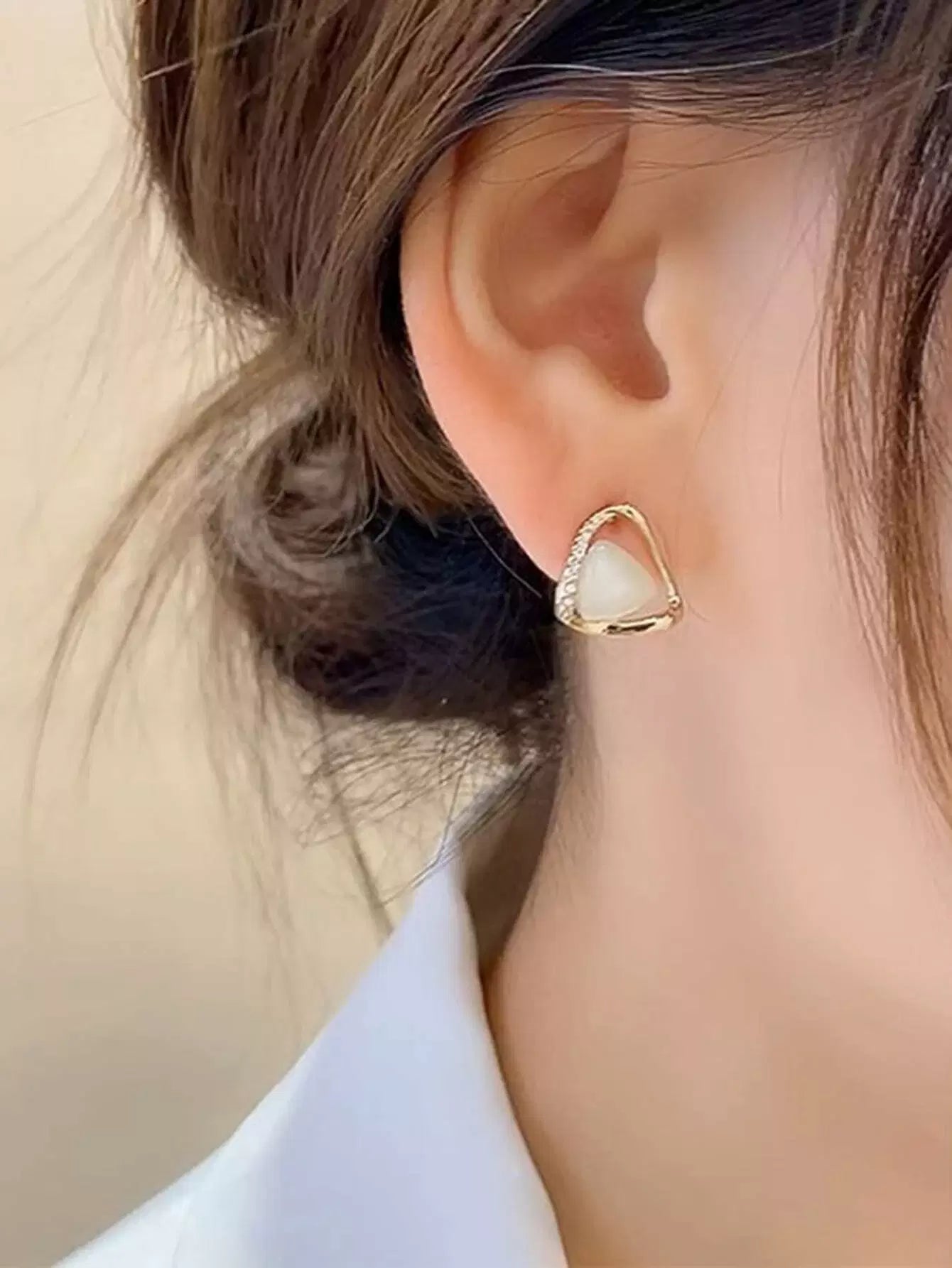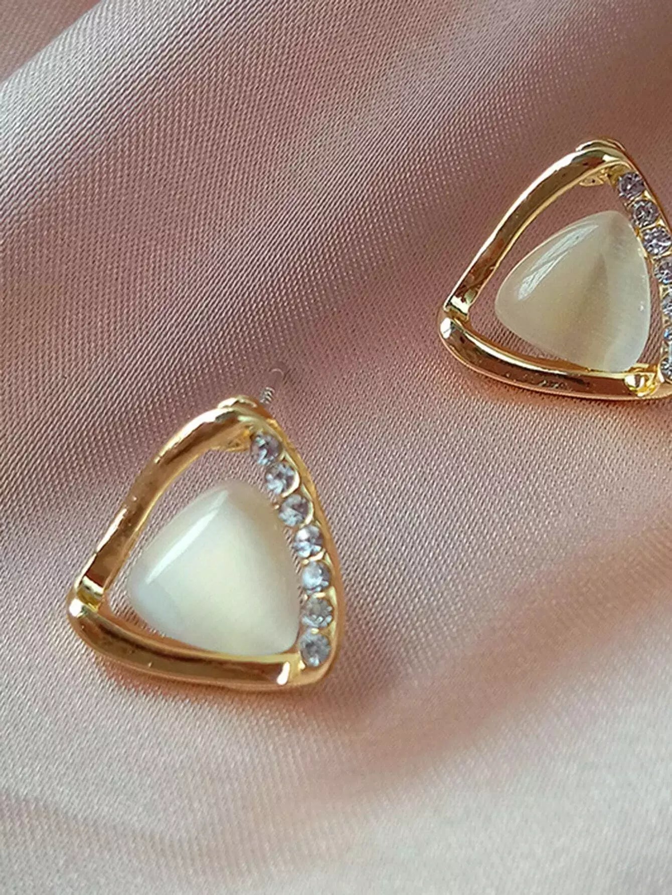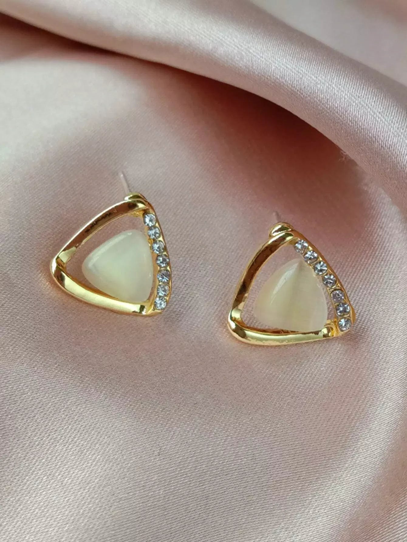 أقراط مرصعة بأحجار الراين ذات تفاصيل هندسية