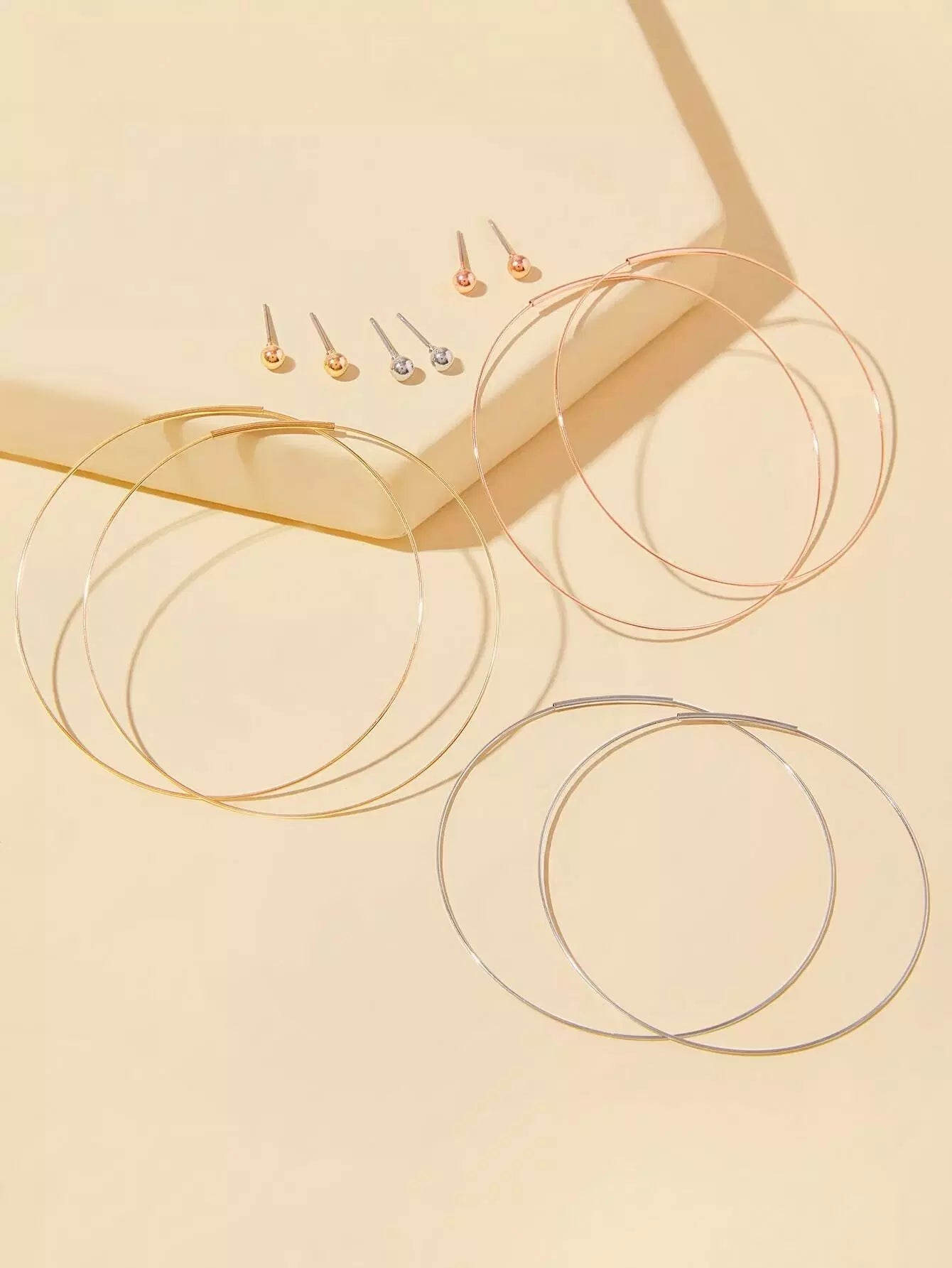 أقراط دائرية بسيطة مكونة من 6 أزواج