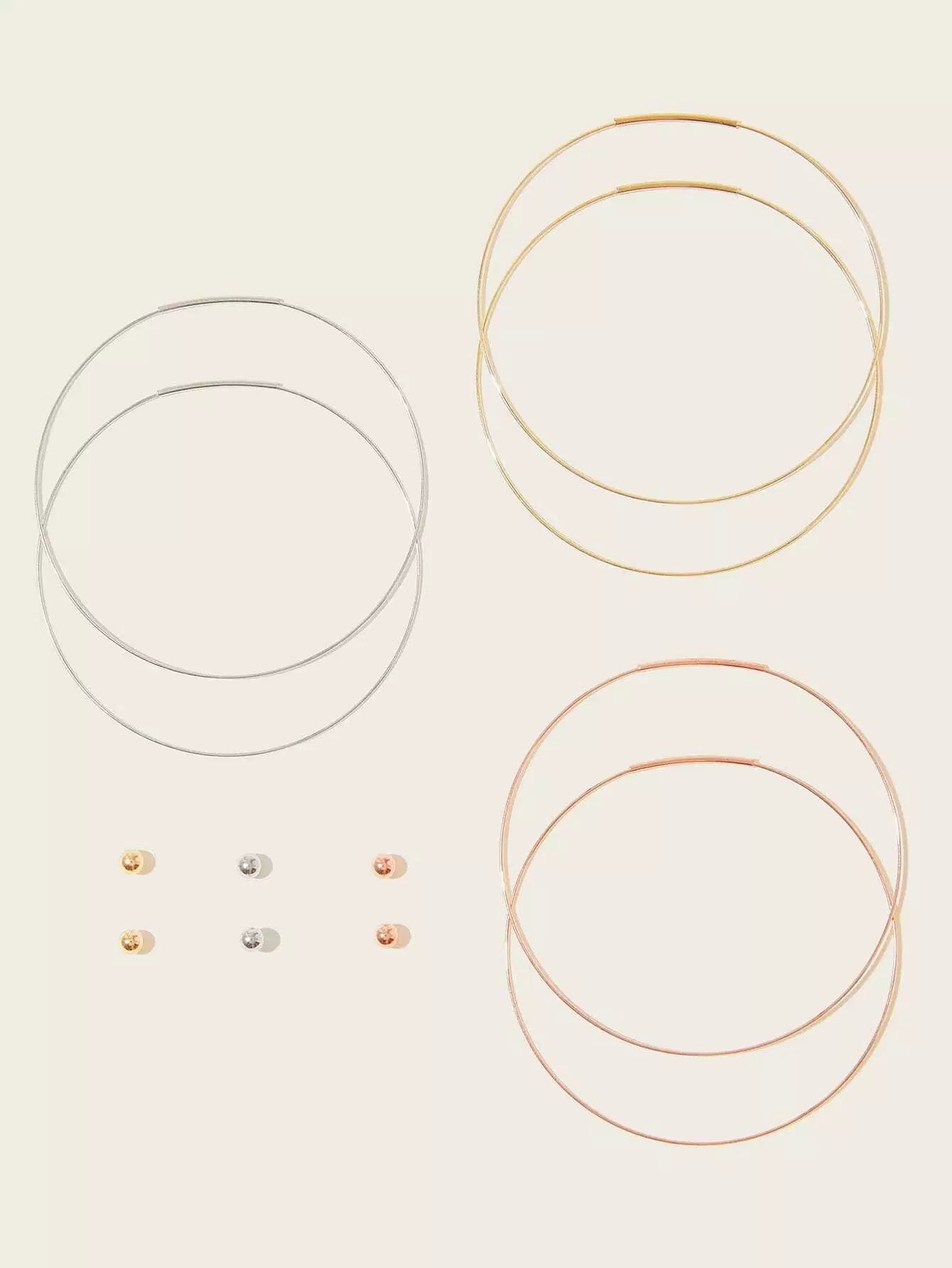 النساء - أقراط دائرية بسيطة وأقراط 6 أزواج