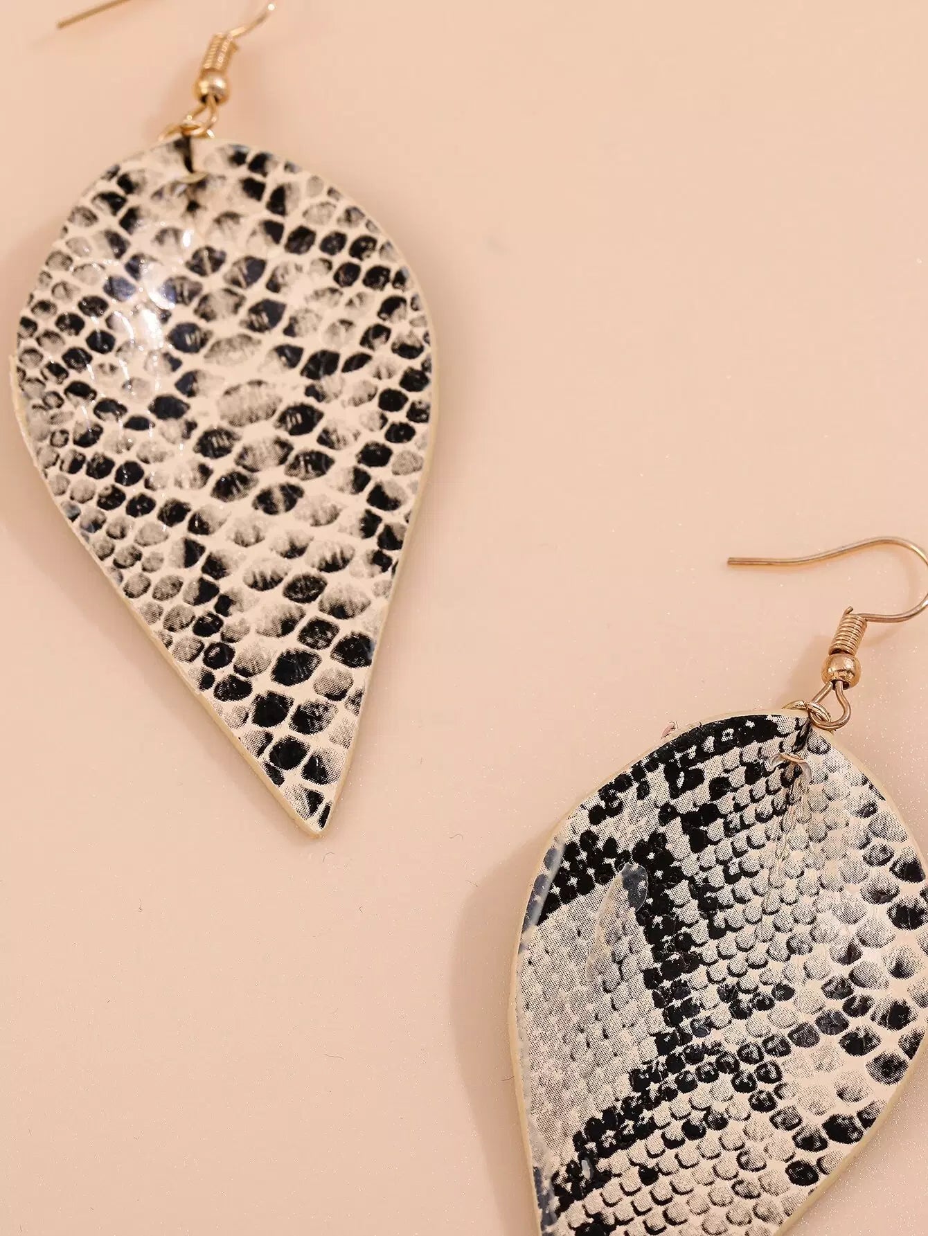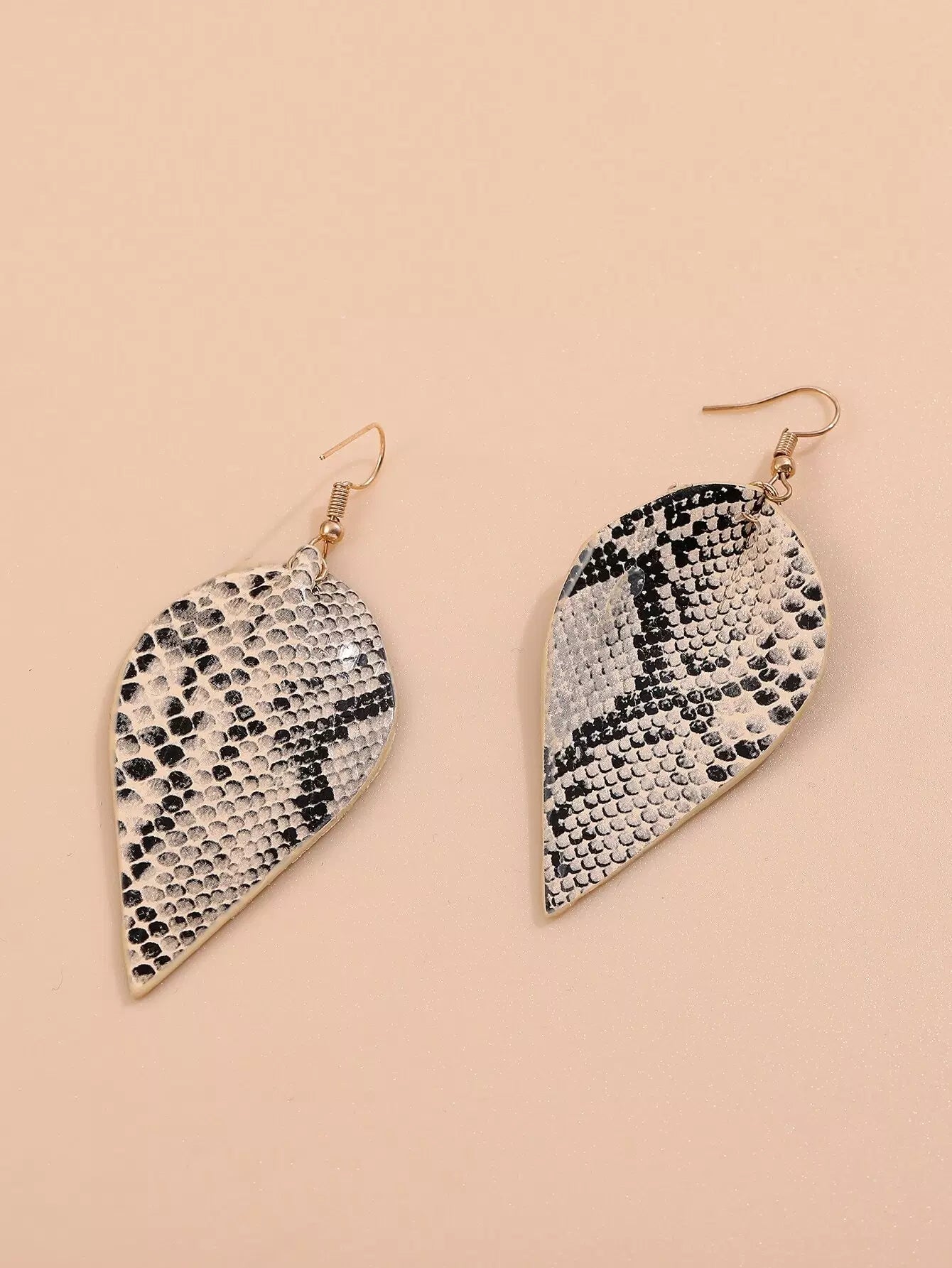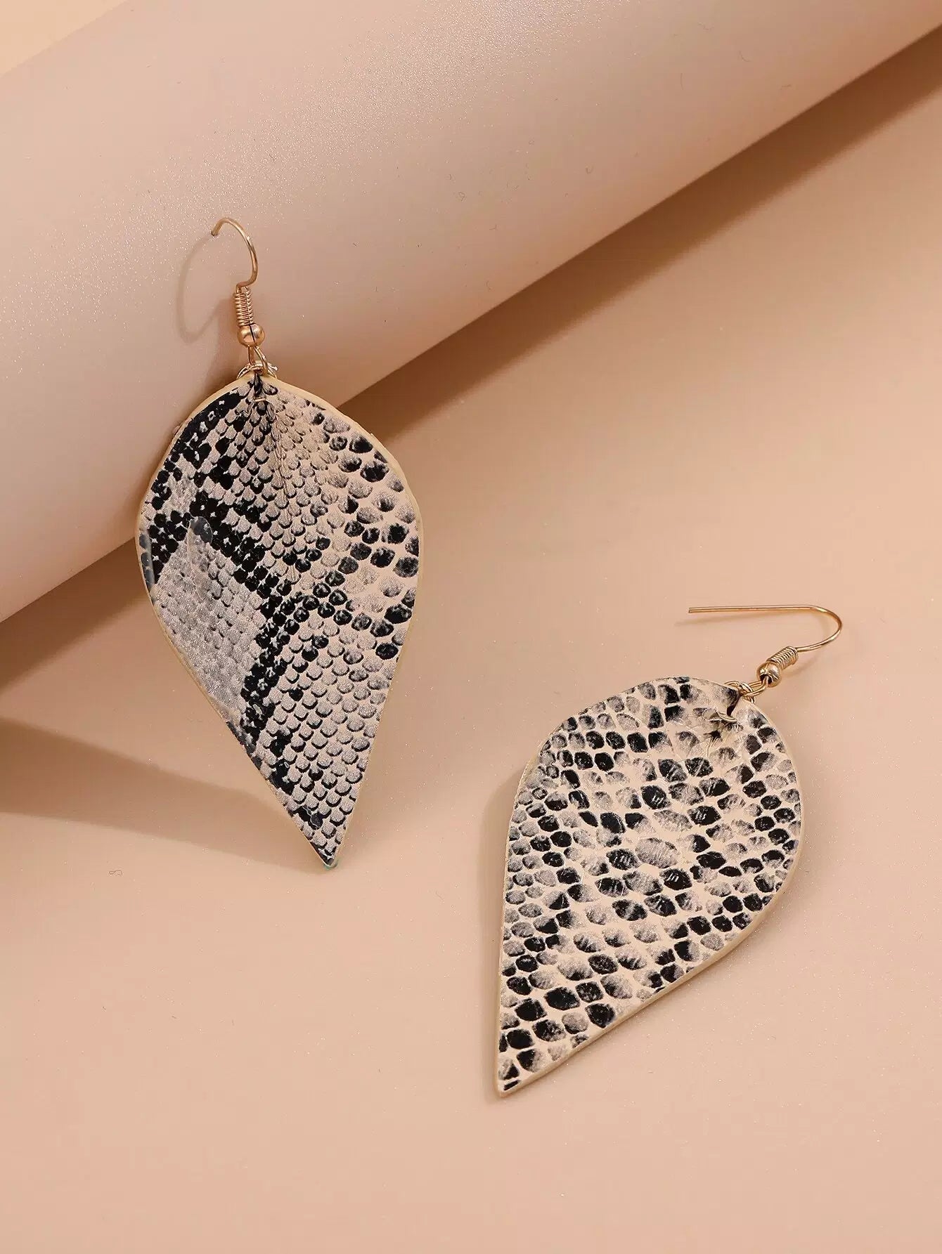 أقراط متدلية على شكل أوراق الشجر بنقشة جلد الثعبان