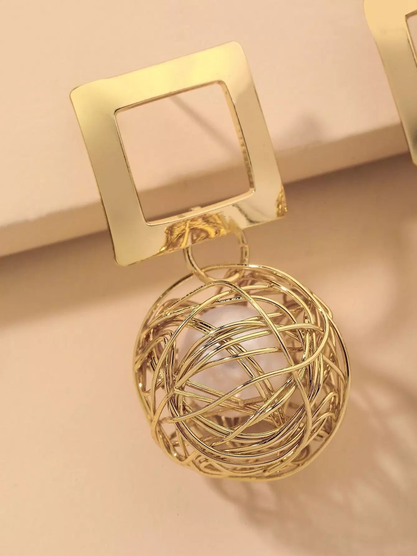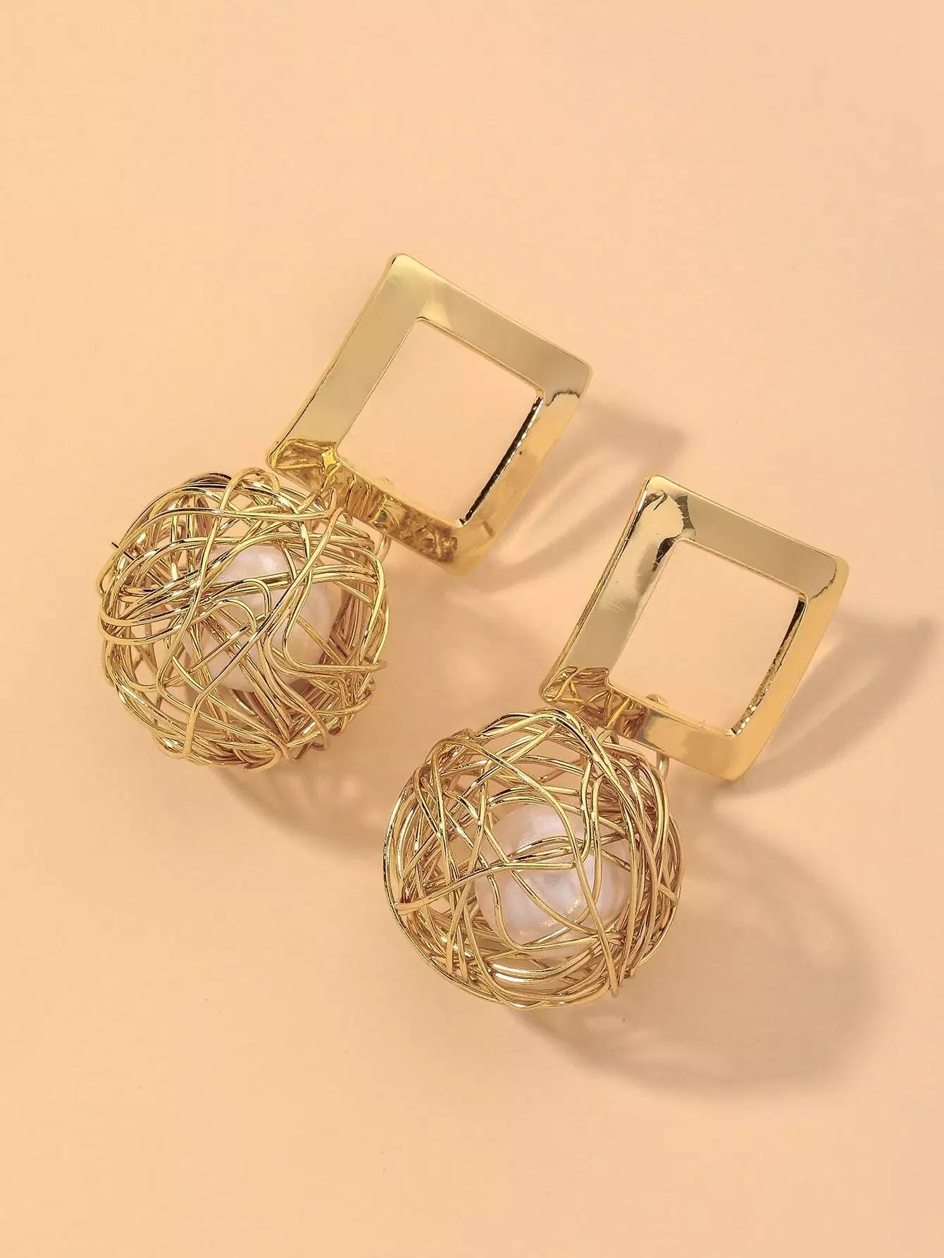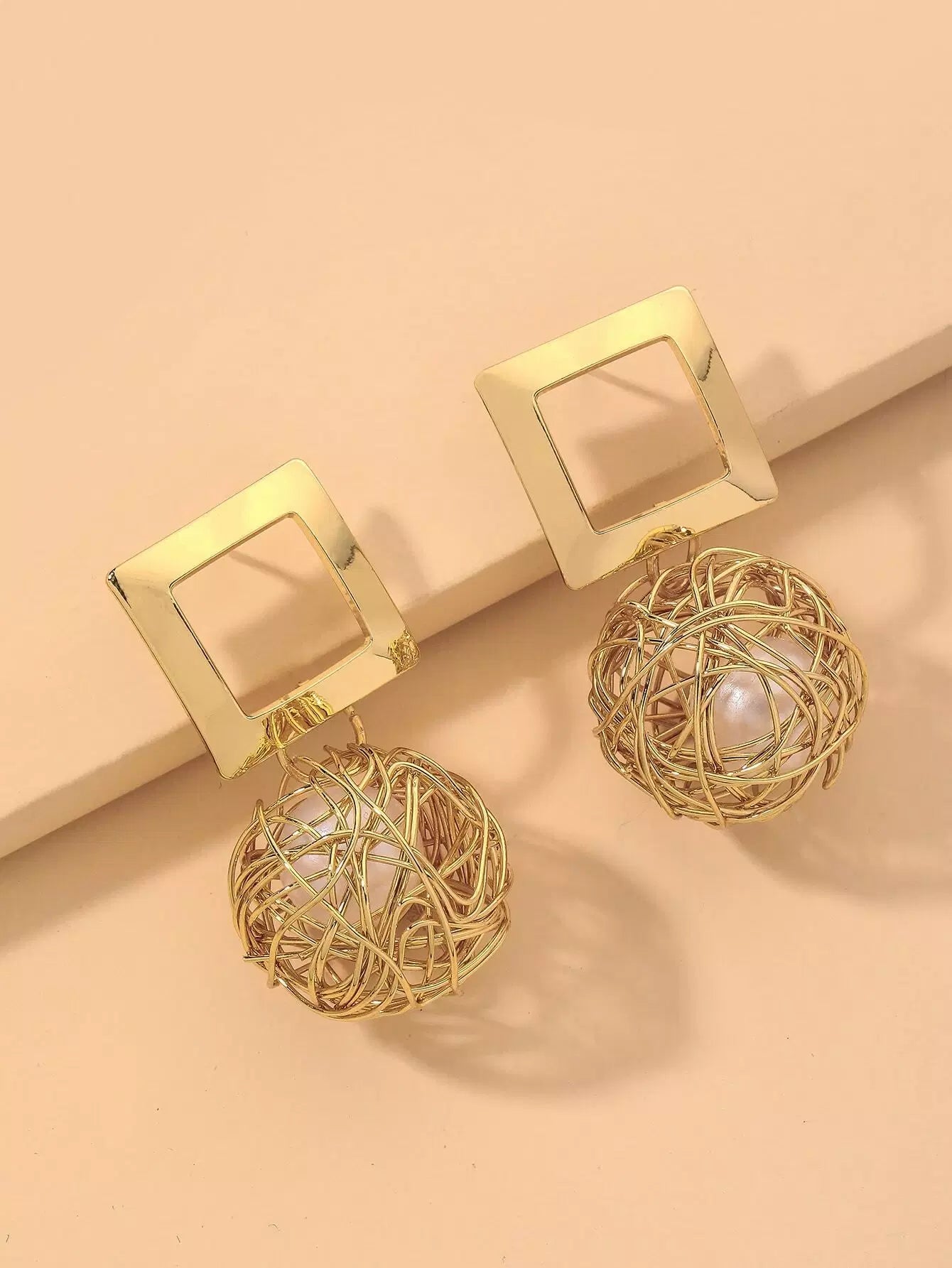أقراط متدلية من اللؤلؤ الصناعي مزينة بزخارف مربعة