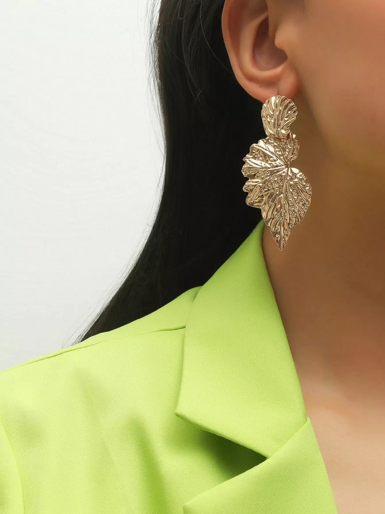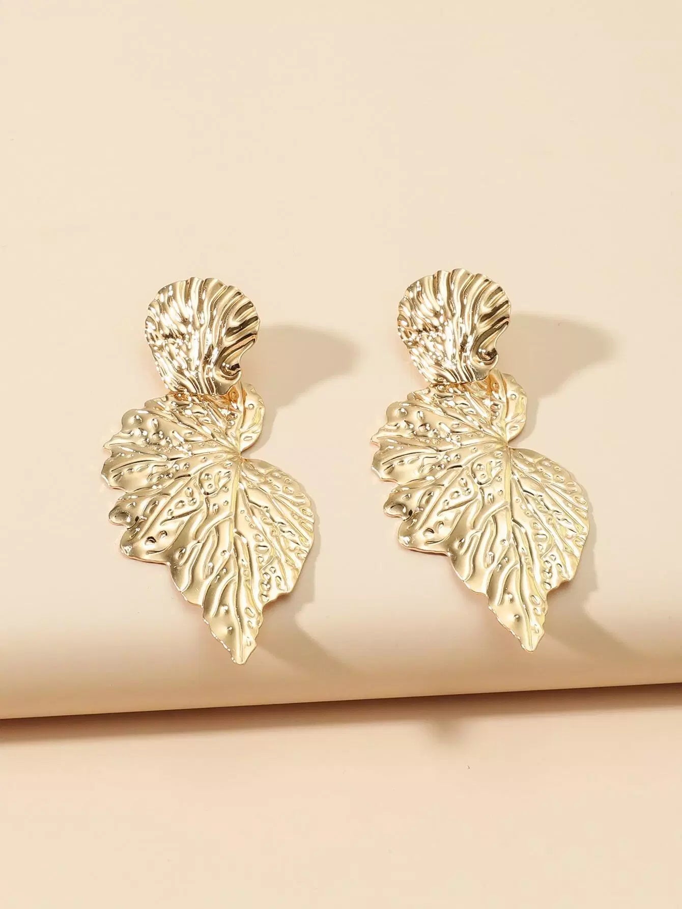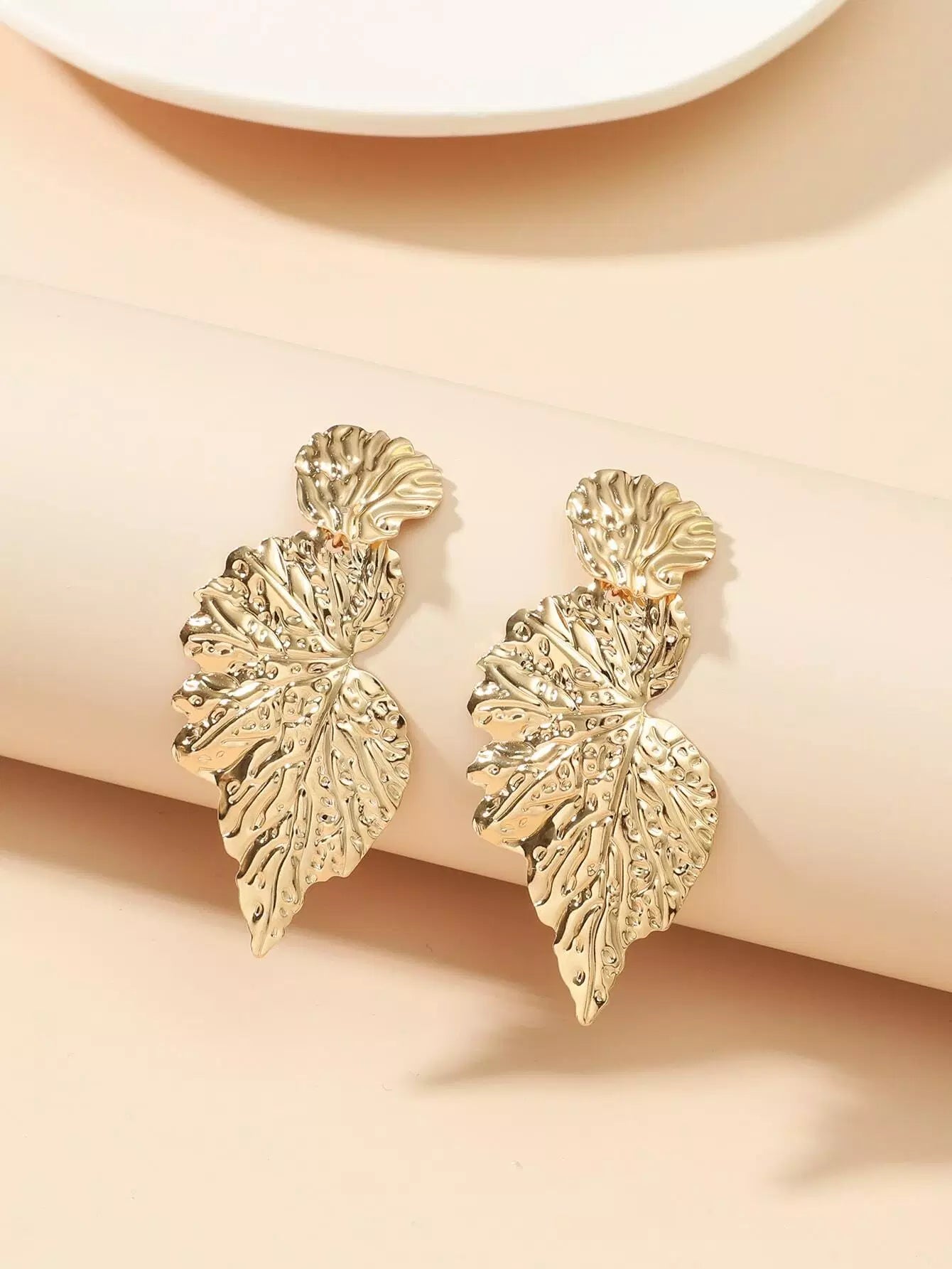 أقراط متدلية مزخرفة بأوراق معدنية مزخرفة بأشكال من أوراق الشجر