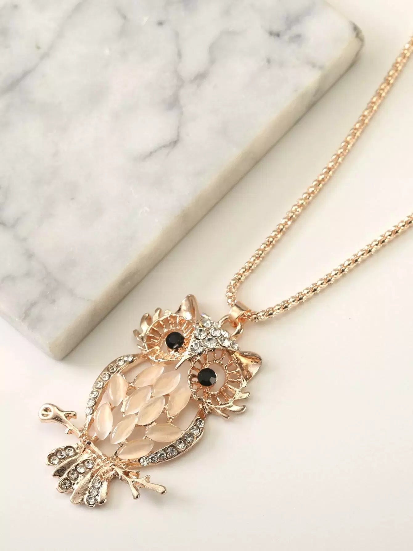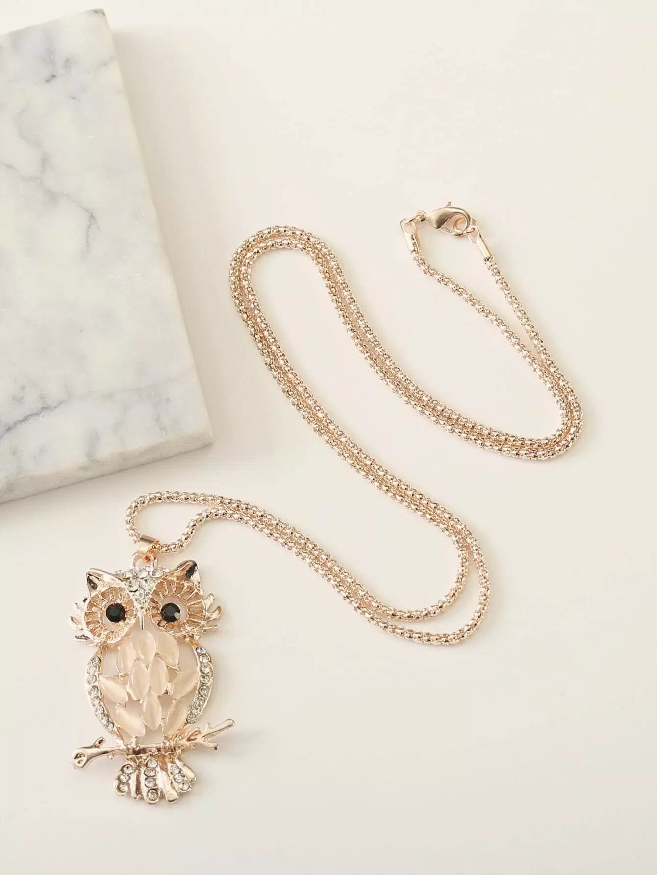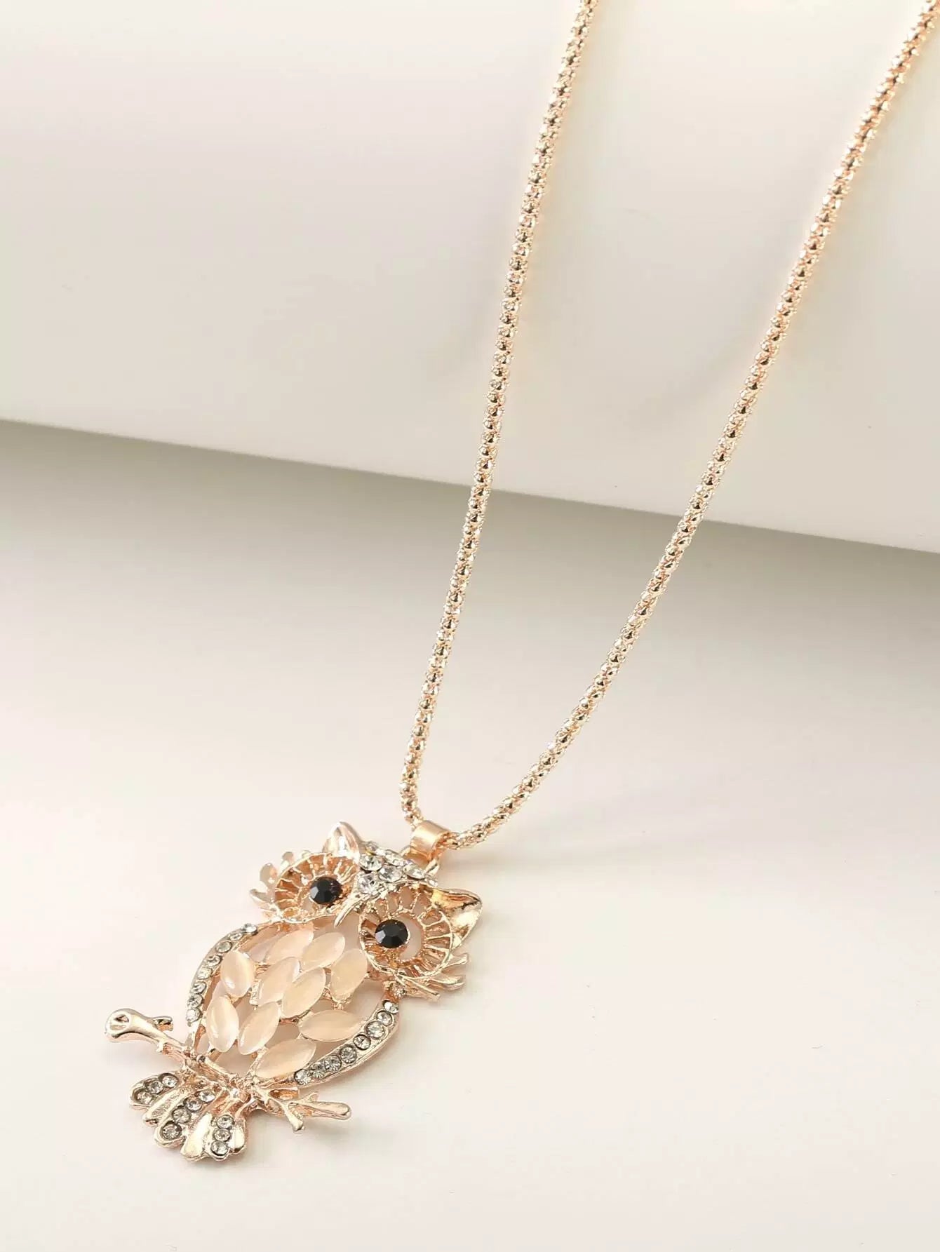 قلادة على شكل بومة مزينة بأحجار الراين قطعة واحدة