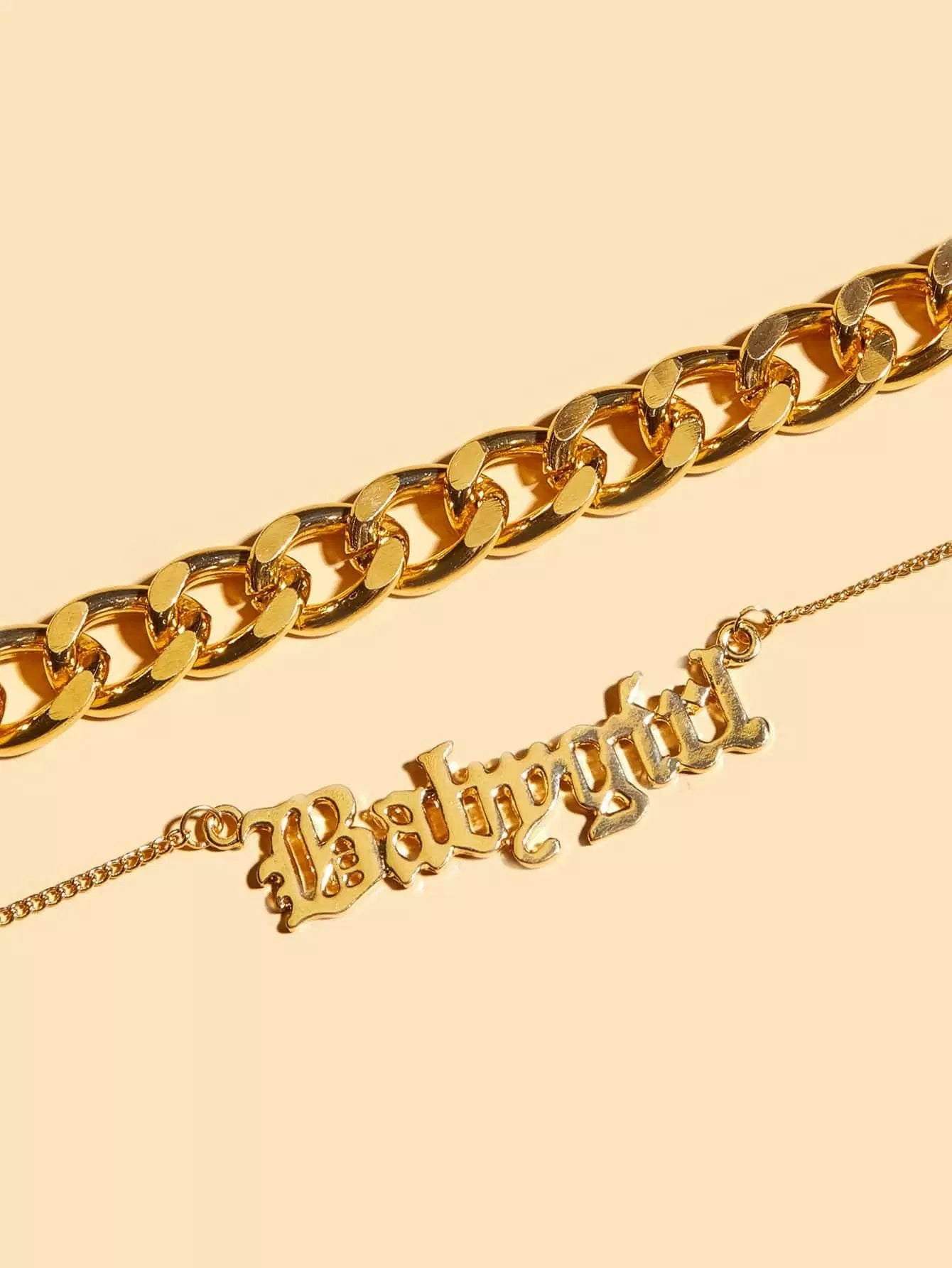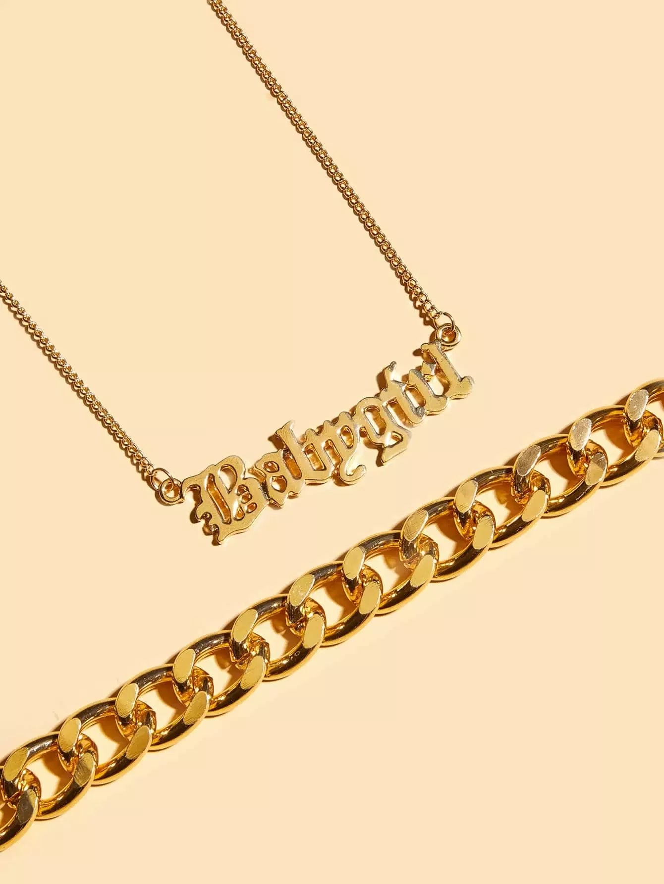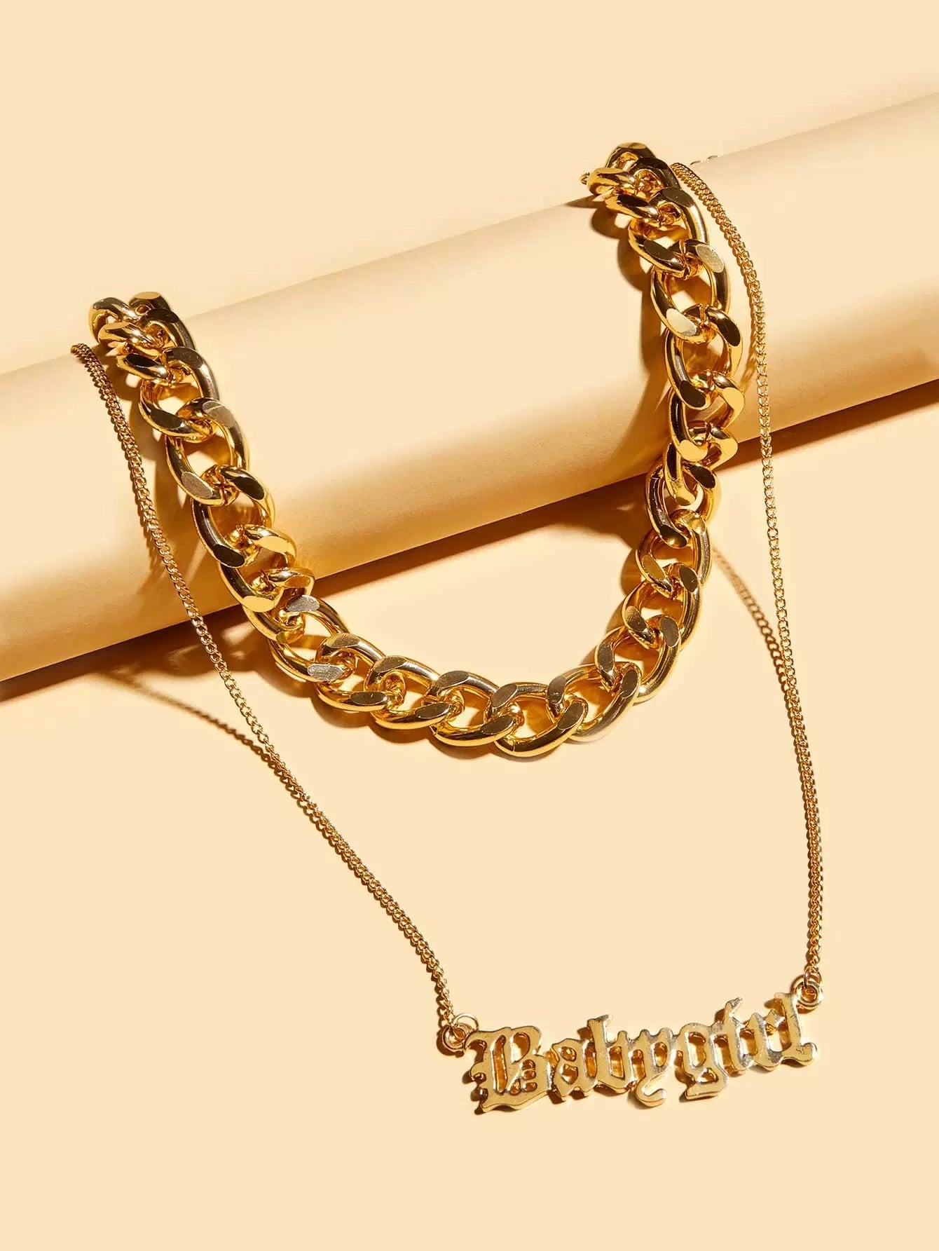 للنساء - قطعتان من ديكور الحروف وقلادة سلسلة